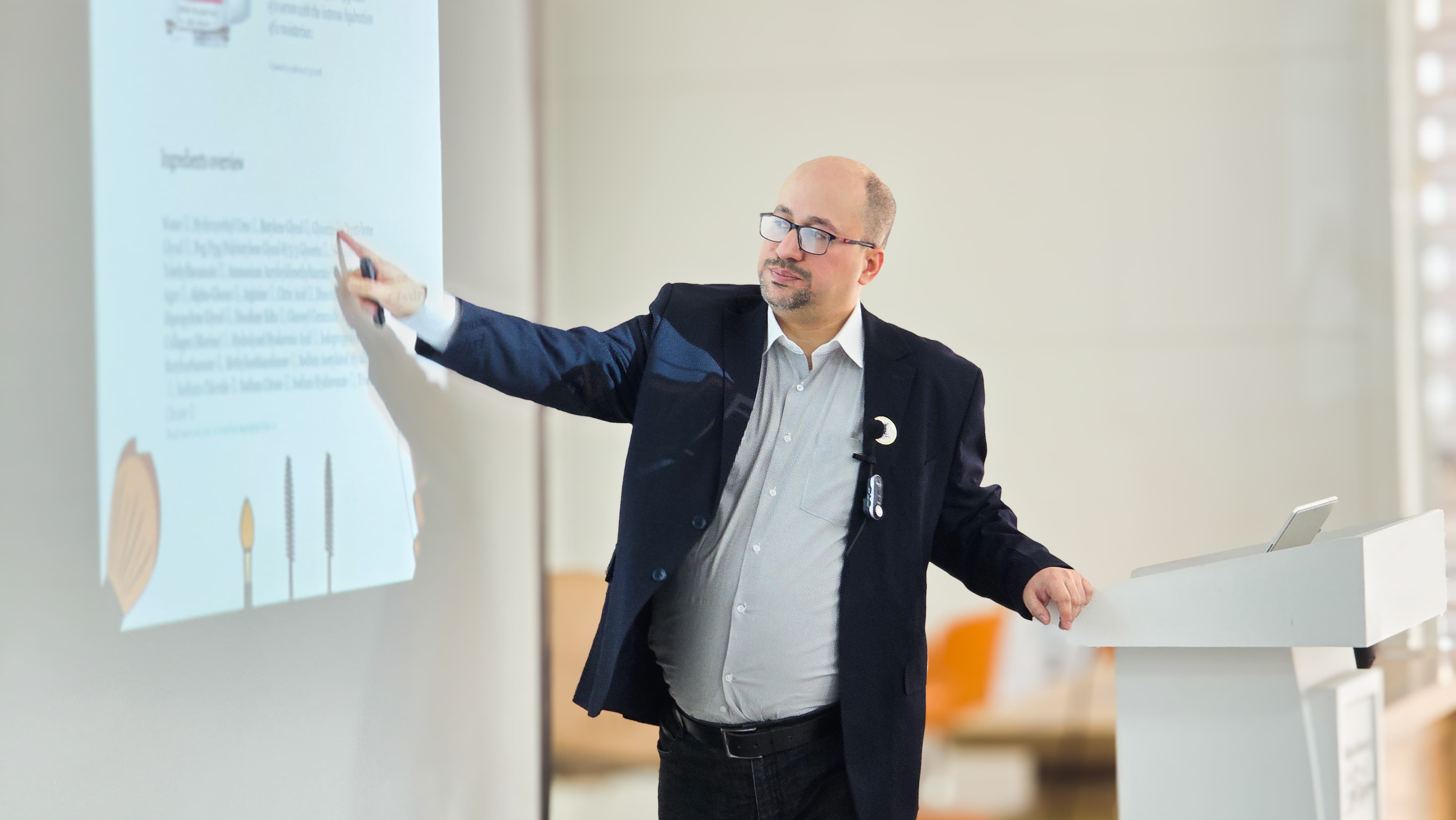The course also featured a series of specialized lectures in the field of cosmetics presented by Dr. Samer Khalid Ali (PhD in Pharmacy, specializing in Pharmaceutics, University of Baghdad/College of Pharmacy) presented a lecture focusing on the types of cosmetic products, selecting the appropriate product, and providing proper guidance to customers to enhance safe use and improve customer service.
