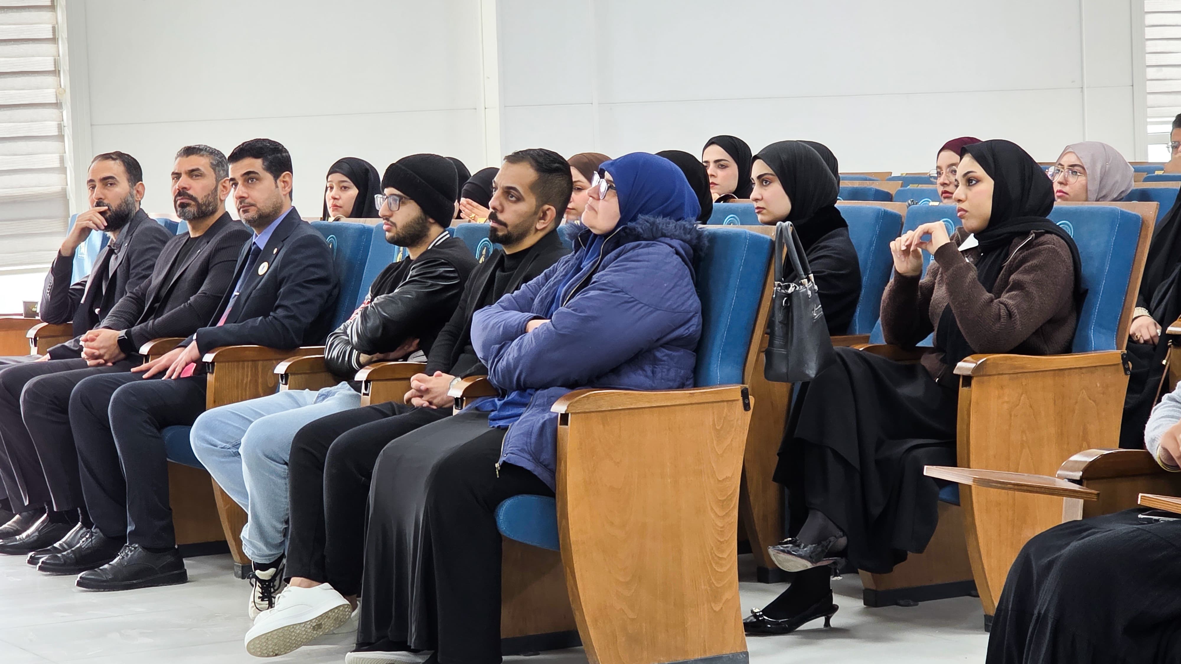 The activities also included a lecture titled "Commitment" by Asst. Lecturer Laith Ali Abdullah (MSc in Pharmaceutical Chemistry, University of Basra), which addressed aspects of professional commitment and its impact on the pharmacist's character and daily practice.