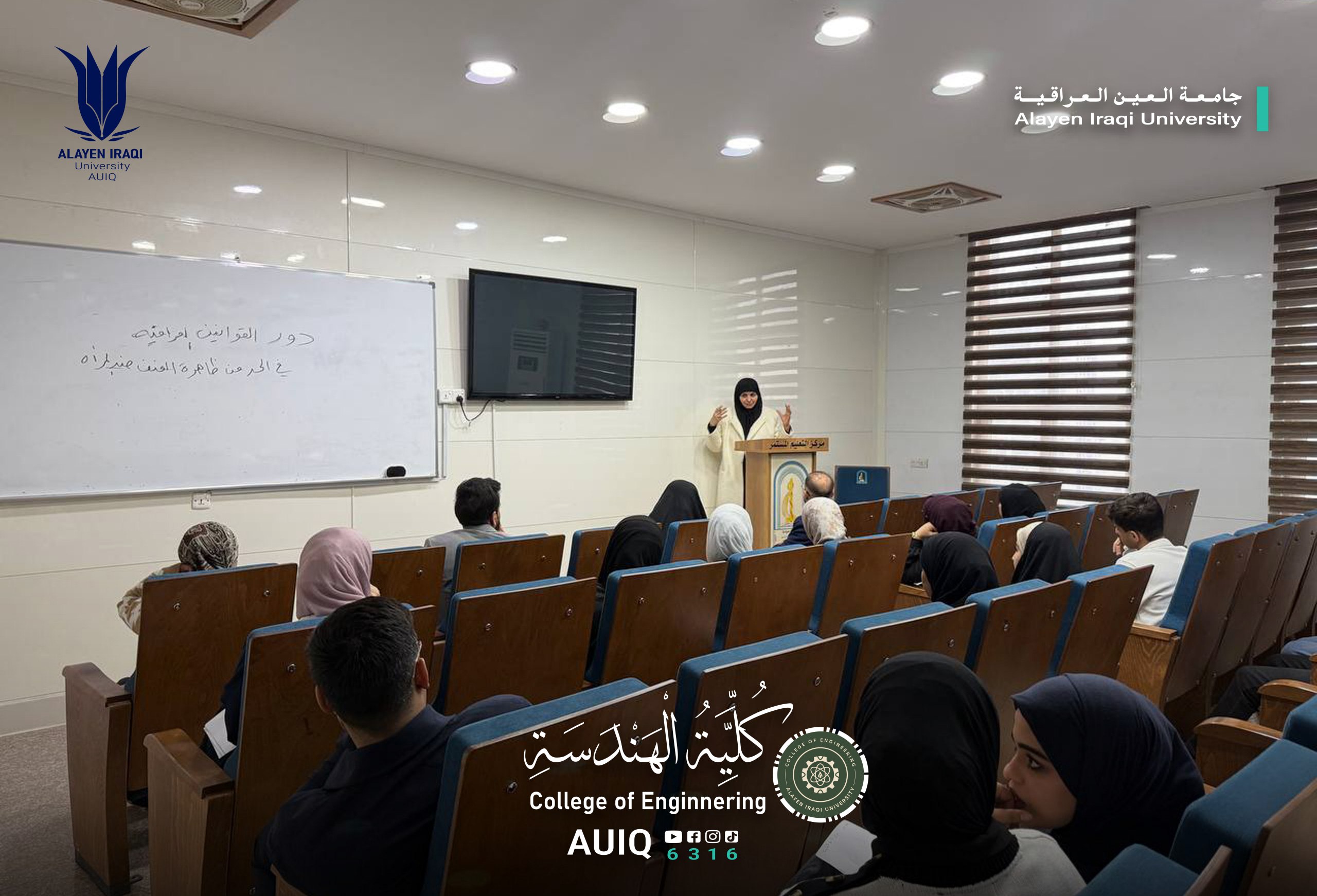 This workshop is part of a series of awareness and scientific activities implemented by the College of Engineering at Al-Ayen Iraqi University, within its endeavor to enhance legal and social awareness, in line with the university's mission and its academic and humanitarian objectives.