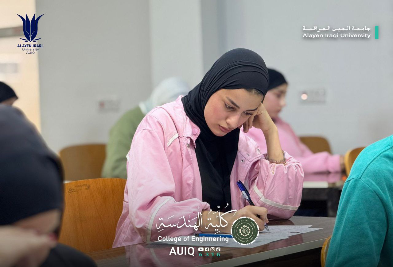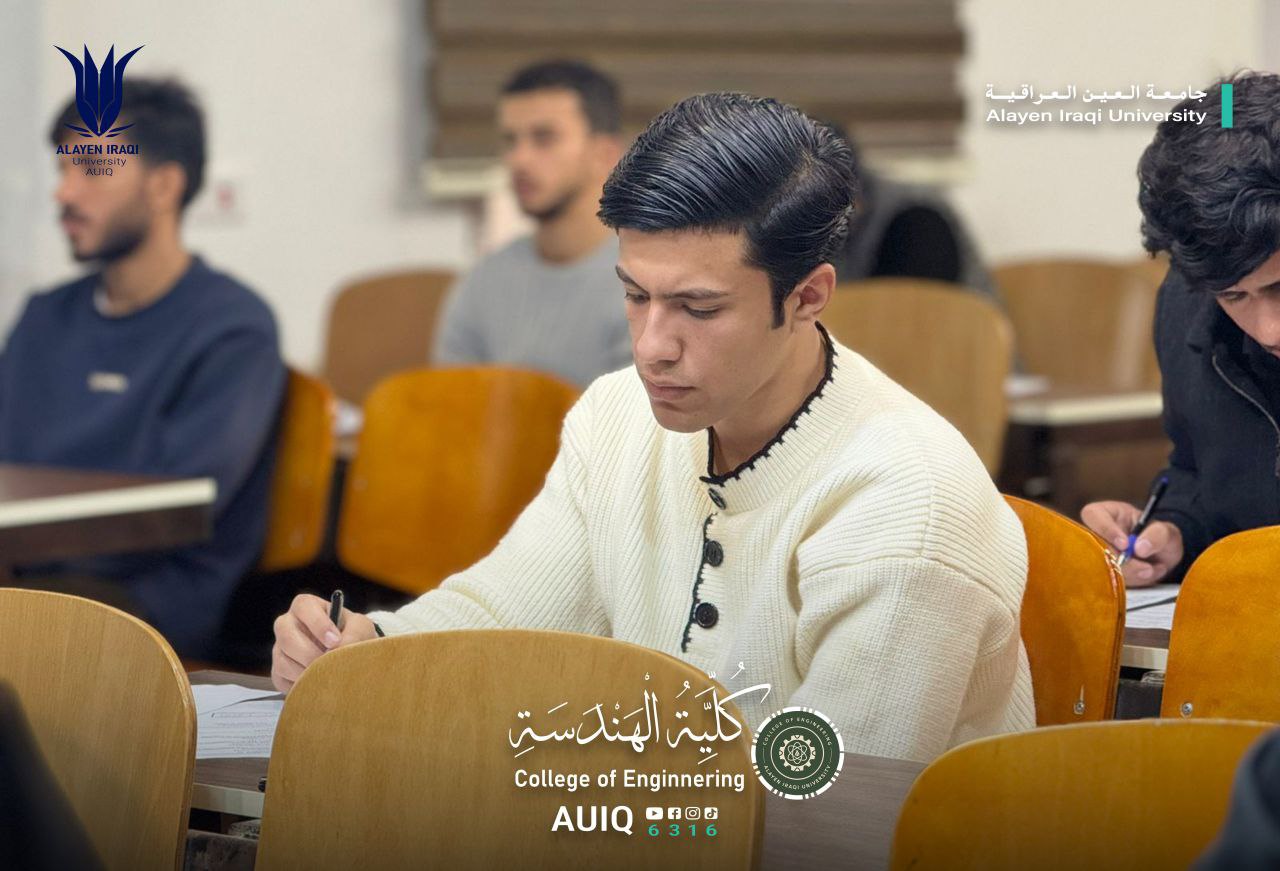 The College of Engineering at Al-Ayen Iraqi University continues to administer midterm exams for first-year students across all its academic departments. These exams are being conducted under the direct supervision of the Dean of the College, with all necessary facilities provided to ensure their smooth operation and a conducive academic environment for students.