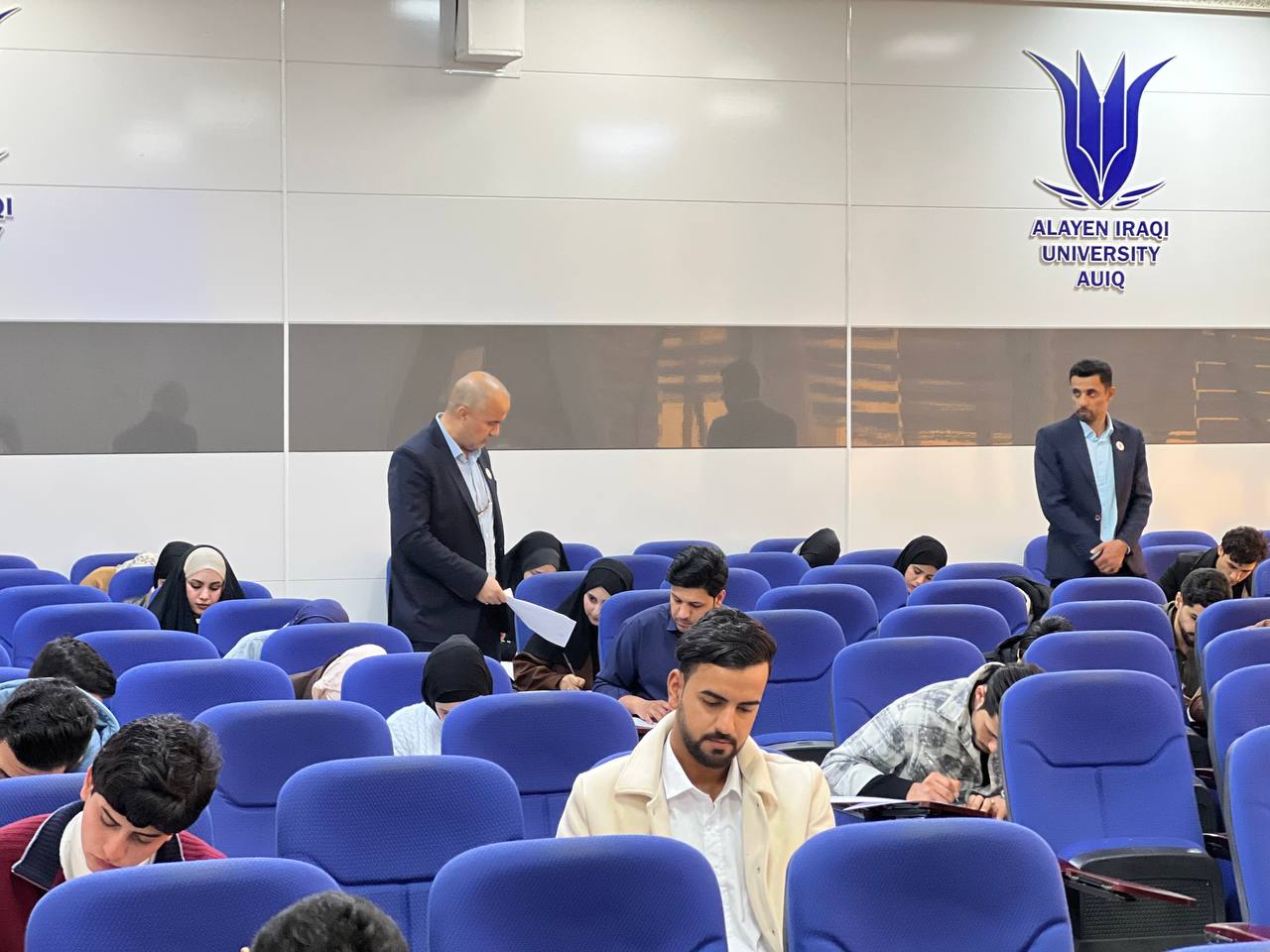 The College of Education at Al-Ayen Iraqi University commenced its first-year student examinations in a calm and well-organized atmosphere, with comprehensive preparations overseen by the college's deanship and examination committees. This ensured a suitable environment that would help students perform their exams with ease and confidence.
