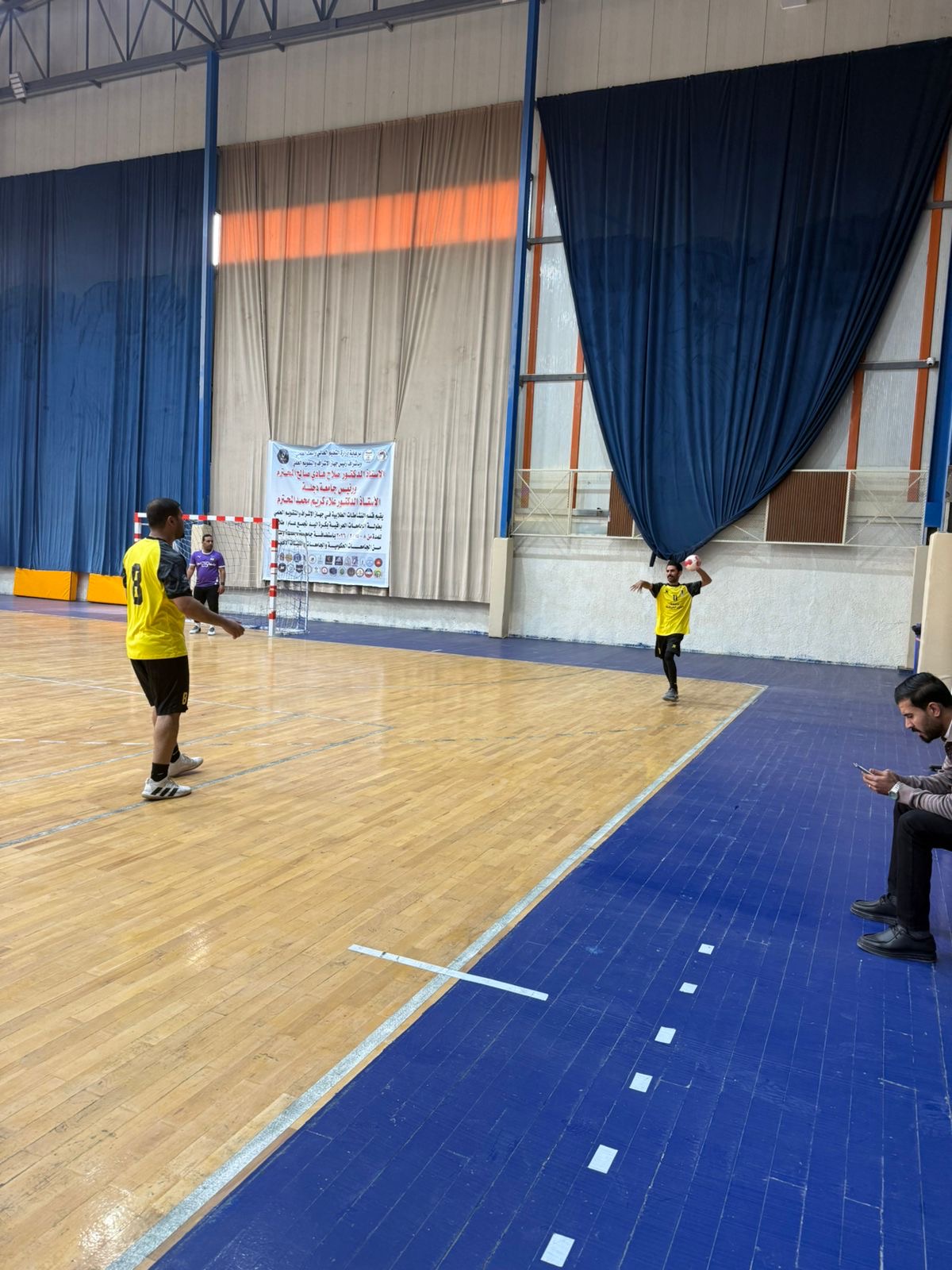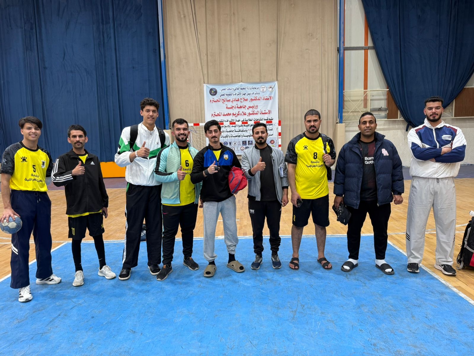 The handball team at Al-Ayen Iraqi University achieved two consecutive victories. The Student Activities Department participated in the university handball championship, overseen by the Scientific Supervision and Evaluation Authority, with the participation of several public and private universities.