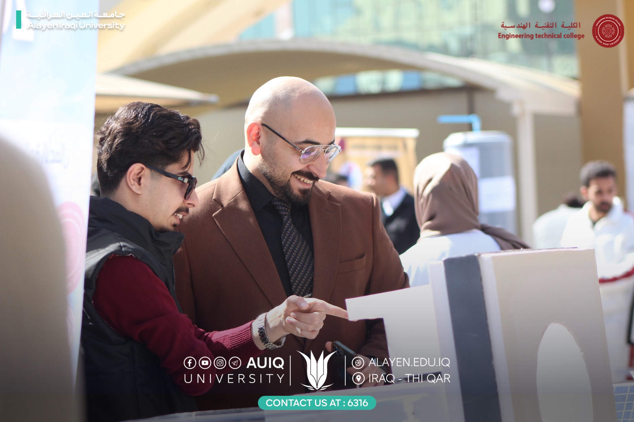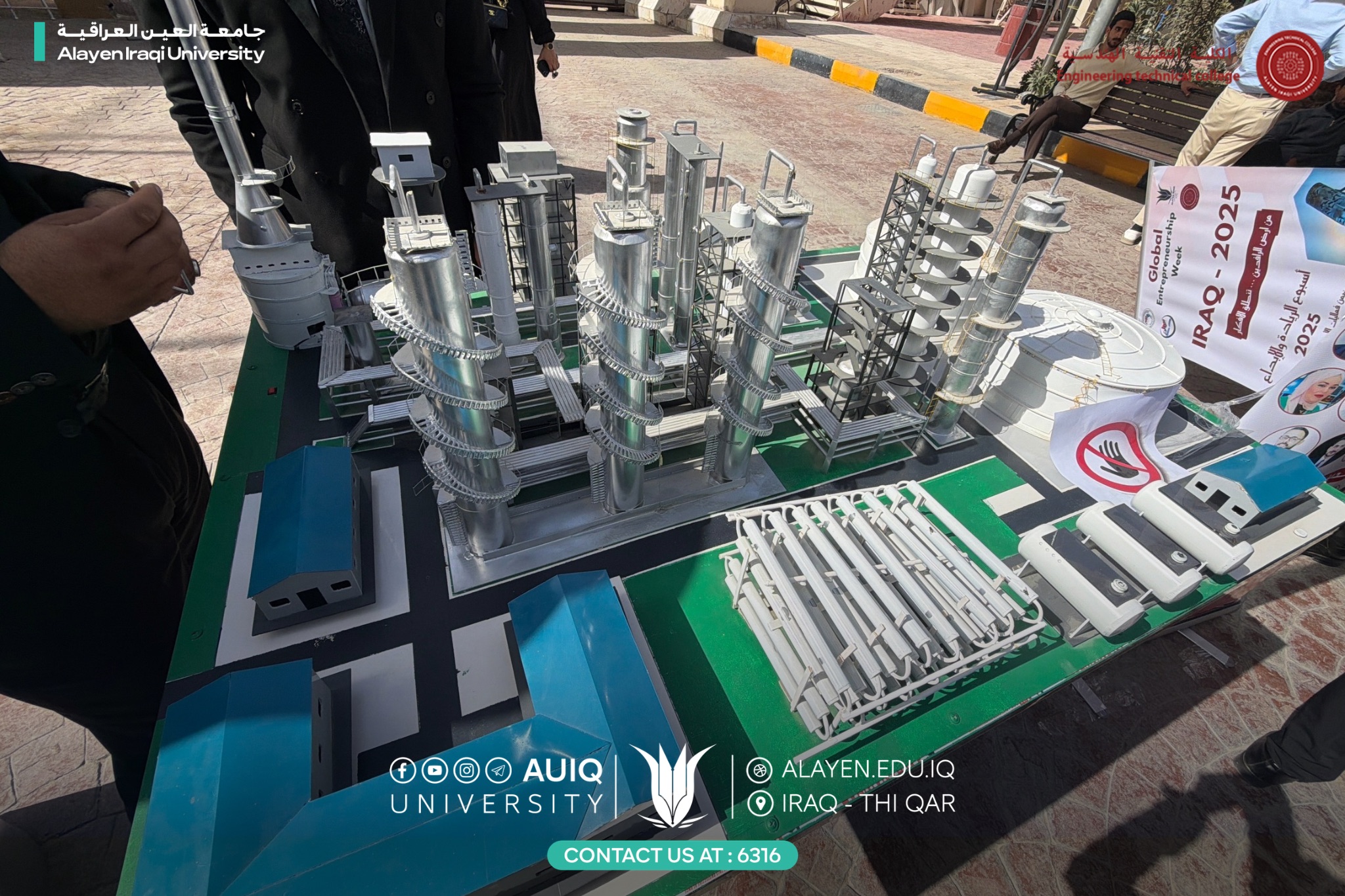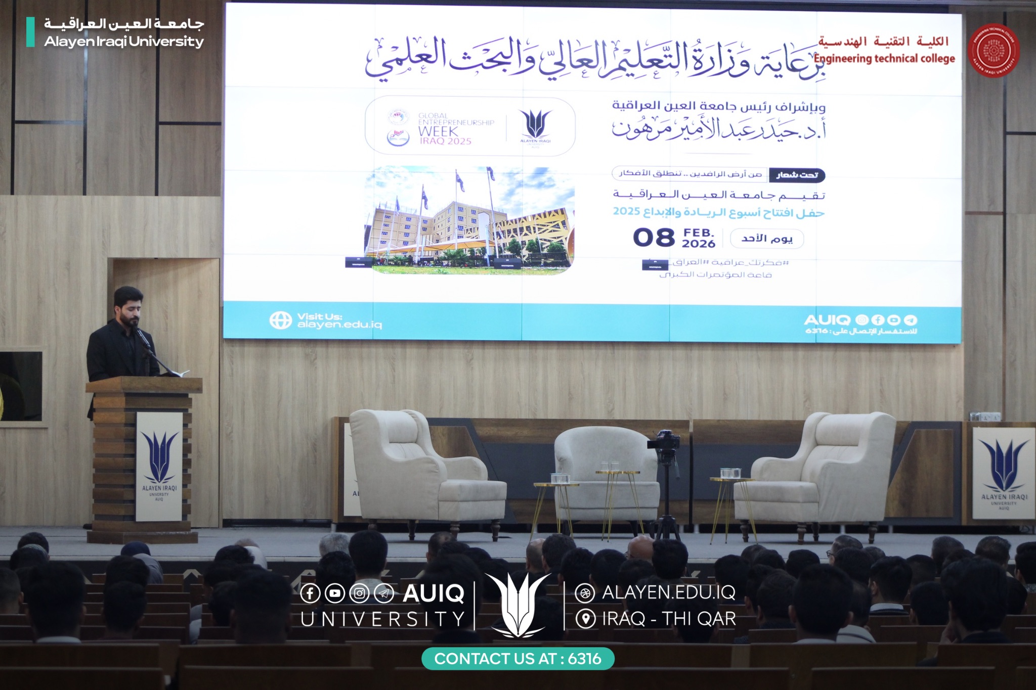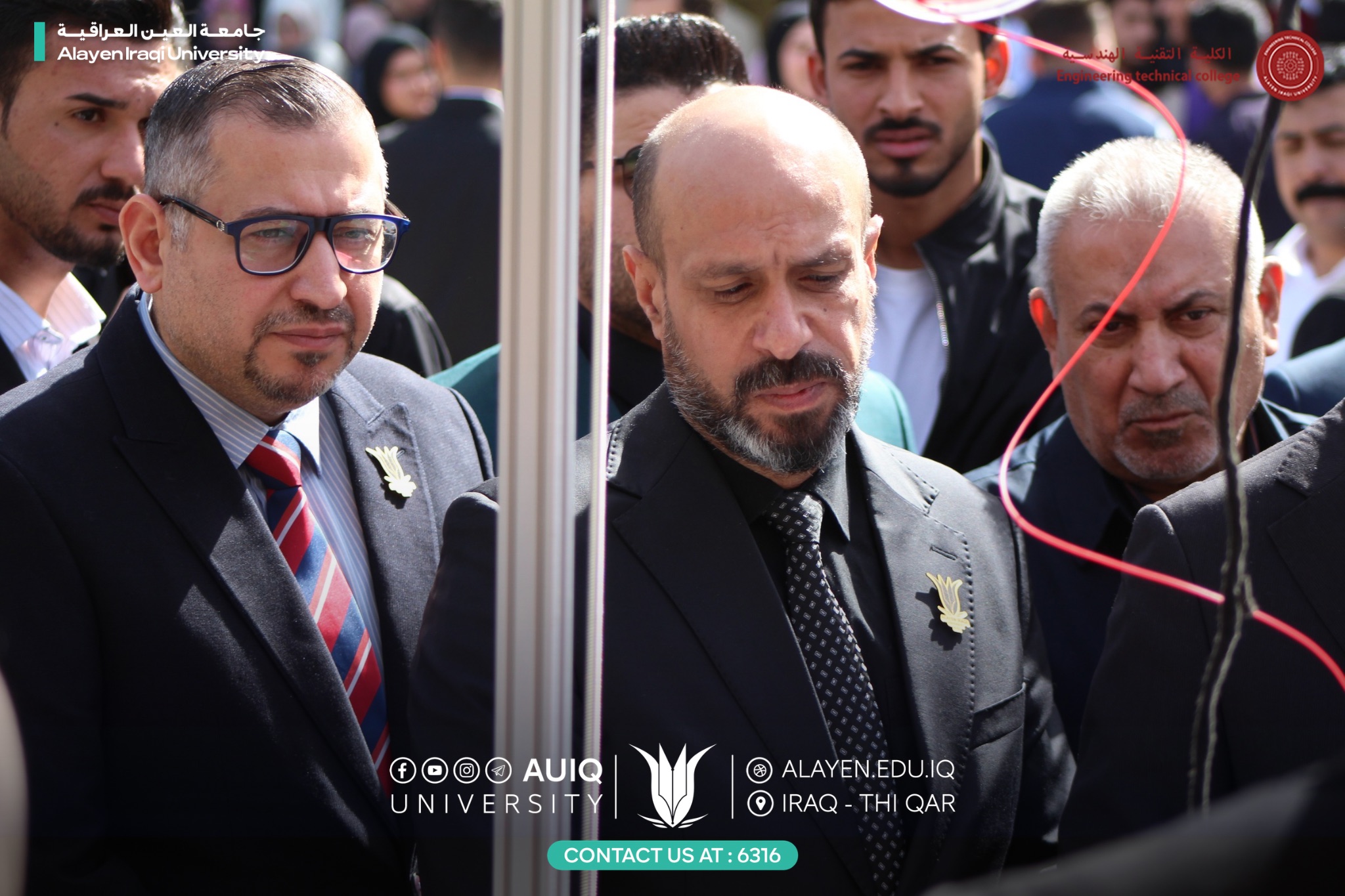 The College of Engineering Technology participated in the Entrepreneurship and Innovation Week's activities, held under the patronage of Prof. Dr. Haider A. Marhoon, Chancellor of Al-Ayen Iraqi University, and in the presence of Mr. Razzaq Kashish Al-Ghazi, First Deputy Governor of Dhi Qar, with broad participation from academic institutions and sectors supporting entrepreneurship.