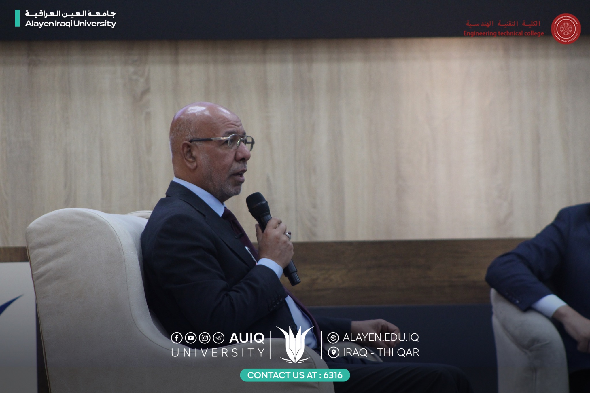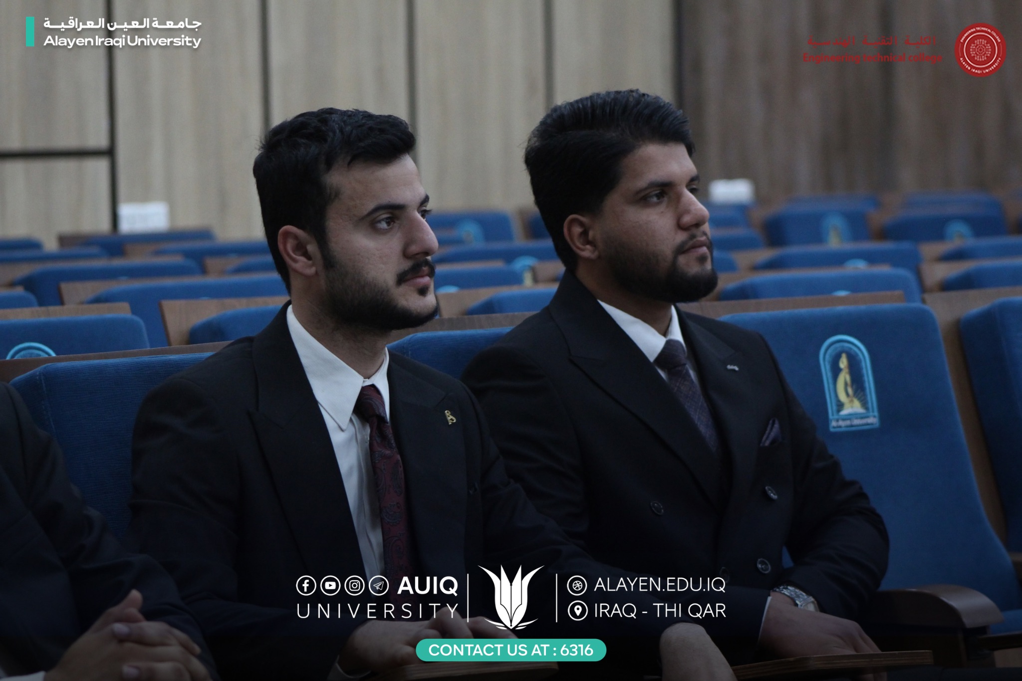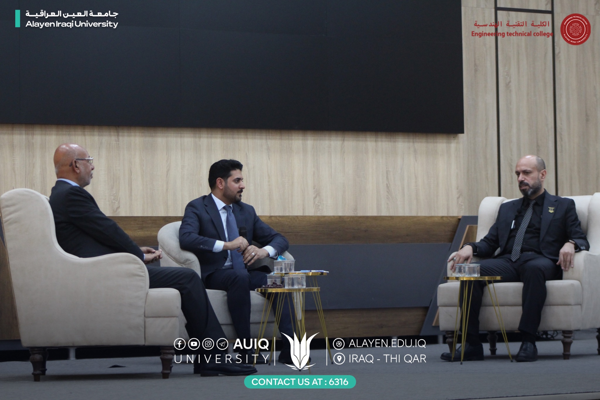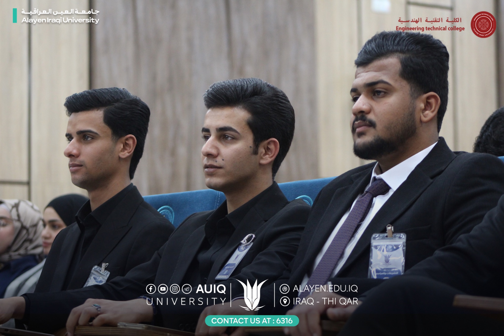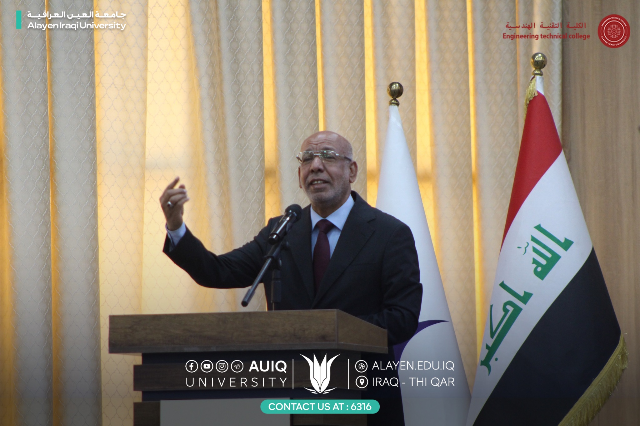 The College of Engineering Technology participated in the Entrepreneurship and Innovation Week's activities, held under the patronage of Prof. Dr. Haider A. Marhoon, Chancellor of Al-Ayen Iraqi University, and in the presence of Mr. Razzaq Kashish Al-Ghazi, First Deputy Governor of Dhi Qar, with broad participation from academic institutions and sectors supporting entrepreneurship.
