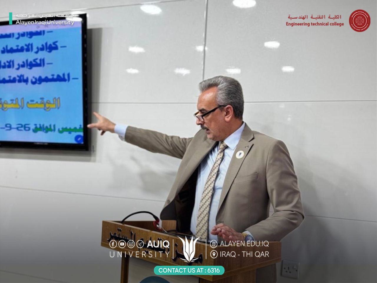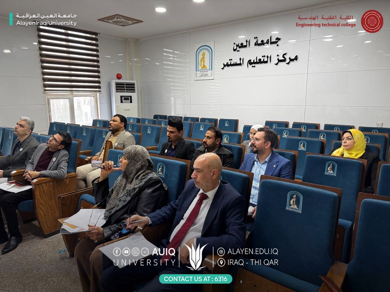 The Quality Assurance Department at Al-Ayen Iraqi University organized a training workshop titled “Academic Description: From Concepts to Application – Part 1,” presented by Asst. Prof. Dr. Ahmed N. N. Al-Subaih, with the participation of quality assurance officers from all university colleges.