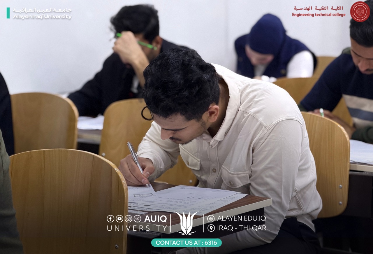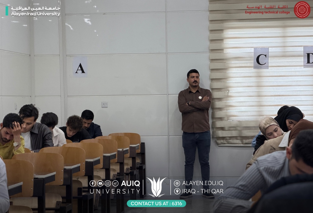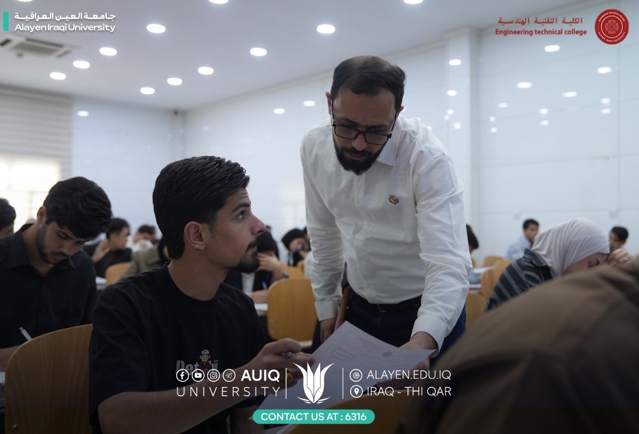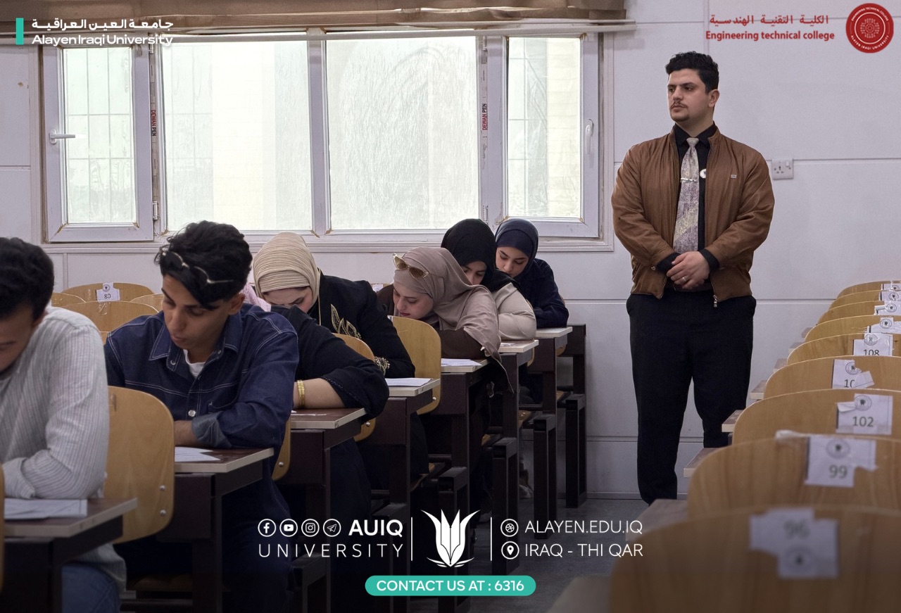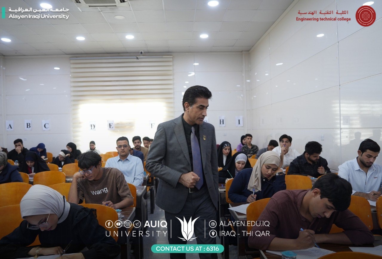 In its commitment to ensuring the quality of academic performance, the College of Engineering Technology at Al-Ayen Iraqi University continues to monitor the final examinations for first-year students through direct supervision and meticulous on-site follow-up.