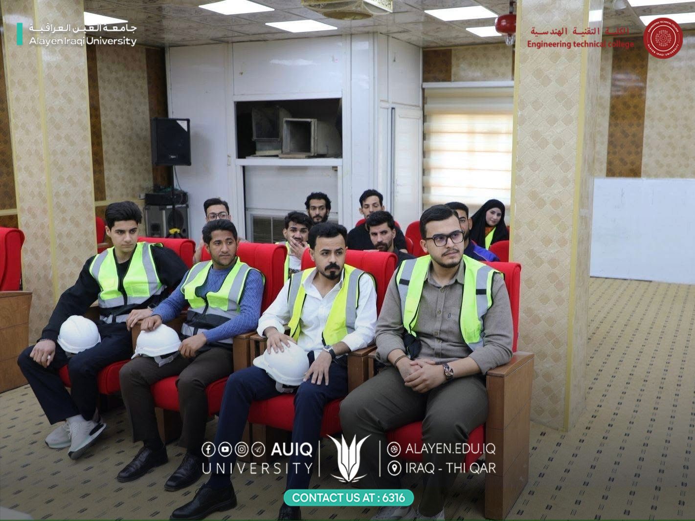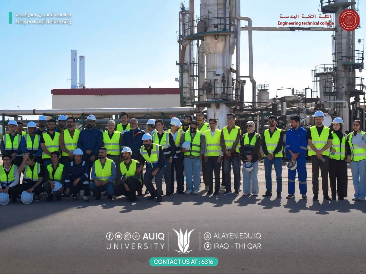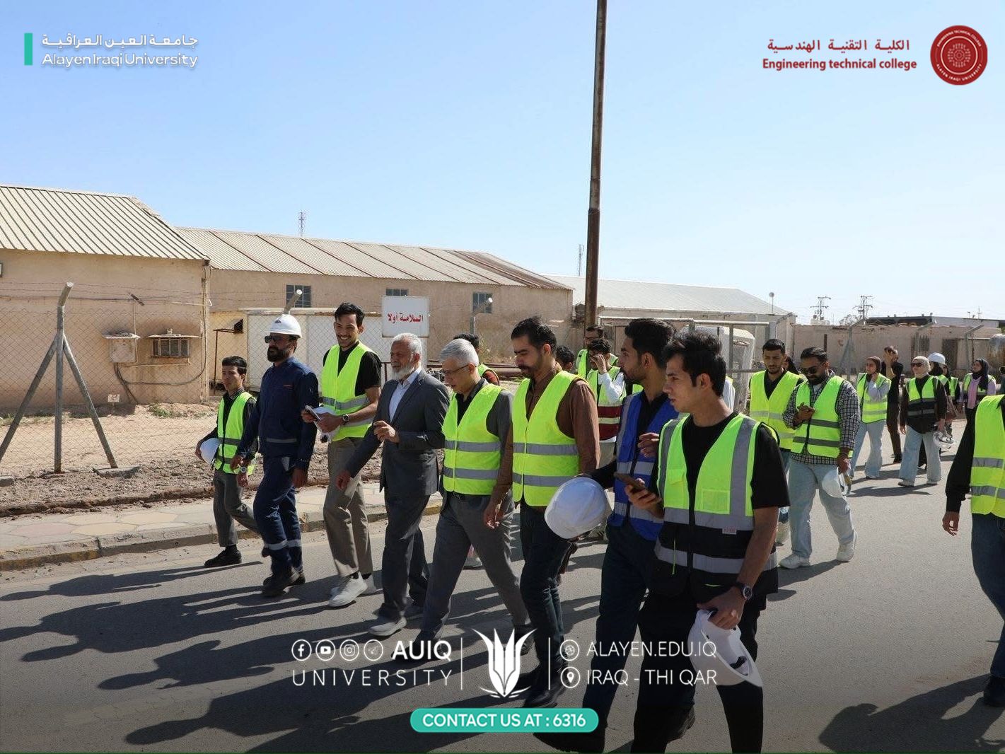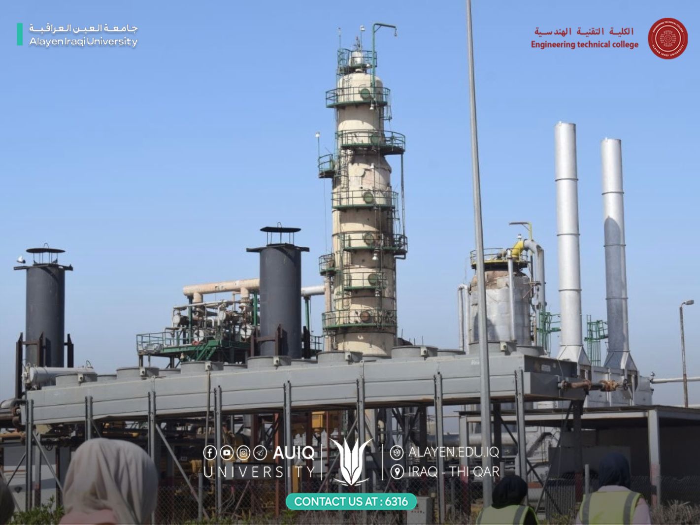 The College of Engineering – Fuel and Energy Department at Al-Ayen University organized a scientific visit to the Dhi Qar Oil Refinery, accompanied by Dr. Fouad Mohammed Fouad and Asst. Prof. Ali Jaafar. The visit aimed to enhance students' practical experience and familiarize them with the operational mechanisms of oil processing units.