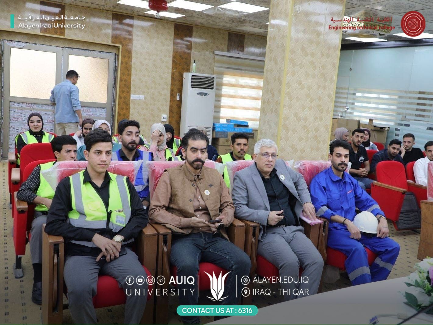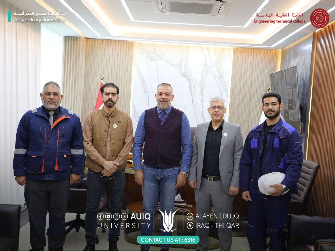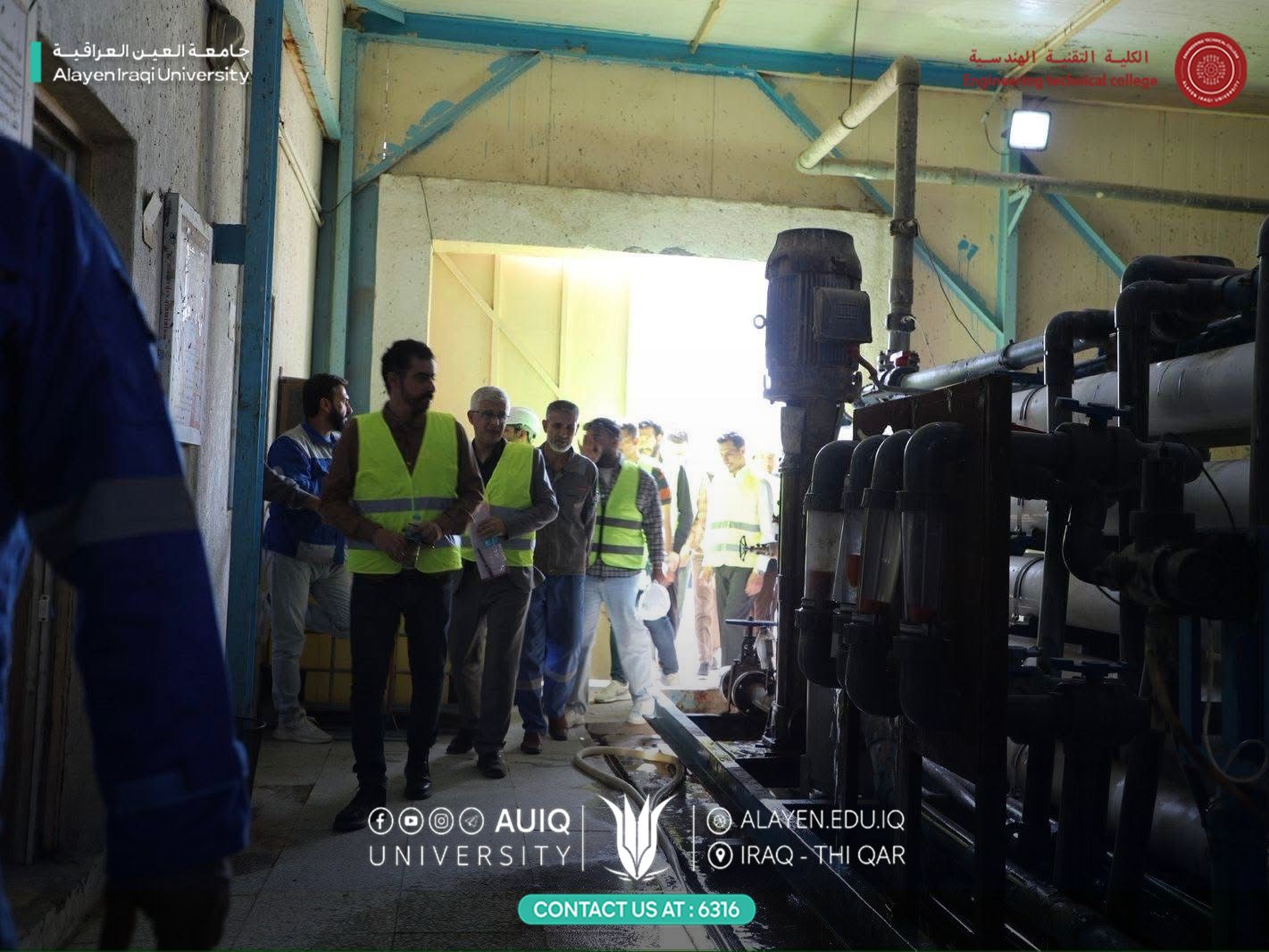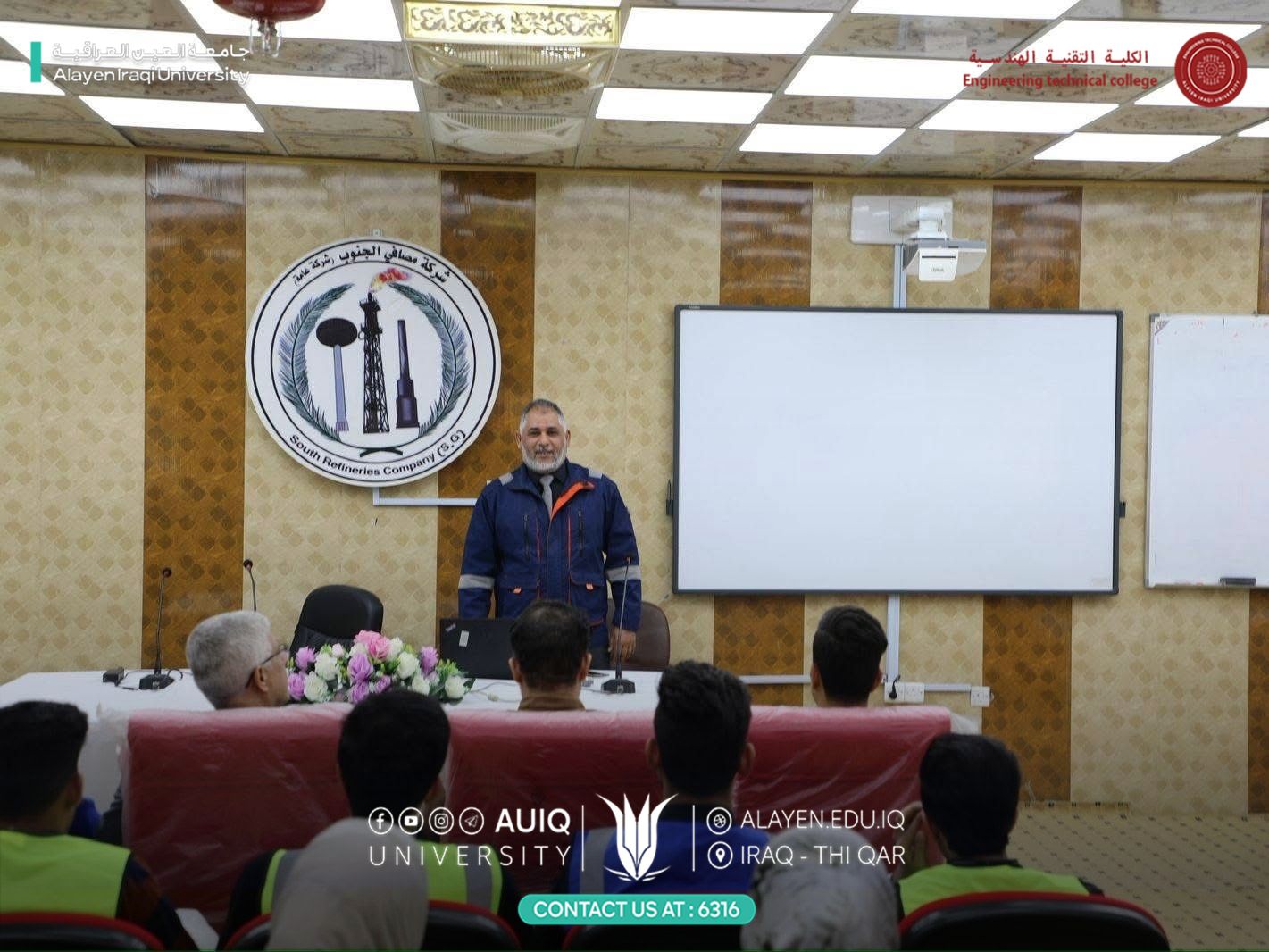 The College of Engineering – Fuel and Energy Department at Al-Ayen University organized a scientific visit to the Dhi Qar Oil Refinery, accompanied by Dr. Fouad Mohammed Fouad and Asst. Prof. Ali Jaafar. The visit aimed to enhance students' practical experience and familiarize them with the operational mechanisms of oil processing units.