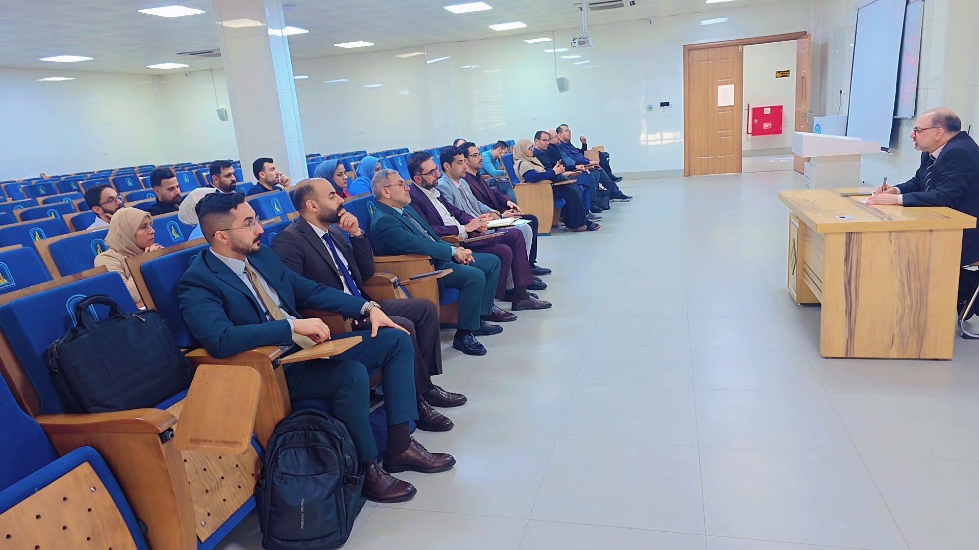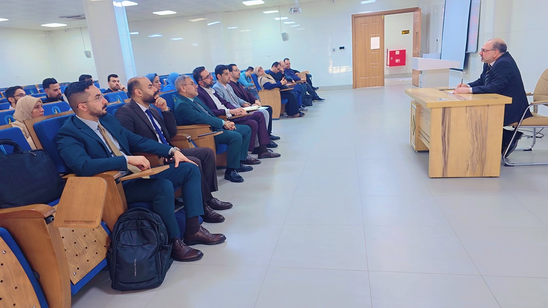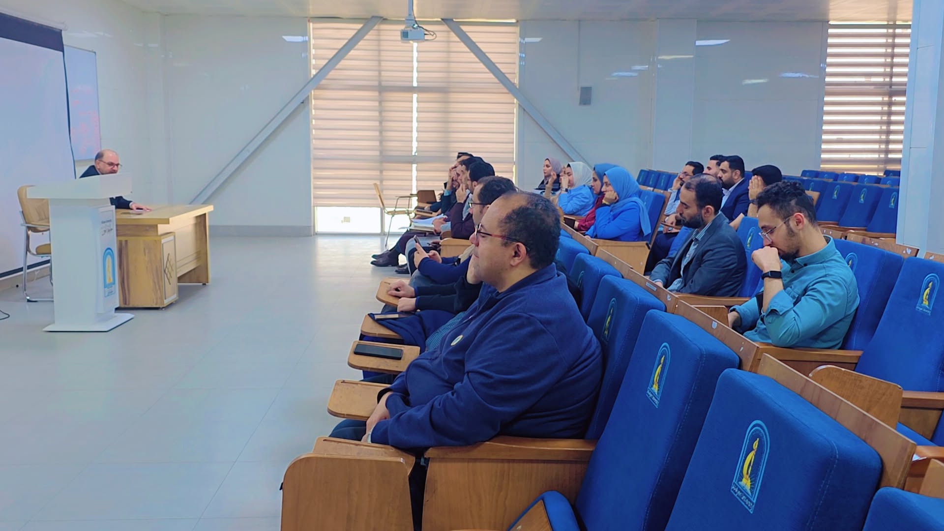 The workshop was led by the Dean of the College of Pharmacy, Dr. Haider H. Al-Anbari, with the participation of Asst. Prof. Dr. Mohammed Mohammed Shaheen, Head of the Quality Assurance Unit at the College of Pharmacy. They provided a detailed explanation of the program accreditation criteria and answered attendees' questions, emphasizing the importance of collaborative efforts and teamwork to elevate the academic and administrative standards of the college.