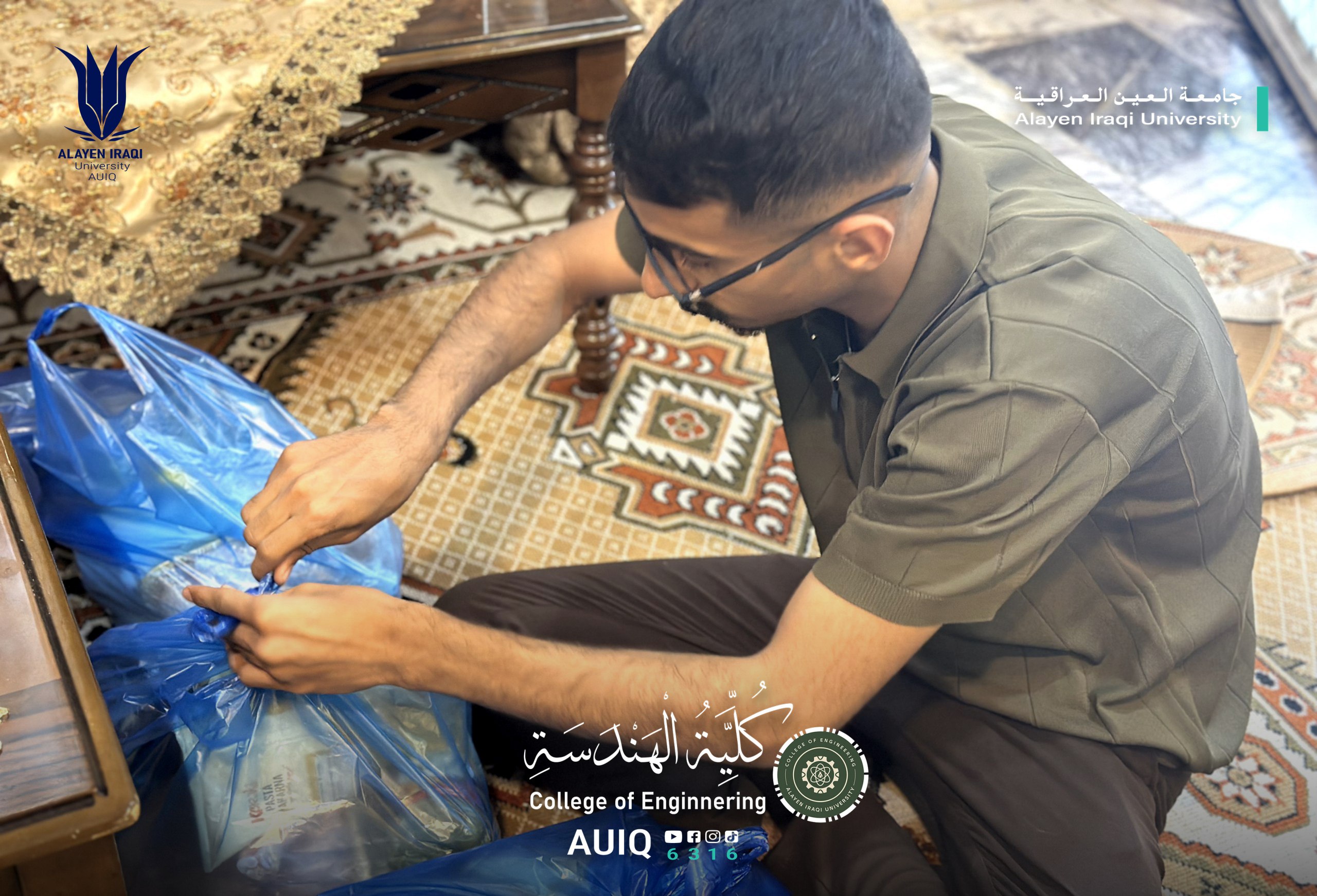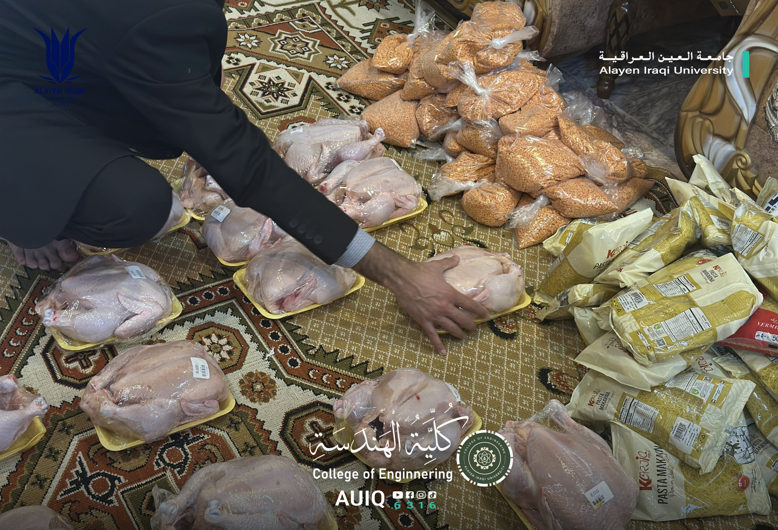 As part of its social responsibility and in embodiment of the values of solidarity and compassion during the holy month of Ramadan, the College of Engineering organized a humanitarian initiative by distributing Ramadan food baskets to a number of needy families. This initiative was made possible through the active support and participation of the Elite Engineering Team and in cooperation with the Student Activities Department at the college.