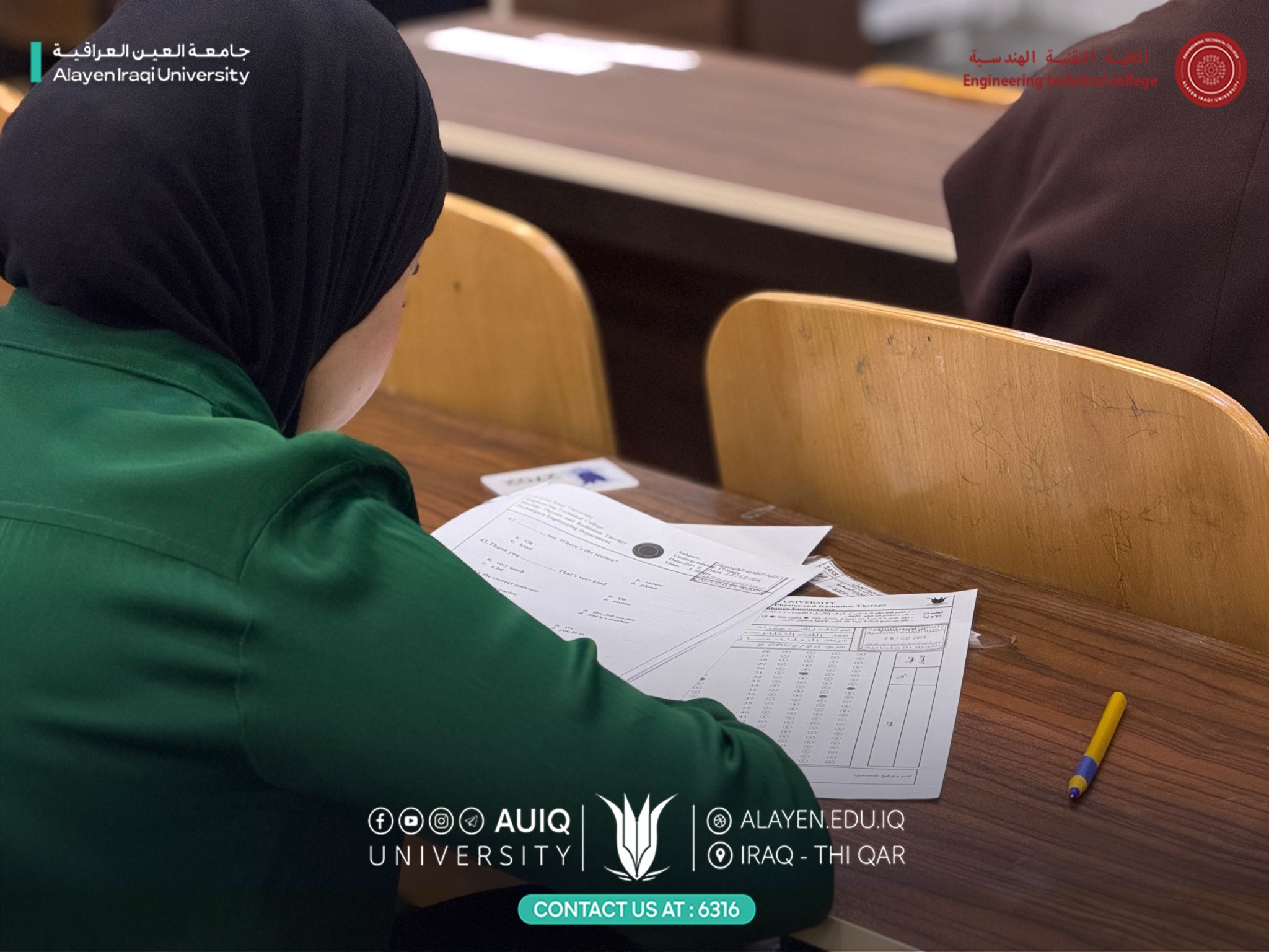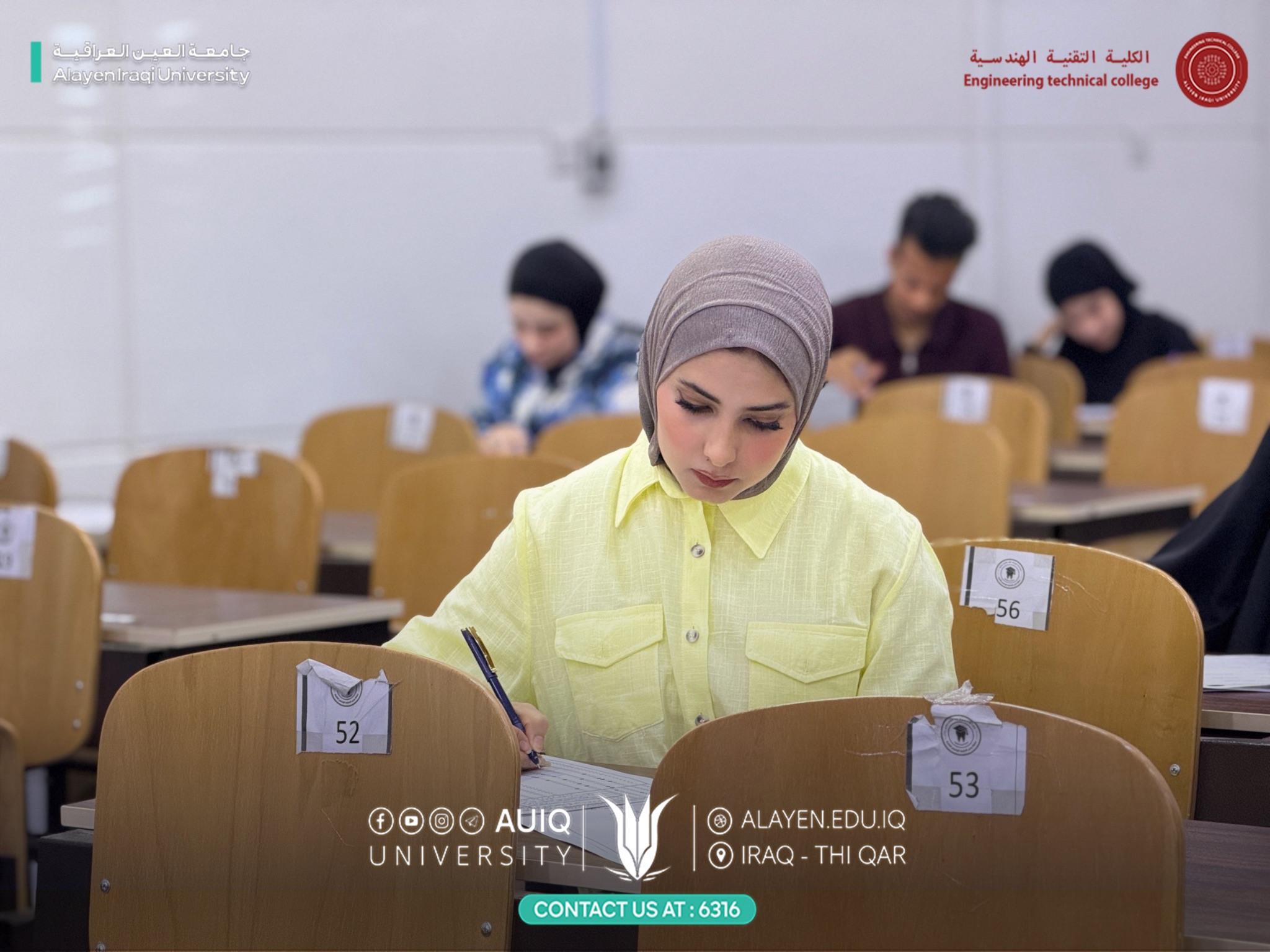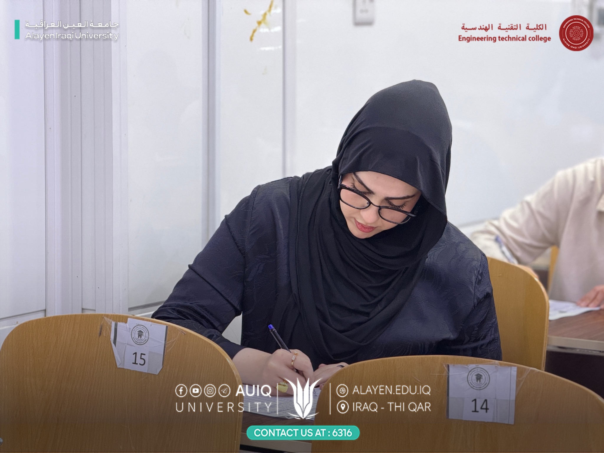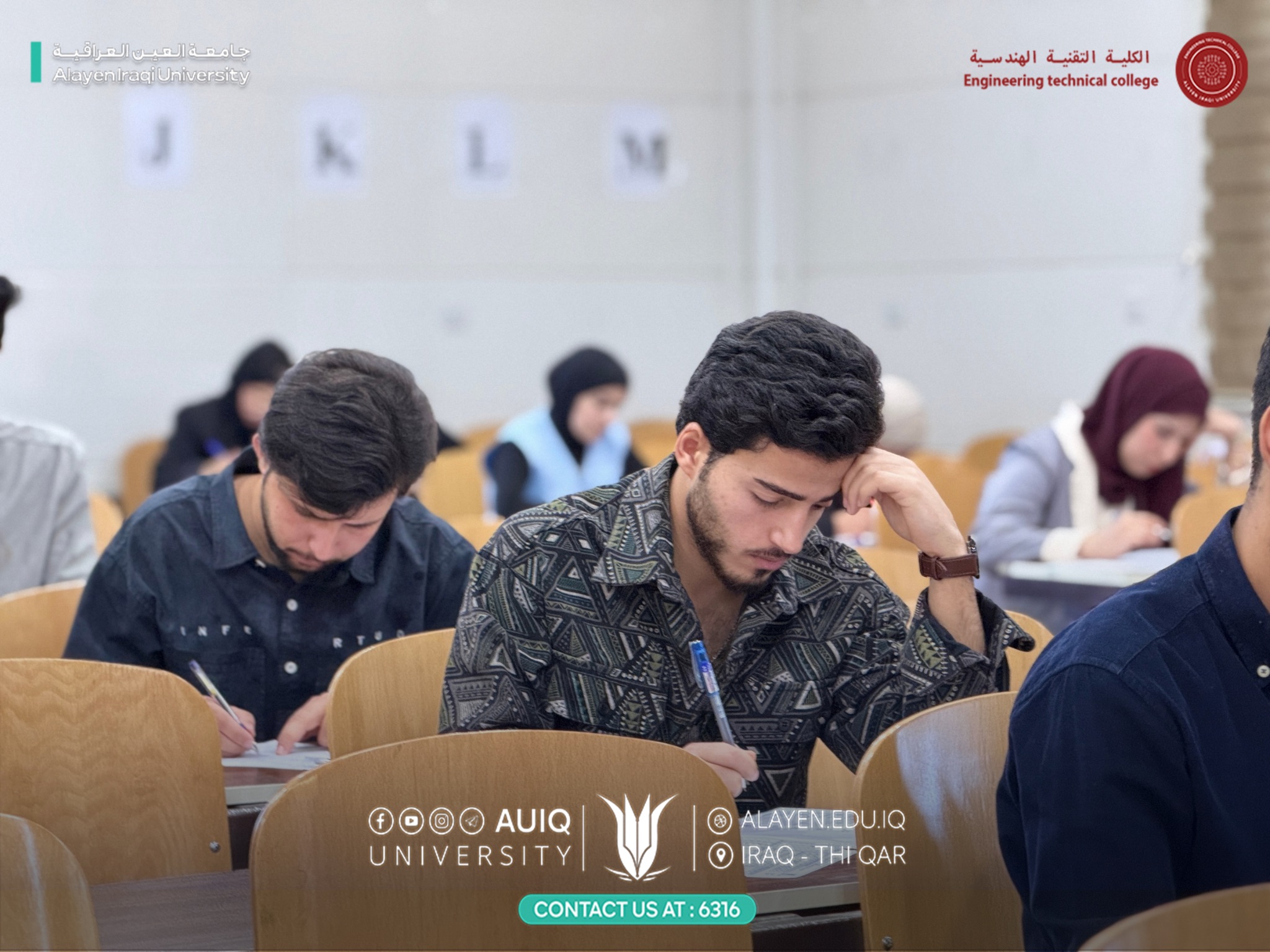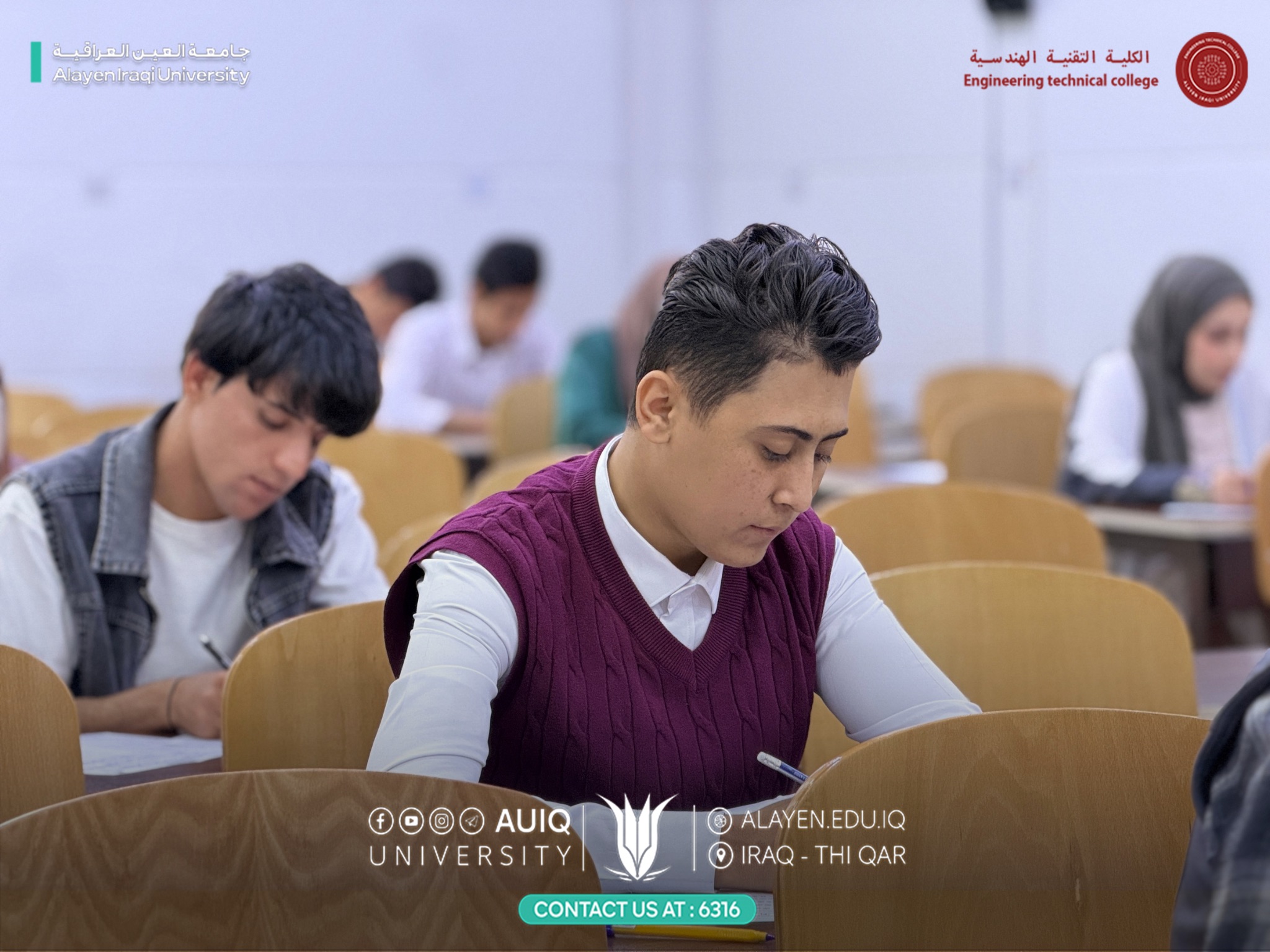 The College of Engineering Technology at Al-Ayen Iraqi University concluded its academic term final exams for first-year students, conducted according to the Bologna Process, amidst comprehensive organizational procedures and a rigorous academic environment.
