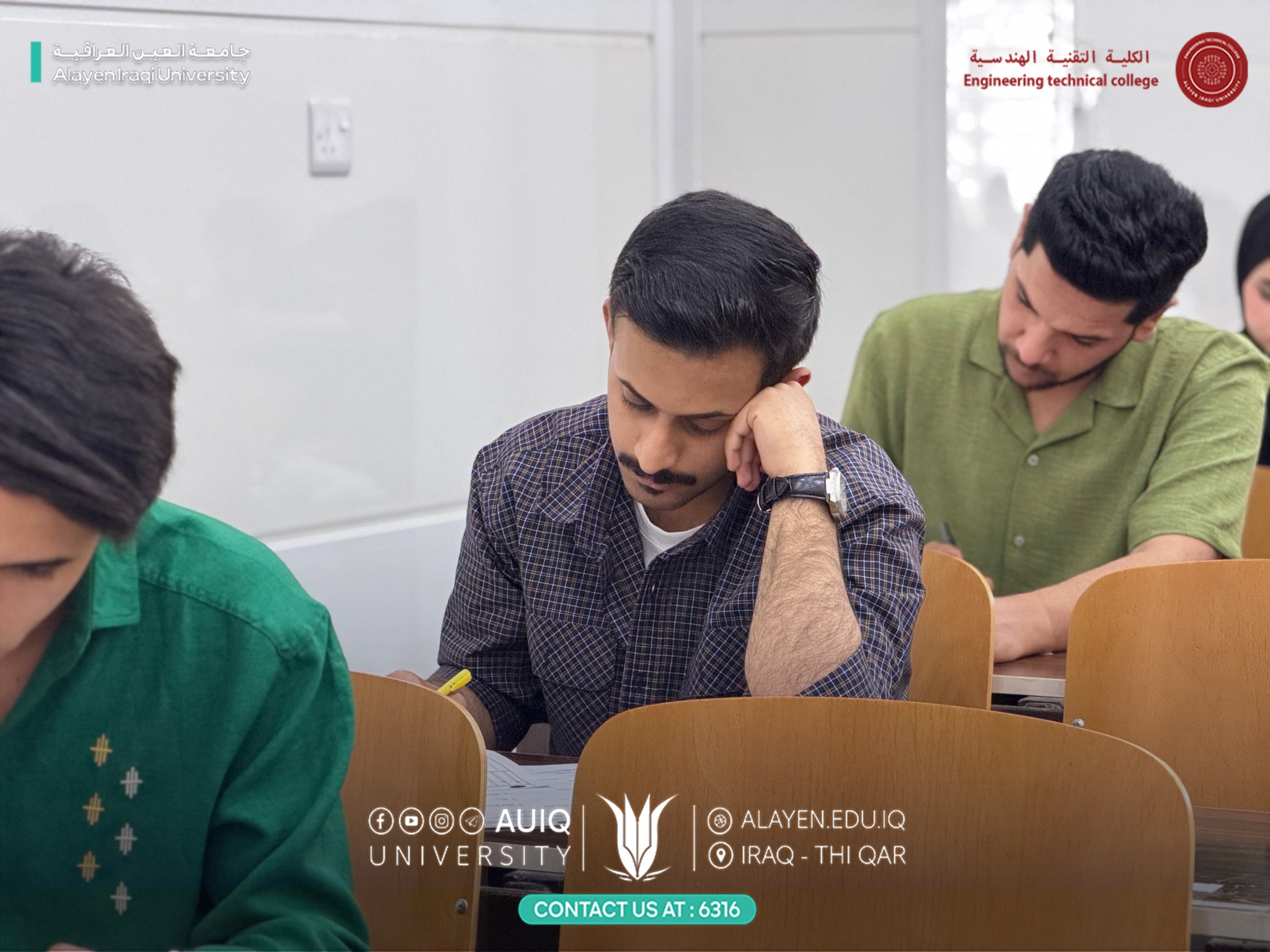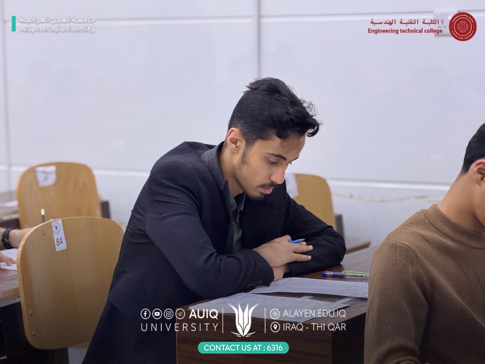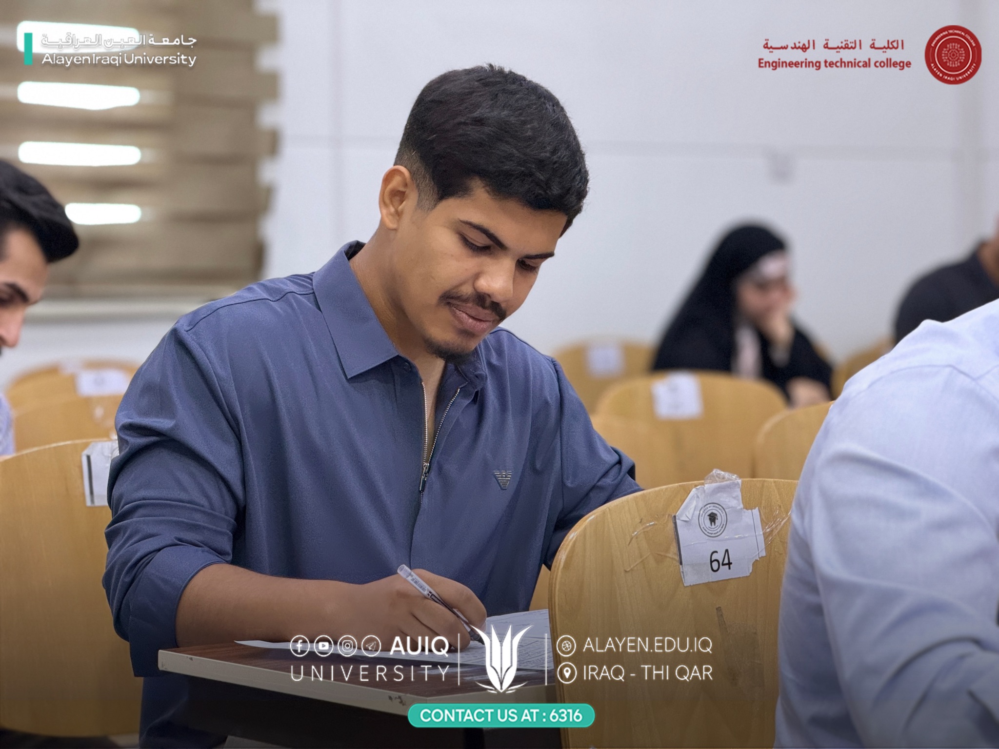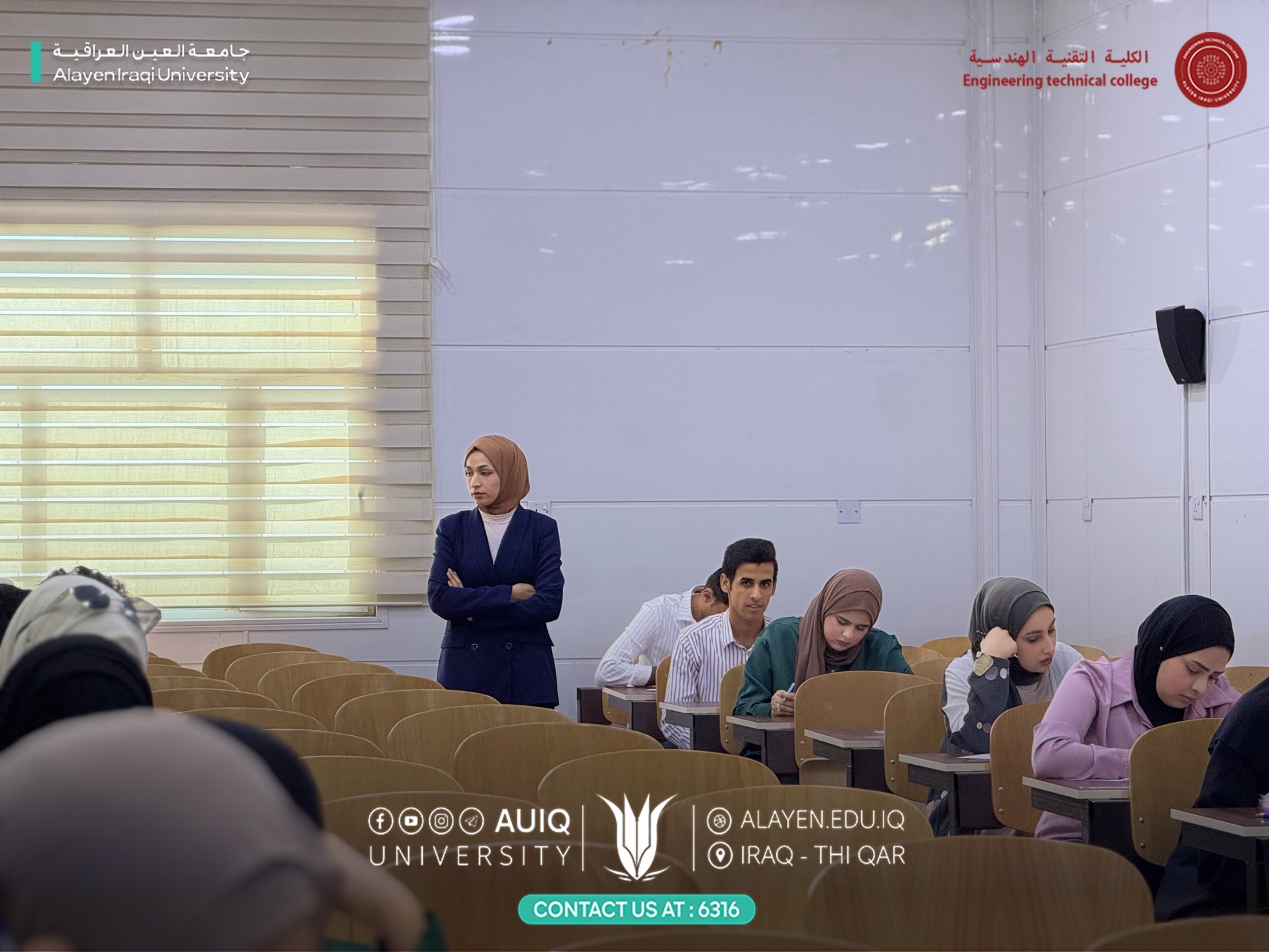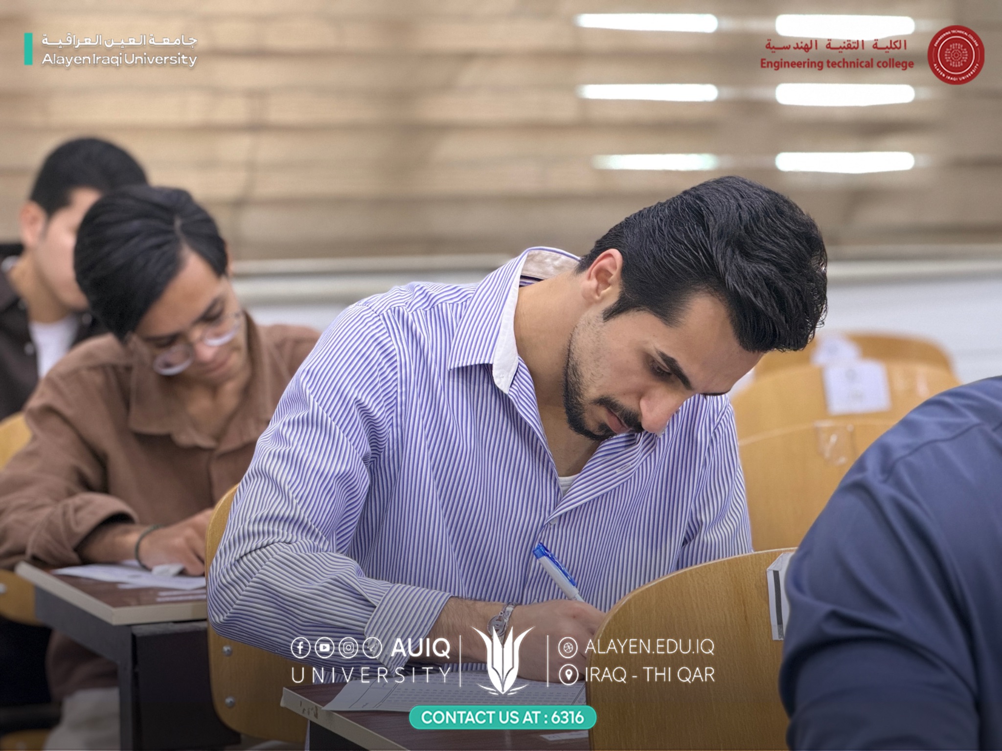 The College of Engineering Technology at Al-Ayen Iraqi University concluded its academic term final exams for first-year students, conducted according to the Bologna Process, amidst comprehensive organizational procedures and a rigorous academic environment.