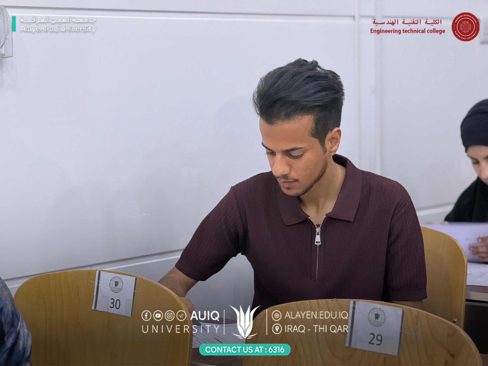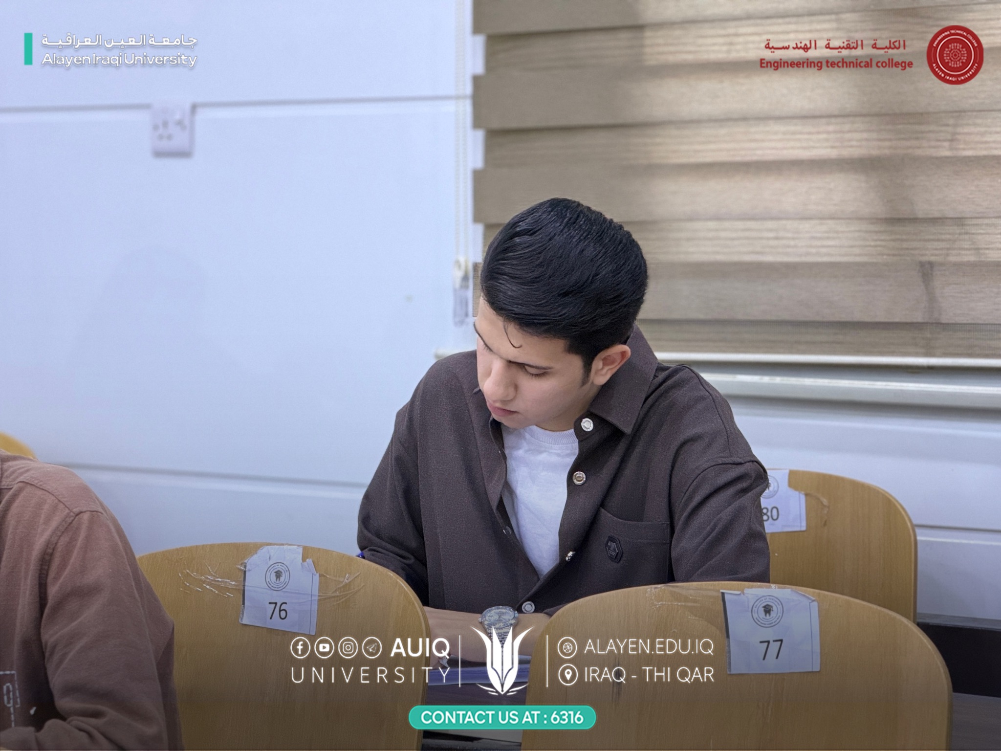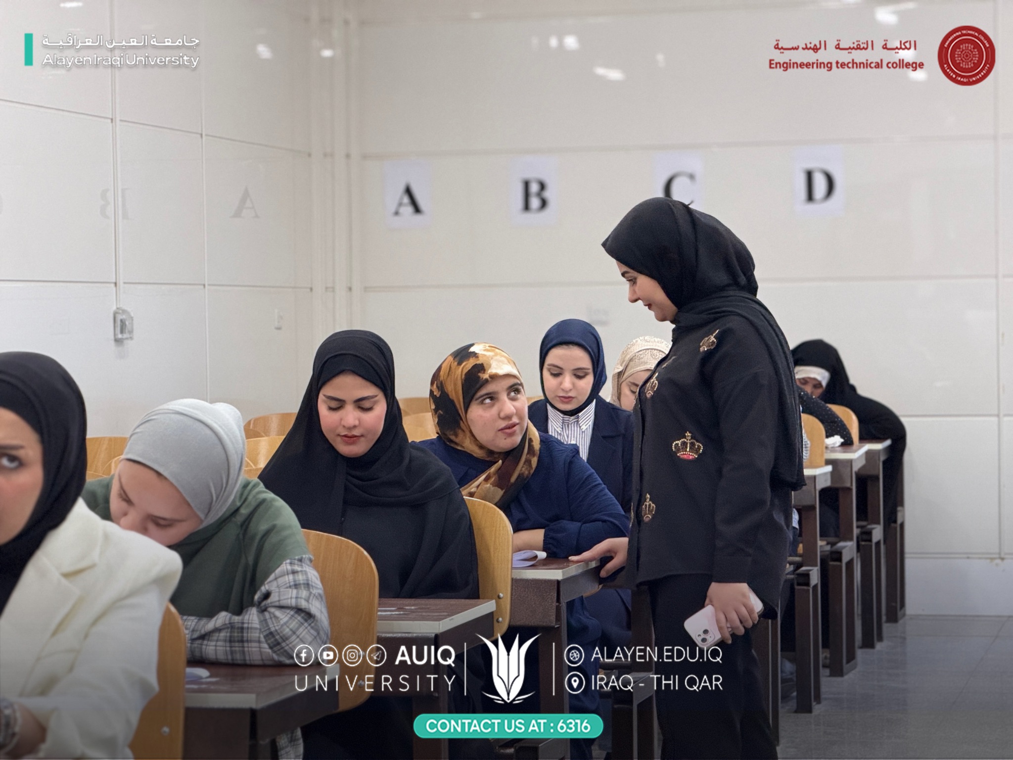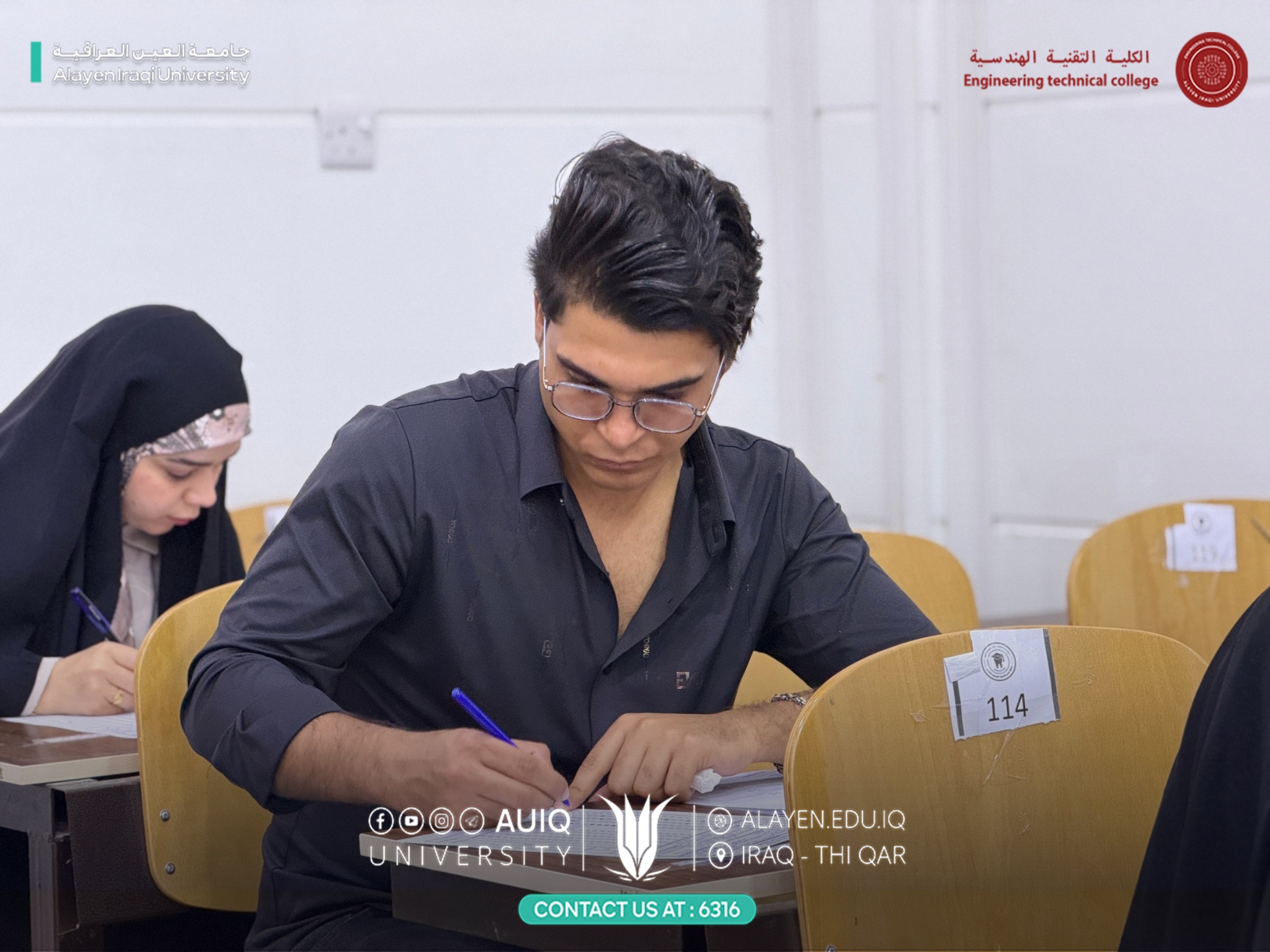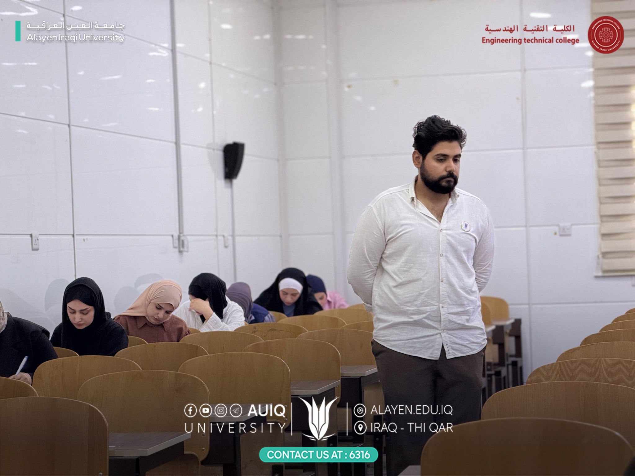 The College of Engineering Technology at Al-Ayen Iraqi University concluded its academic term final exams for first-year students, conducted according to the Bologna Process, amidst comprehensive organizational procedures and a rigorous academic environment.