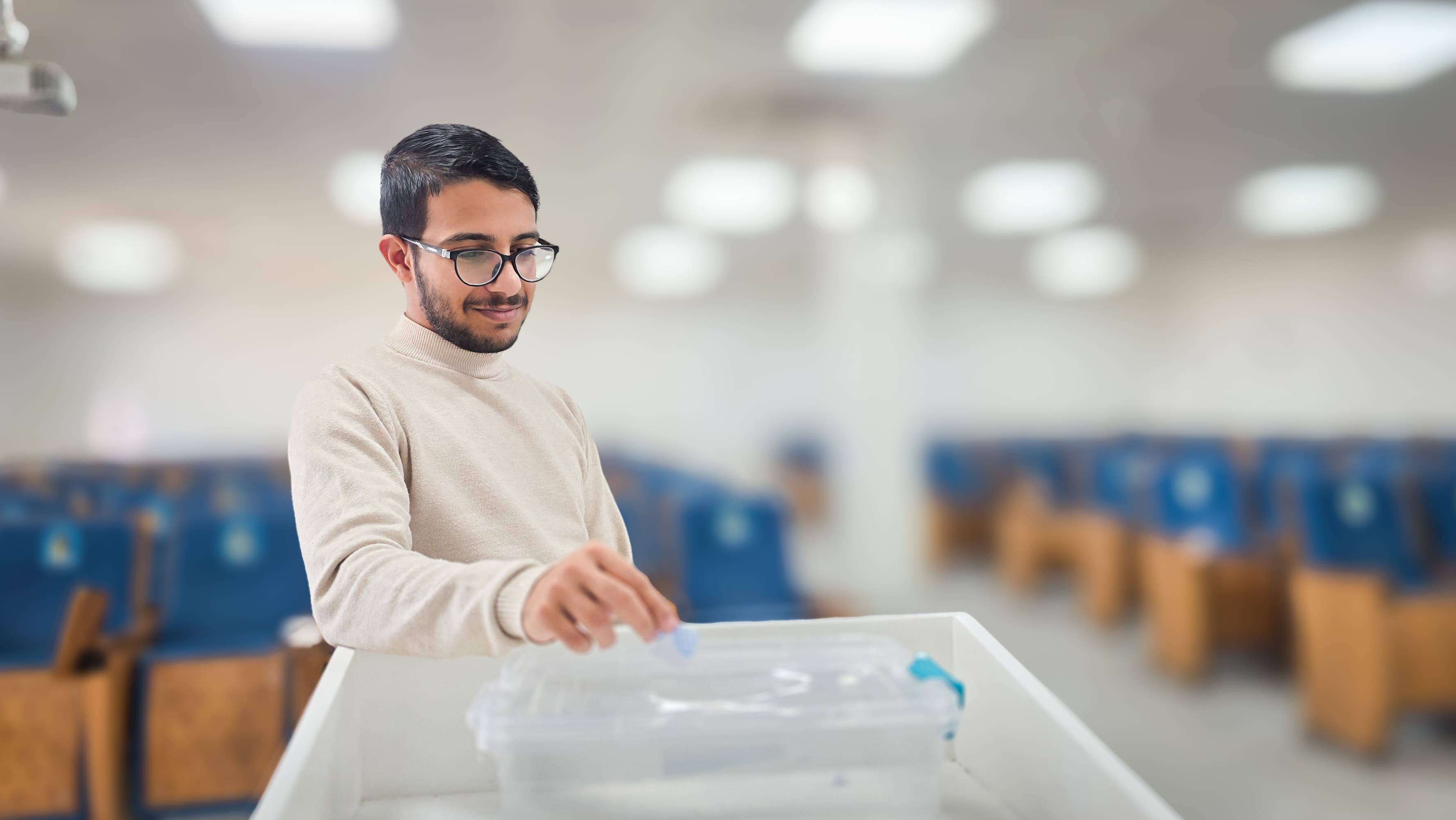 In a distinguished academic atmosphere, during the blessed month of Ramadan, a month of prosperity and blessings, and under the patronage and supervision of the Dean of the College of Pharmacy, Dr. Haider Al-Anbari, the college, held elections for first-year student representatives.