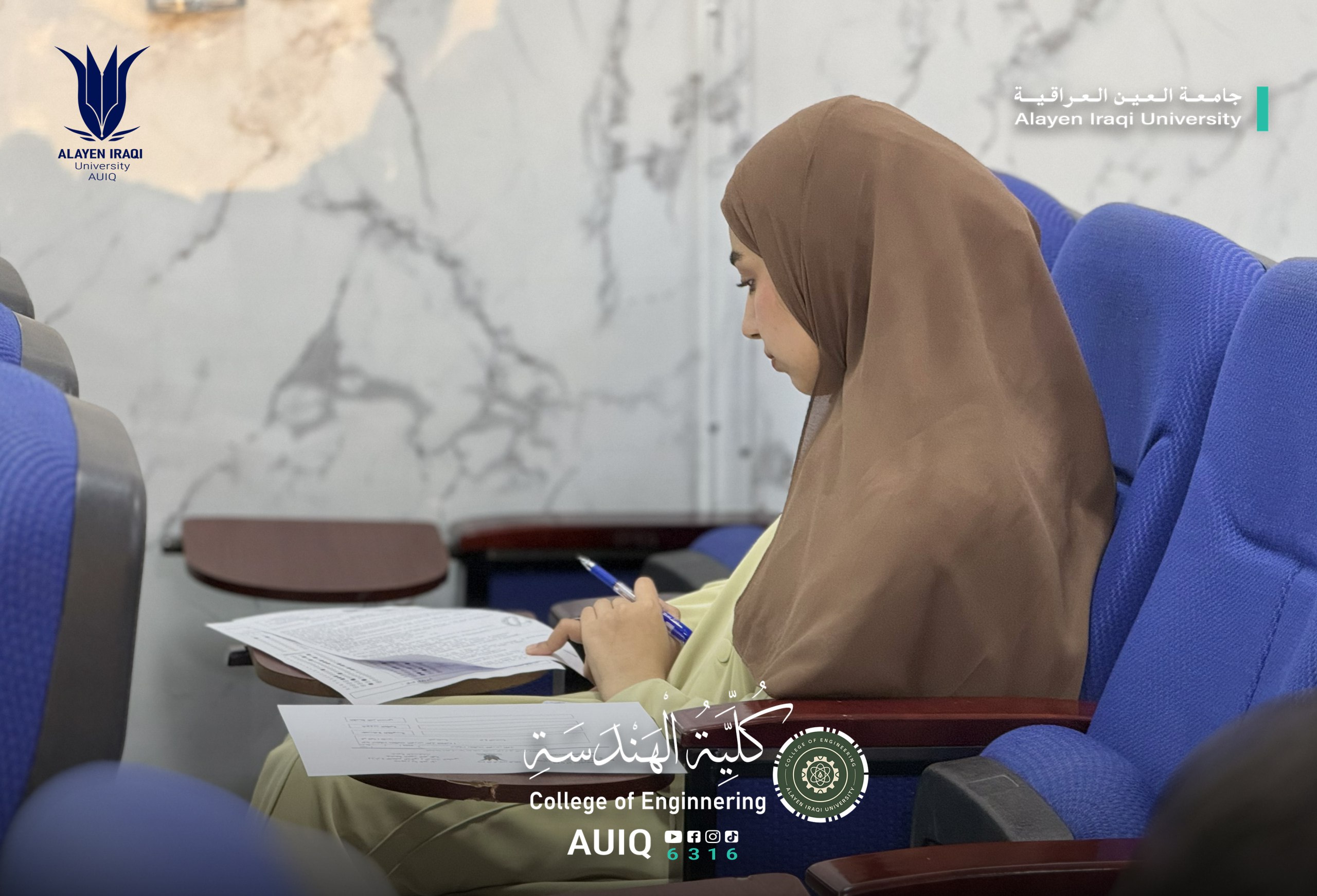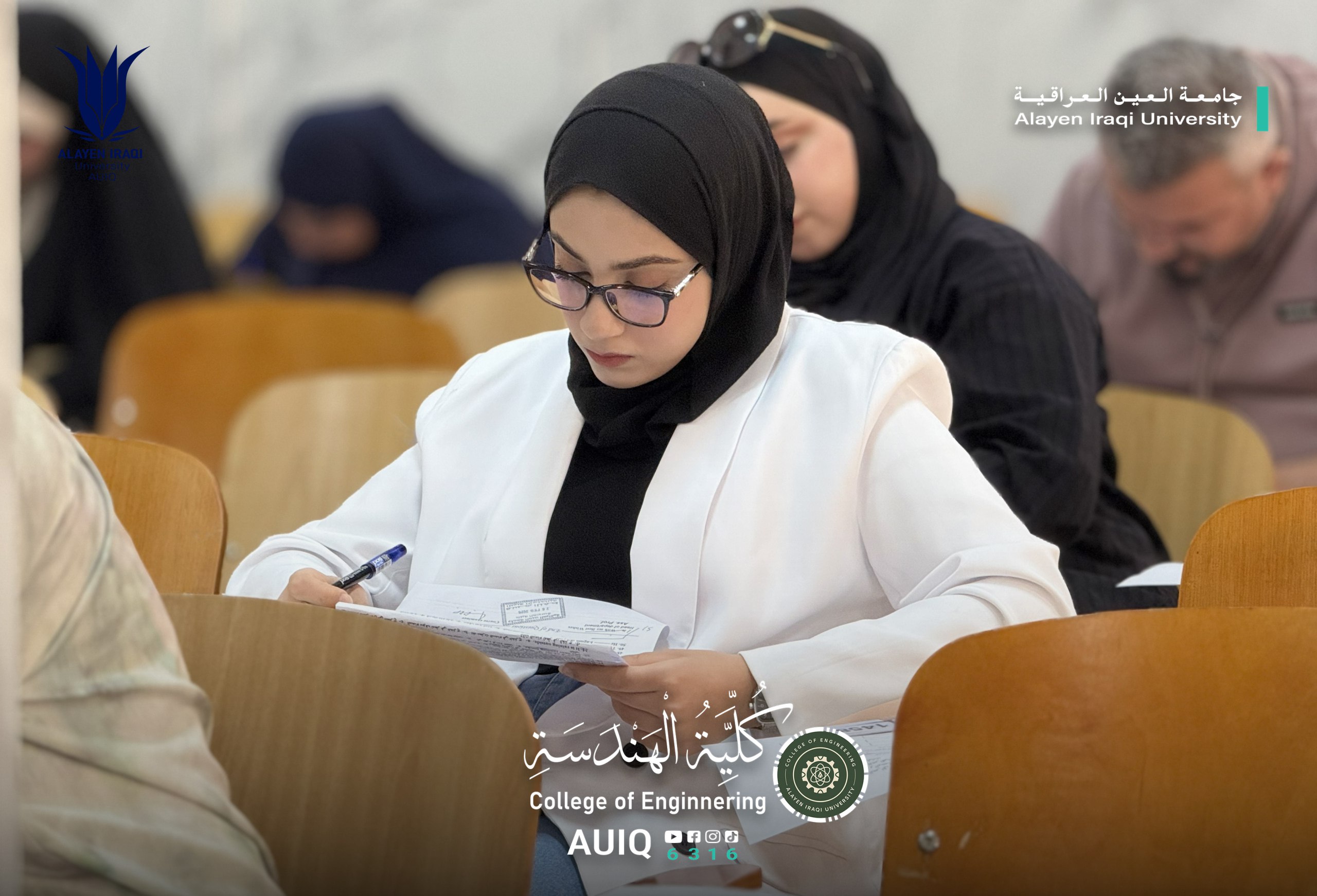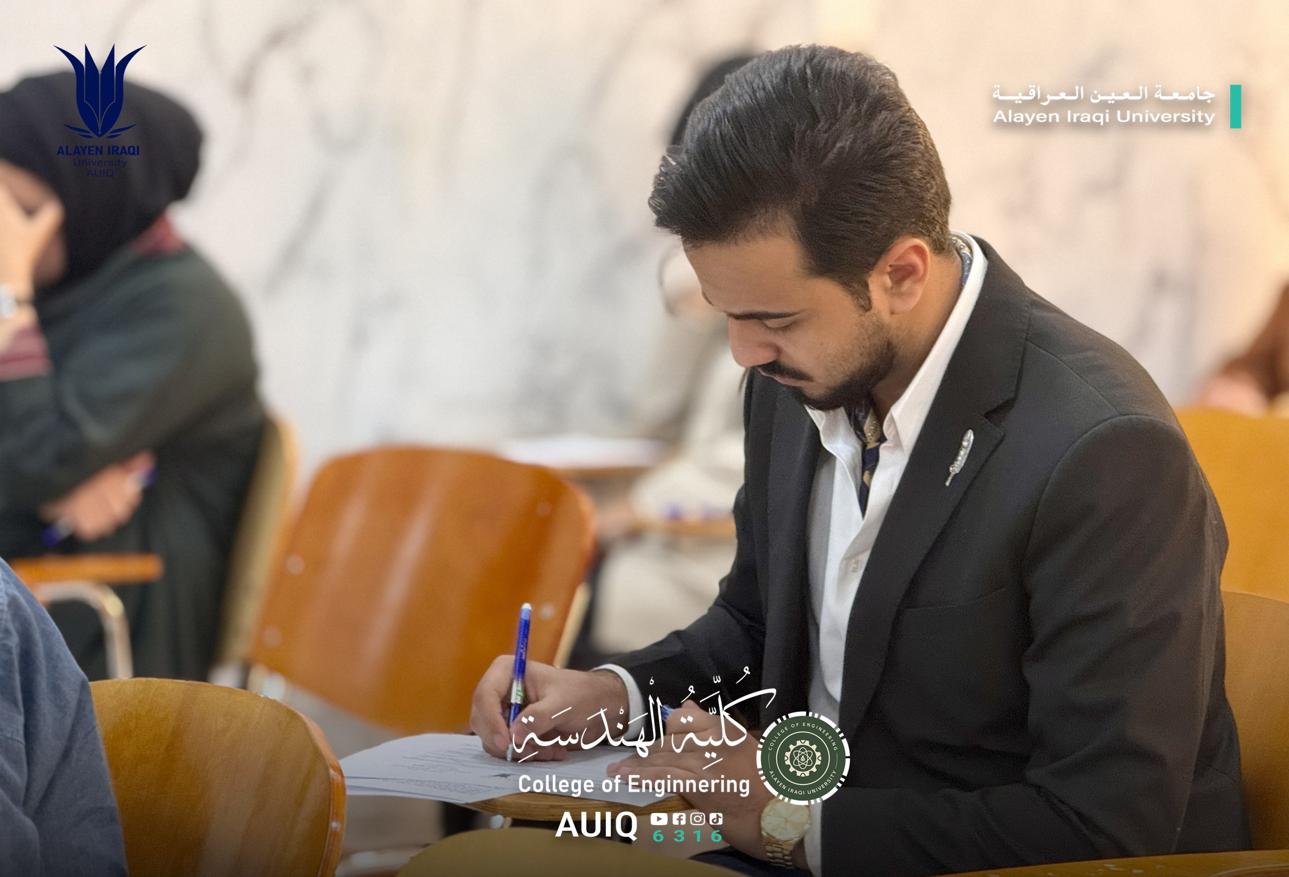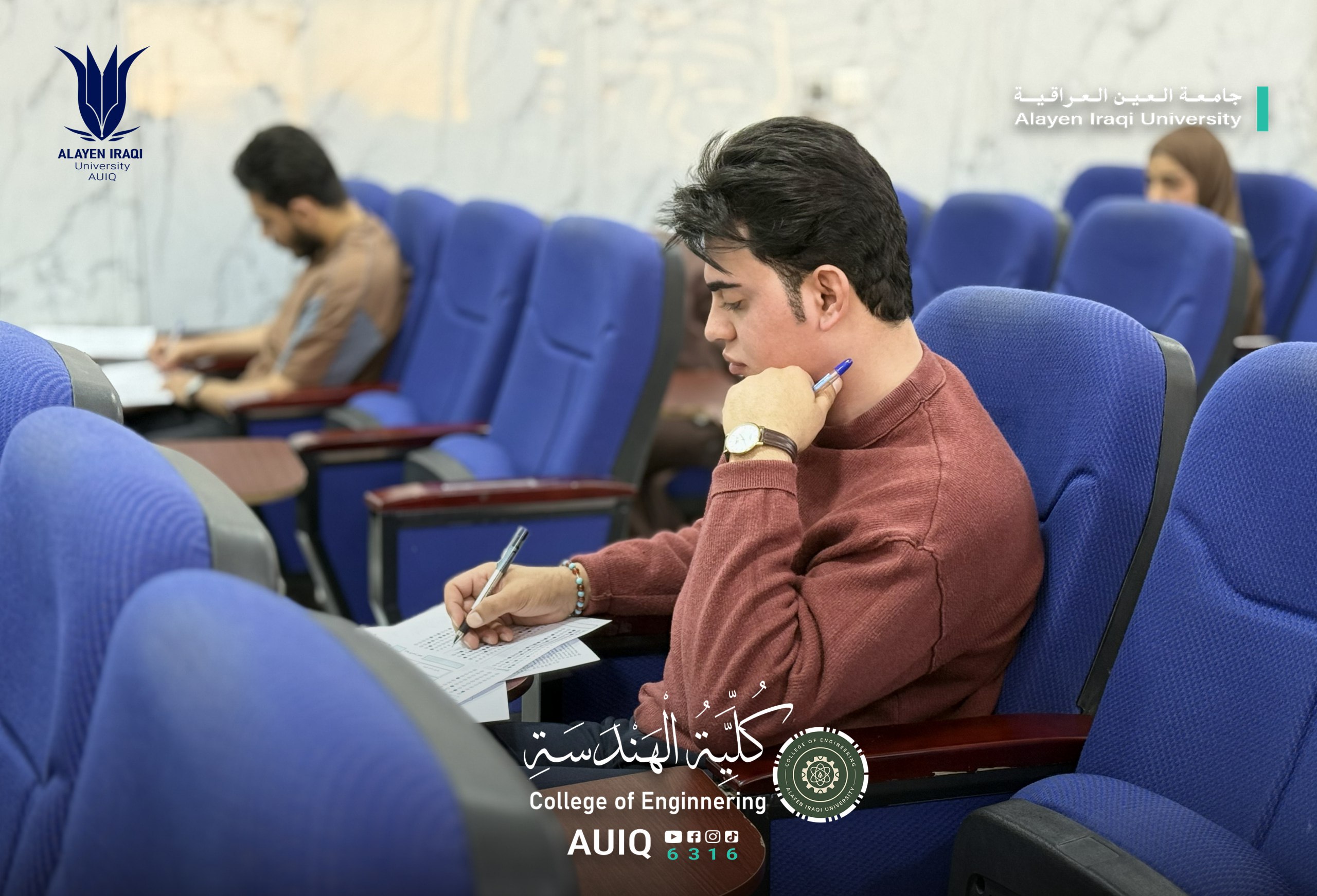 The College of Engineering at Al-Ayen Iraqi University concluded its final examinations for the first semester of the current academic year for first-year students. The examinations proceeded smoothly and according to the published schedules, under the direct supervision of the college deanship and continuous monitoring by the central and branch examination committees in all academic departments.