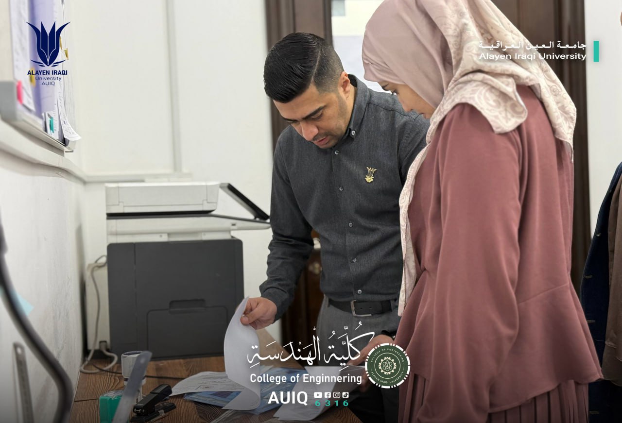The College of Engineering at Al-Ayen Iraqi University continues to monitor the work of the examination committees responsible for finalizing the results of the first semester exams. This is being achieved through intensive efforts by the specialized committees, under the direct supervision of the Deputy Dean for Acedemic Affairs, Asst. Prof. Dr. Sarmad Kadhim Dhiab.