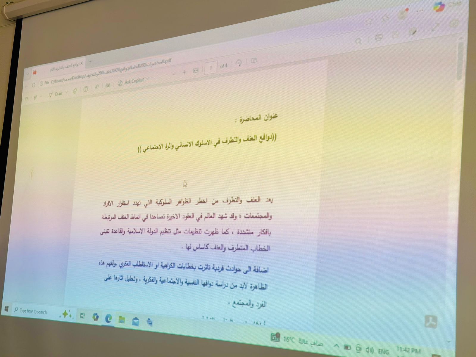 Dr. Shaker Hawla, Head of the Psychological Counseling and Educational Guidance Unit at the College of Pharmacy, delivered the lecture. He addressed the underlying motives for the phenomena of violence and extremism and their associated social, intellectual, and political effects, explaining their negative repercussions on the individual and society.
