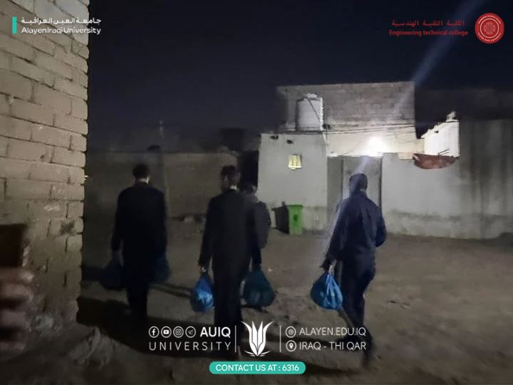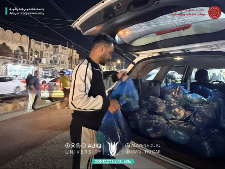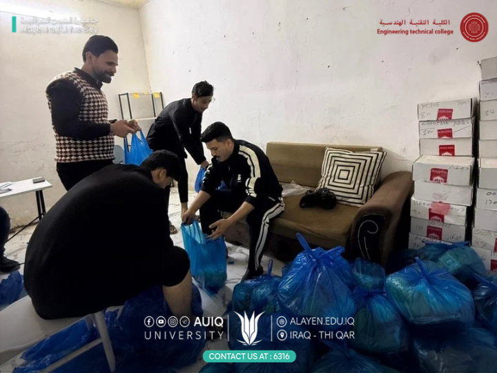 As part of its social responsibility and to promote the values of solidarity and compassion during the holy month of Ramadan, the College of Engineering Technology at Al-Ayen Iraqi University, in cooperation with the Al-Ayen Charitable Foundation, organized a humanitarian initiative to distribute Ramadan food baskets to a number of needy families.