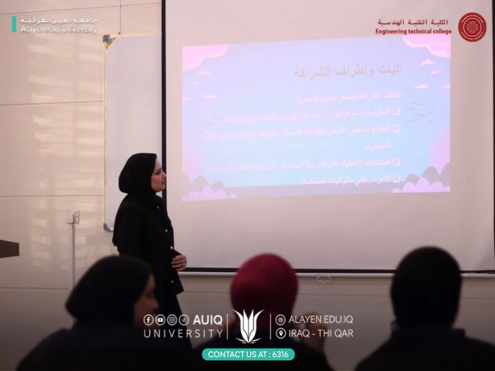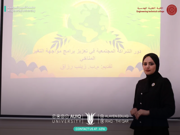 The Women's Affairs Unit at the College of Engineering Technology at Al-Ayen Iraqi University held an awareness workshop entitled “The Role of Community Partnership in Strengthening Climate Change Response Programs.” This workshop was part of ongoing efforts to raise environmental awareness and promote sustainability within the community.
