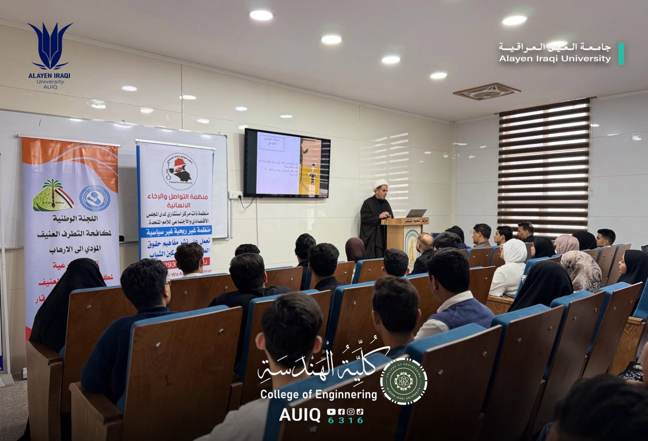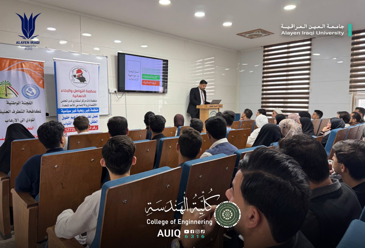 The College of Engineering at Al-Ayen Iraqi University, in cooperation with the Continuing Education Center, organized an awareness workshop entitled "Rumors and Fake News: Fueling Hate Speech and Violent Extremism." This workshop was part of the college's efforts to raise community awareness, promote a culture of moderation, and combating extremist ideologies.