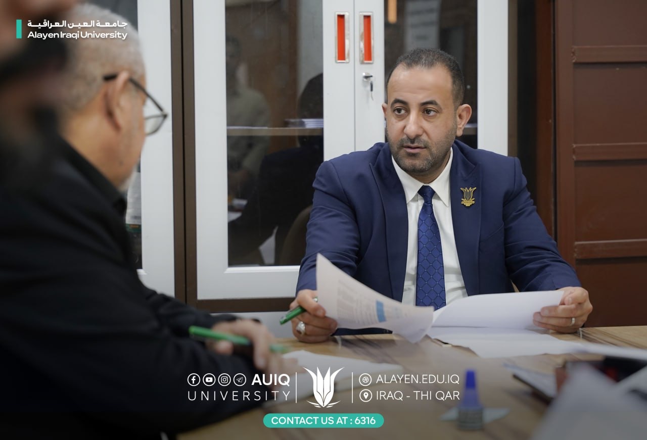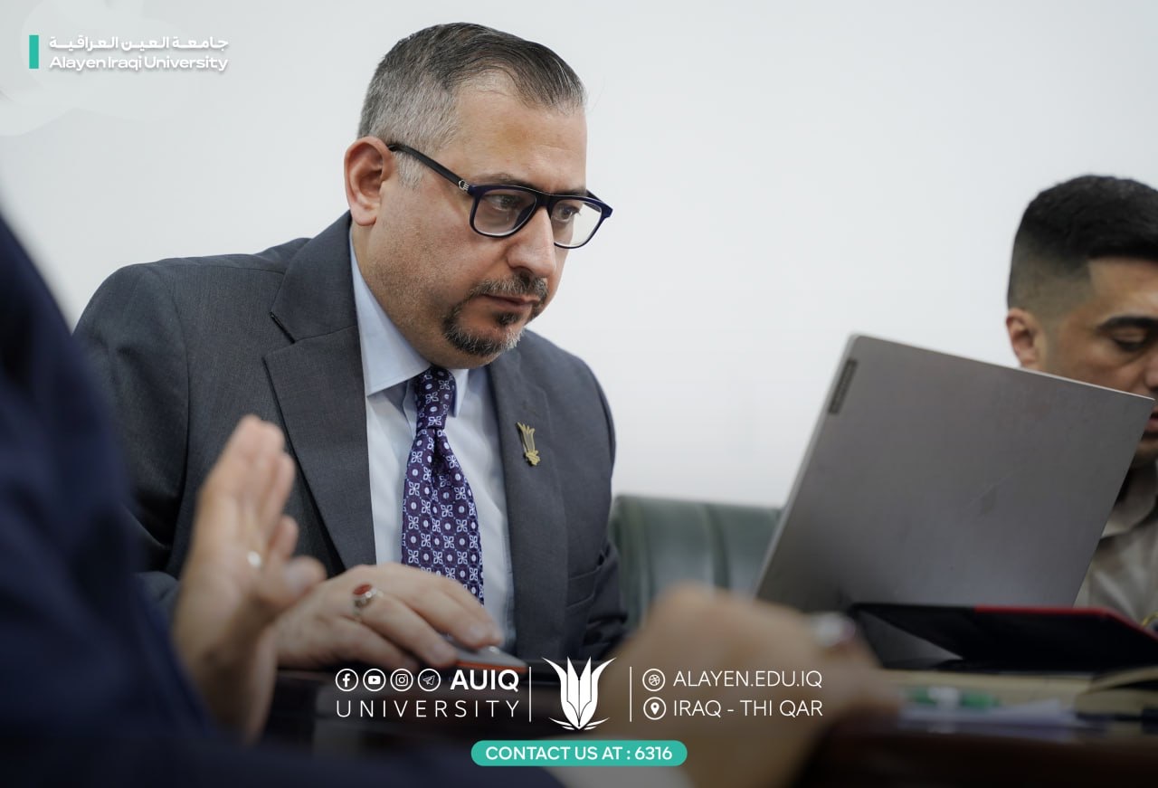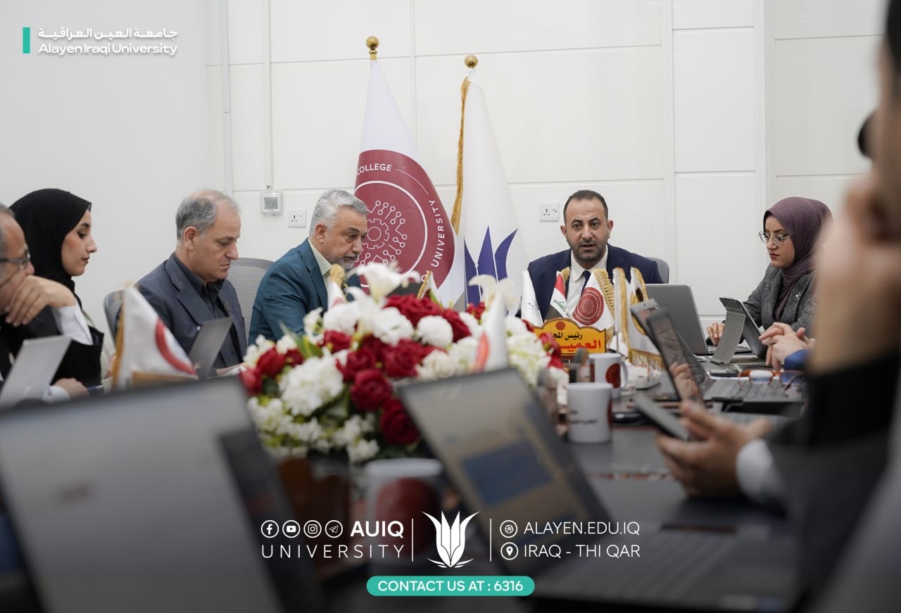 On Saturday, March 14, 2026, the Deputy. Chancellor of the University for Acedemic Affairs, Prof. Dr. Naseer Ali Hussein held a meeting with representatives from the university's colleges to follow up on the completion of the requirements for the Ministry's IQ Learn faculty portal system.