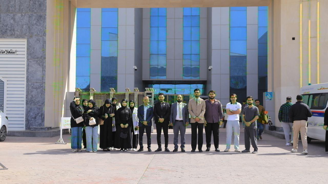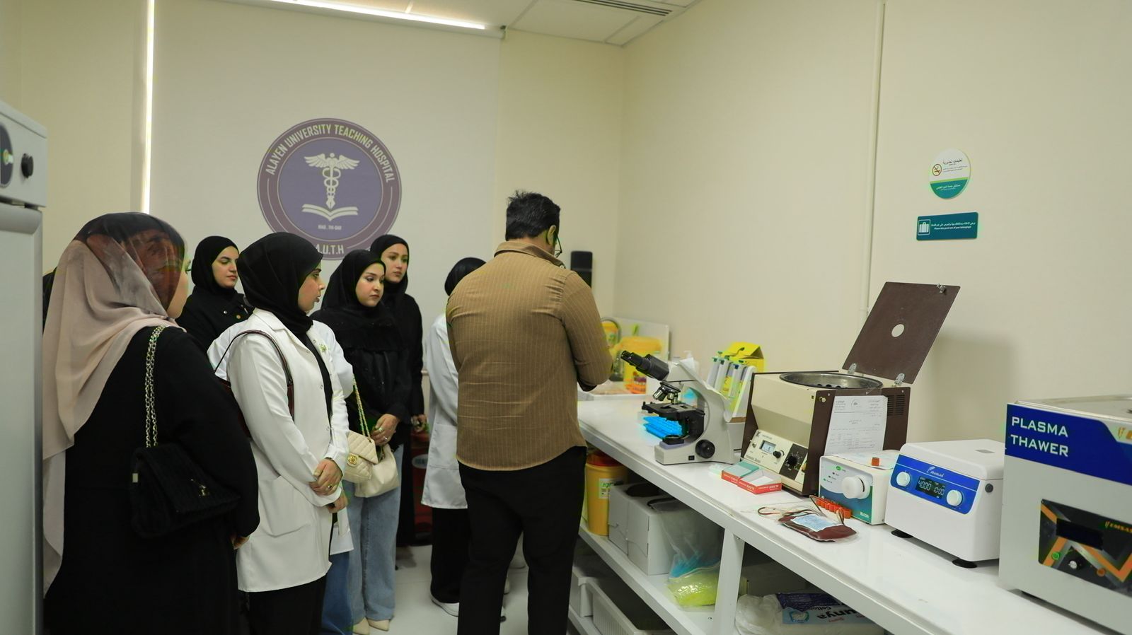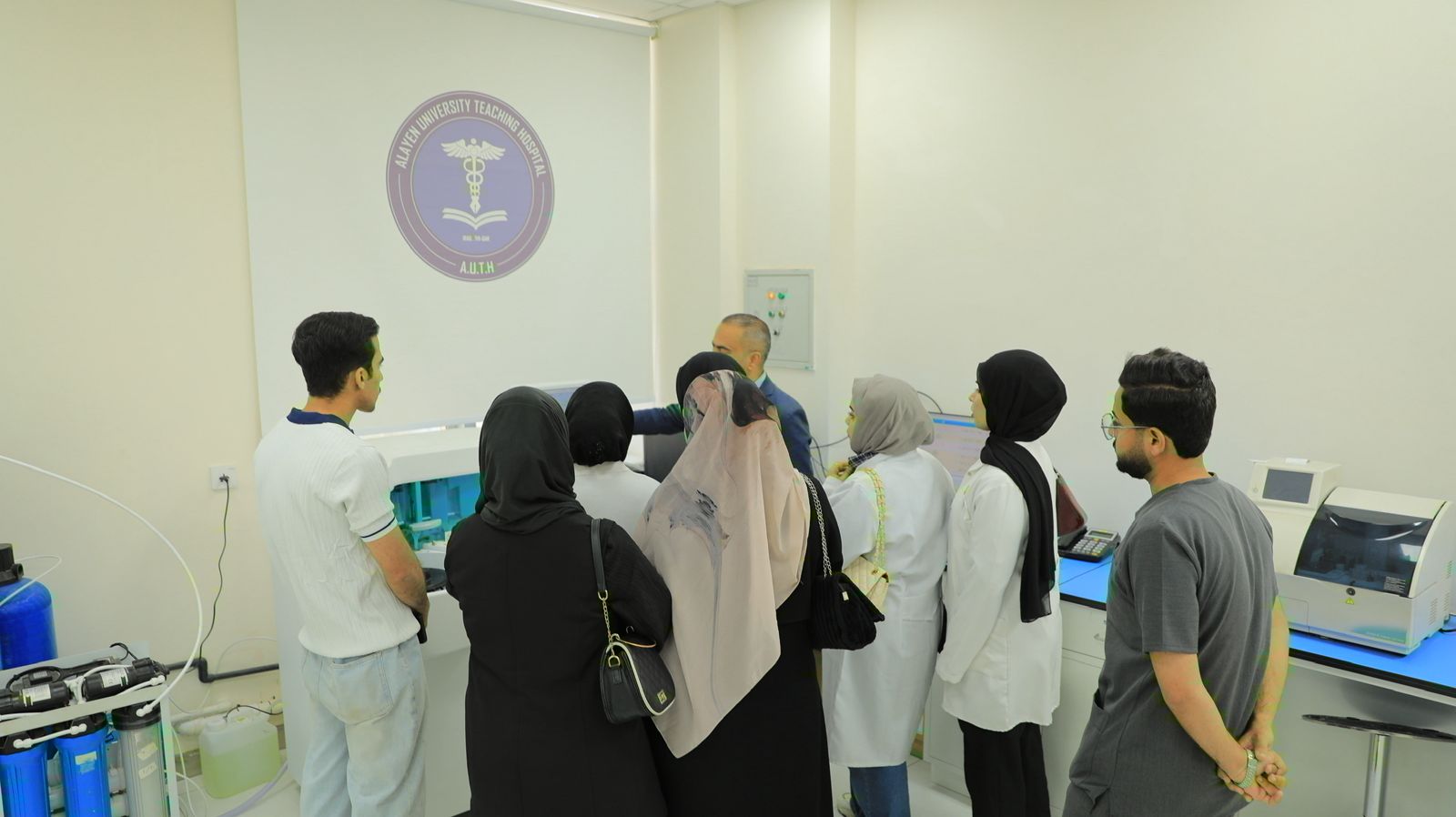 The Student Activities Unit at the College of Health and Medical Technologies, Al-Ayen Iraqi University, organized a field trip for elite group of third-year students from the Medical Laboratory Technologies Department to Al-Ayen Teaching Hospital. The aim was to familiarize them with the latest laboratory technologies and operational procedures within advanced healthcare institutions, thereby enhancing their practical skills and bridging the gap between academic theory and real-world practice.