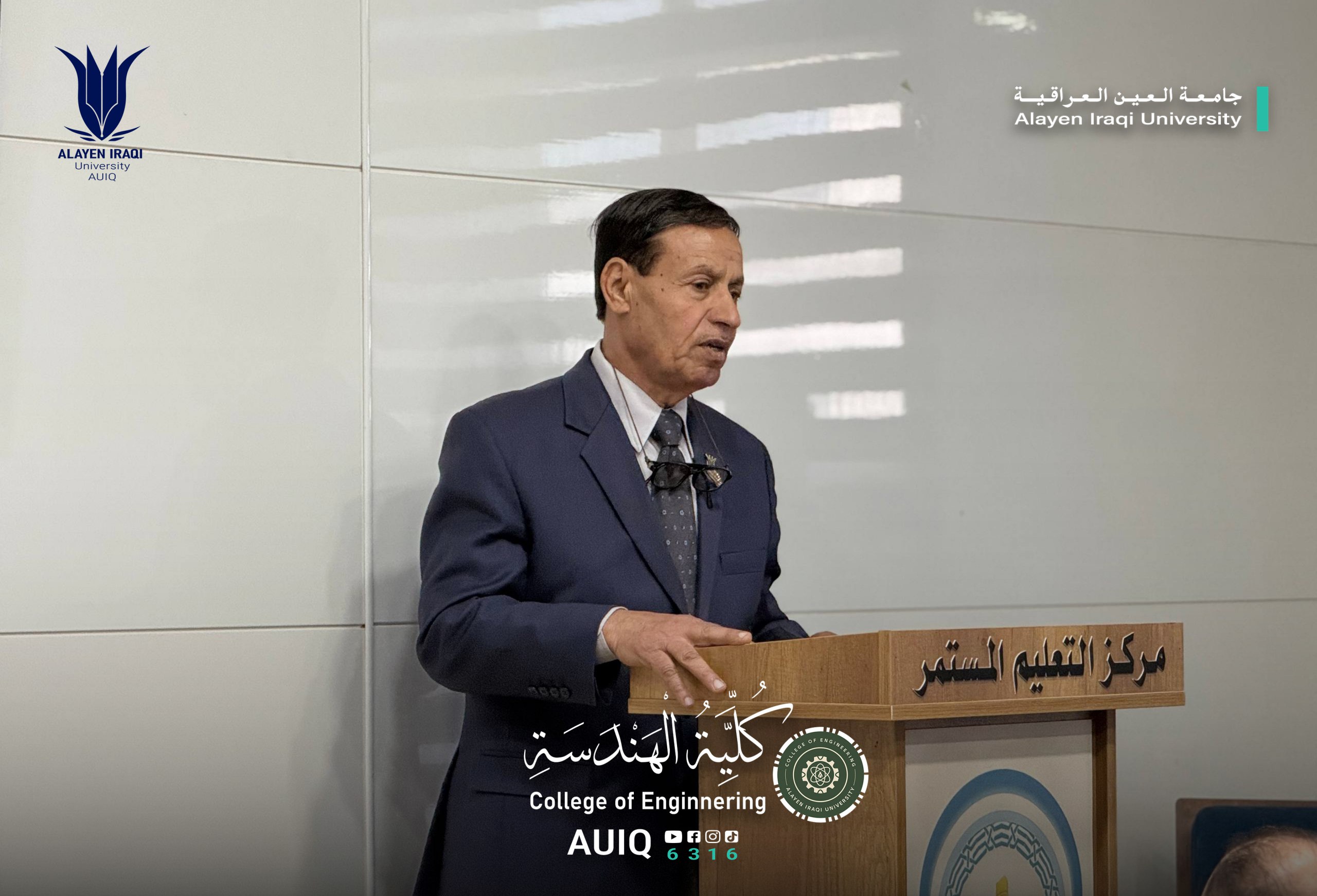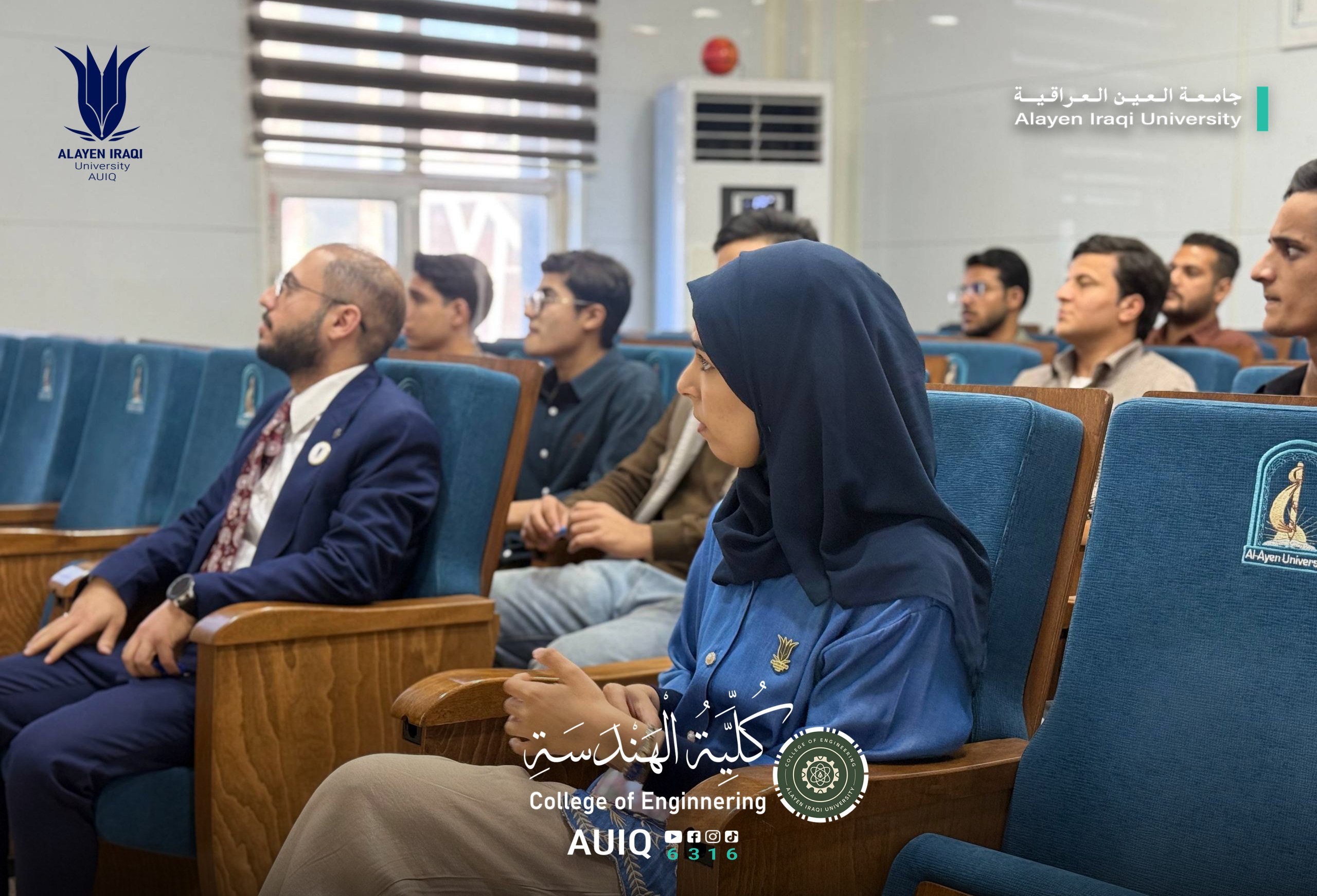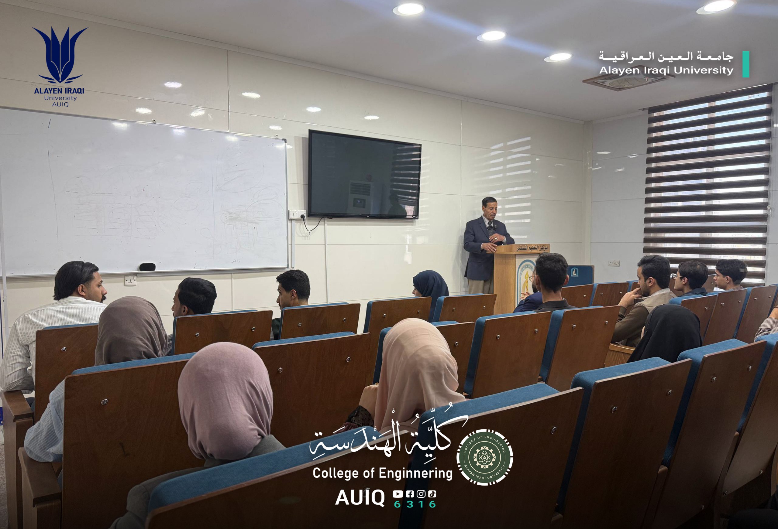 The College of Engineering at Al-Ayen Iraqi University, in cooperation with the Civil Defense Division, organized a training workshop entitled "Occupational Safety and Emergency Procedures on Campus," presented by Mr. Shaker Hadi Thamer. This initiative is part of the college's efforts to promote a culture of safety and preventative awareness among students and staff.