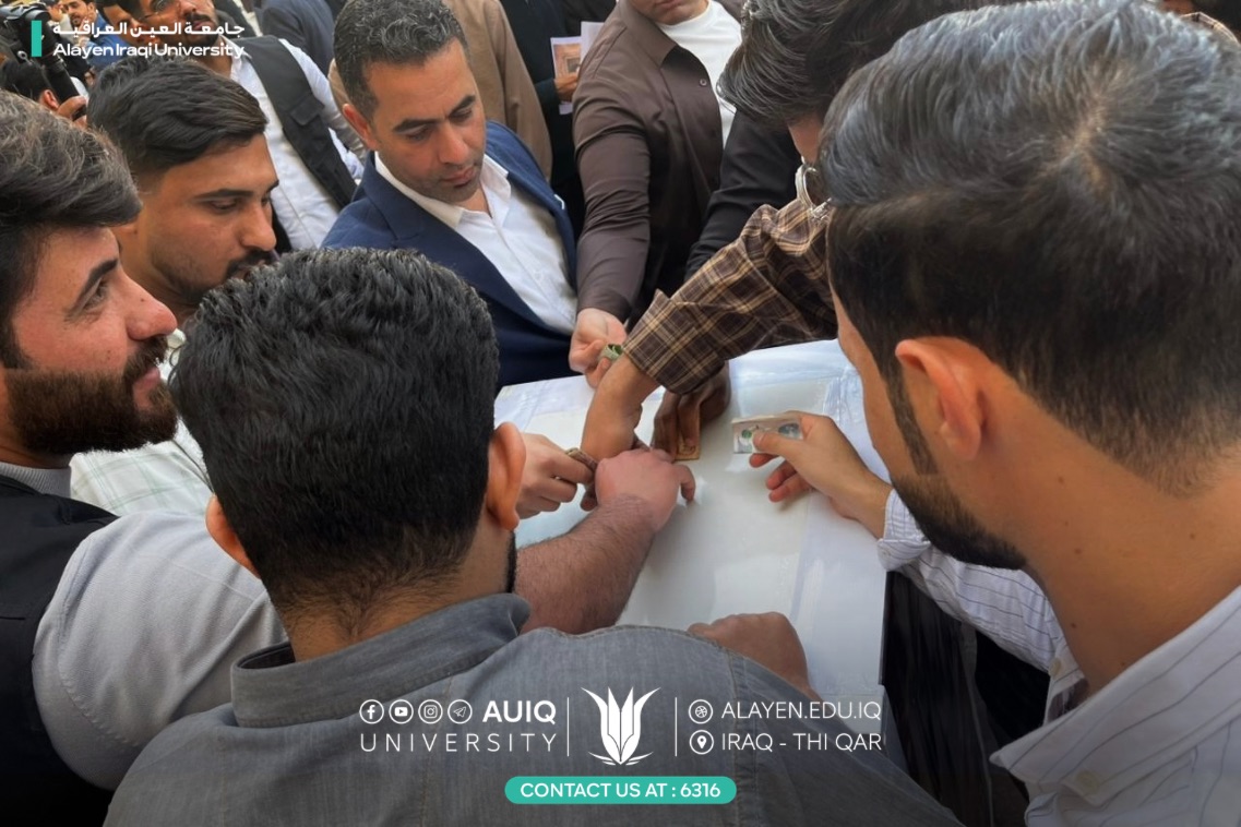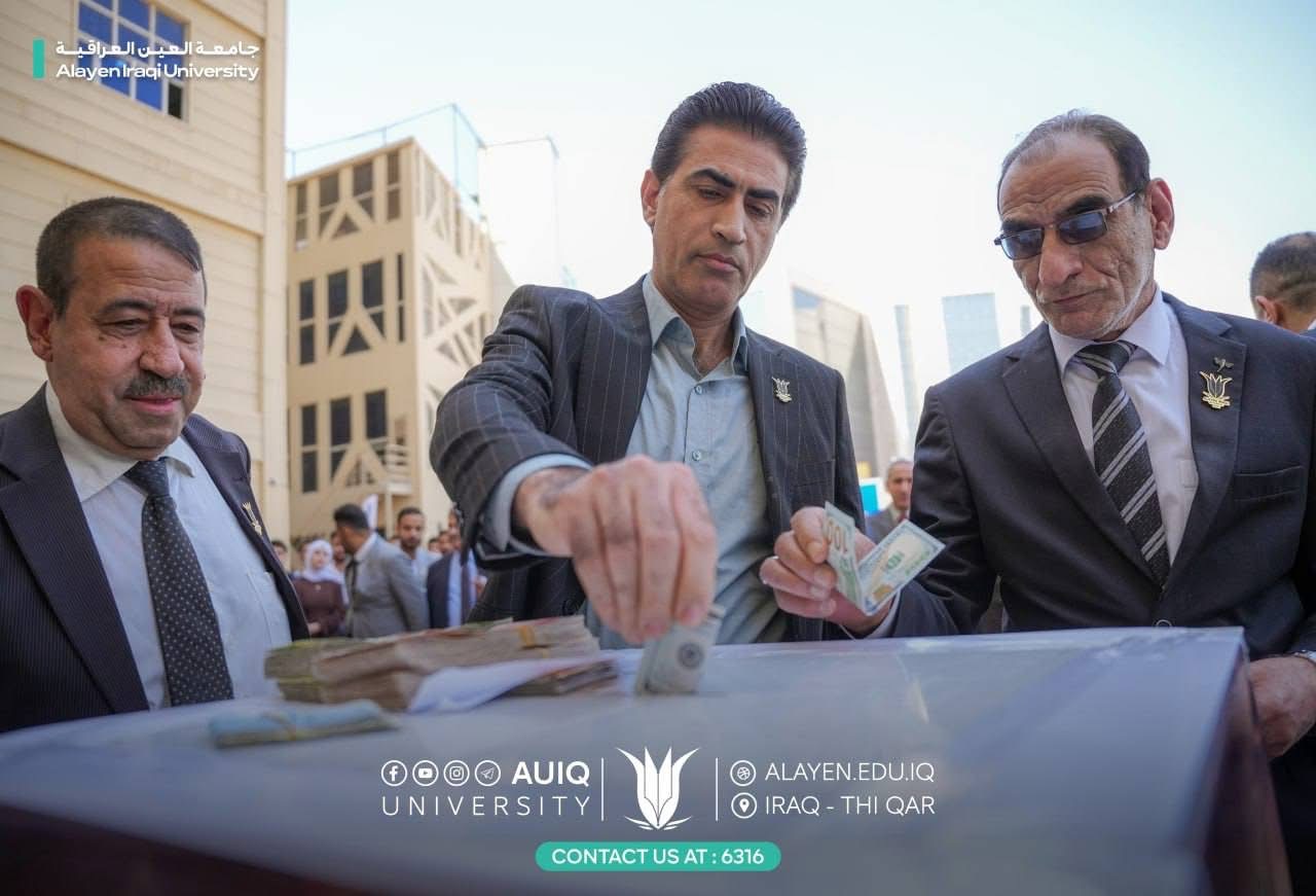 The College of Engineering Technology participated in the humanitarian campaign launched by Al-Ayen Iraqi University to support the Lebanese and Iranian people, in response to the call of the Supreme Religious Authority in Holy Najaf, under the auspices of the University Chancellor, Prof. Dr. Haider A. Marhoon, and in the presence of the deans of the colleges.