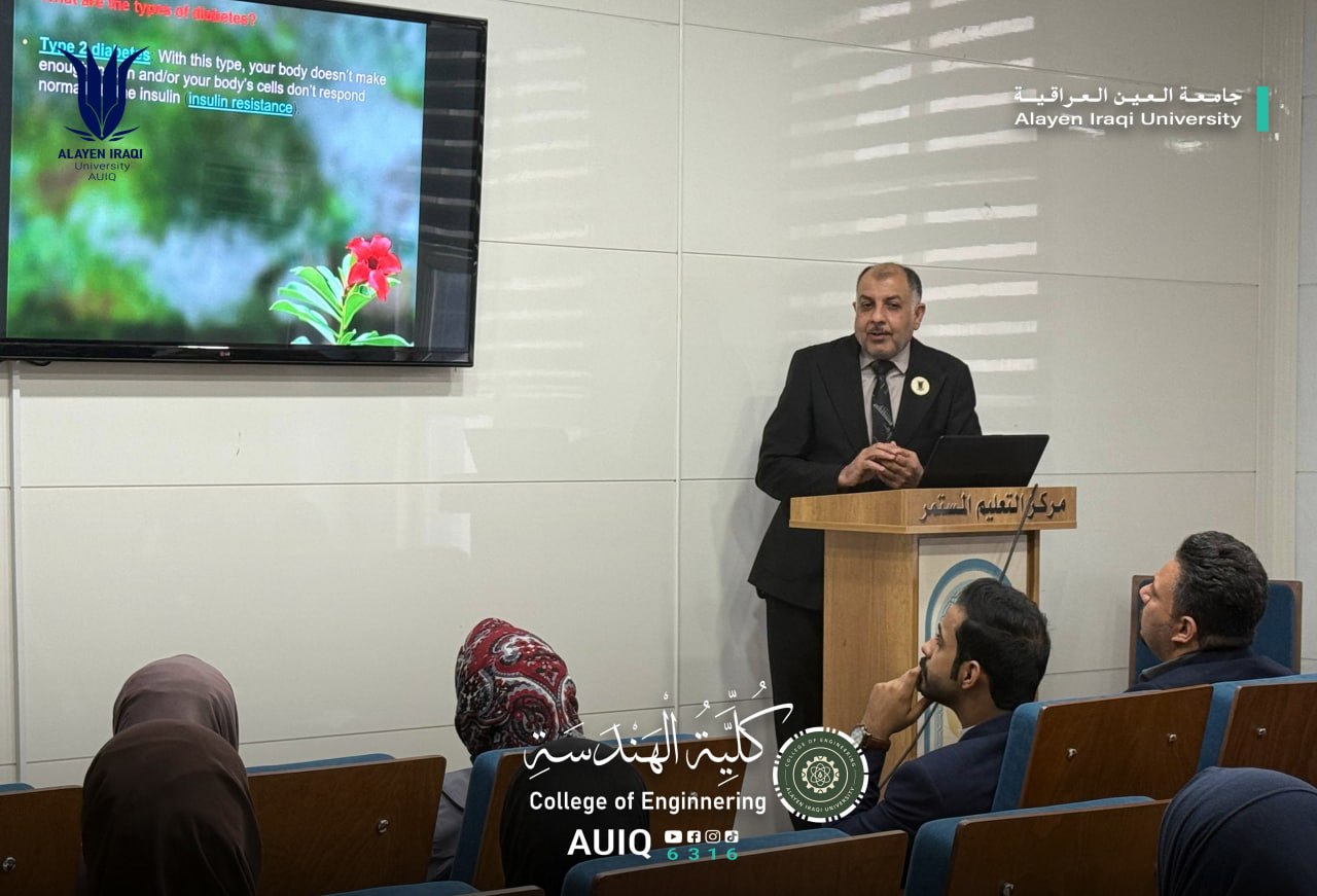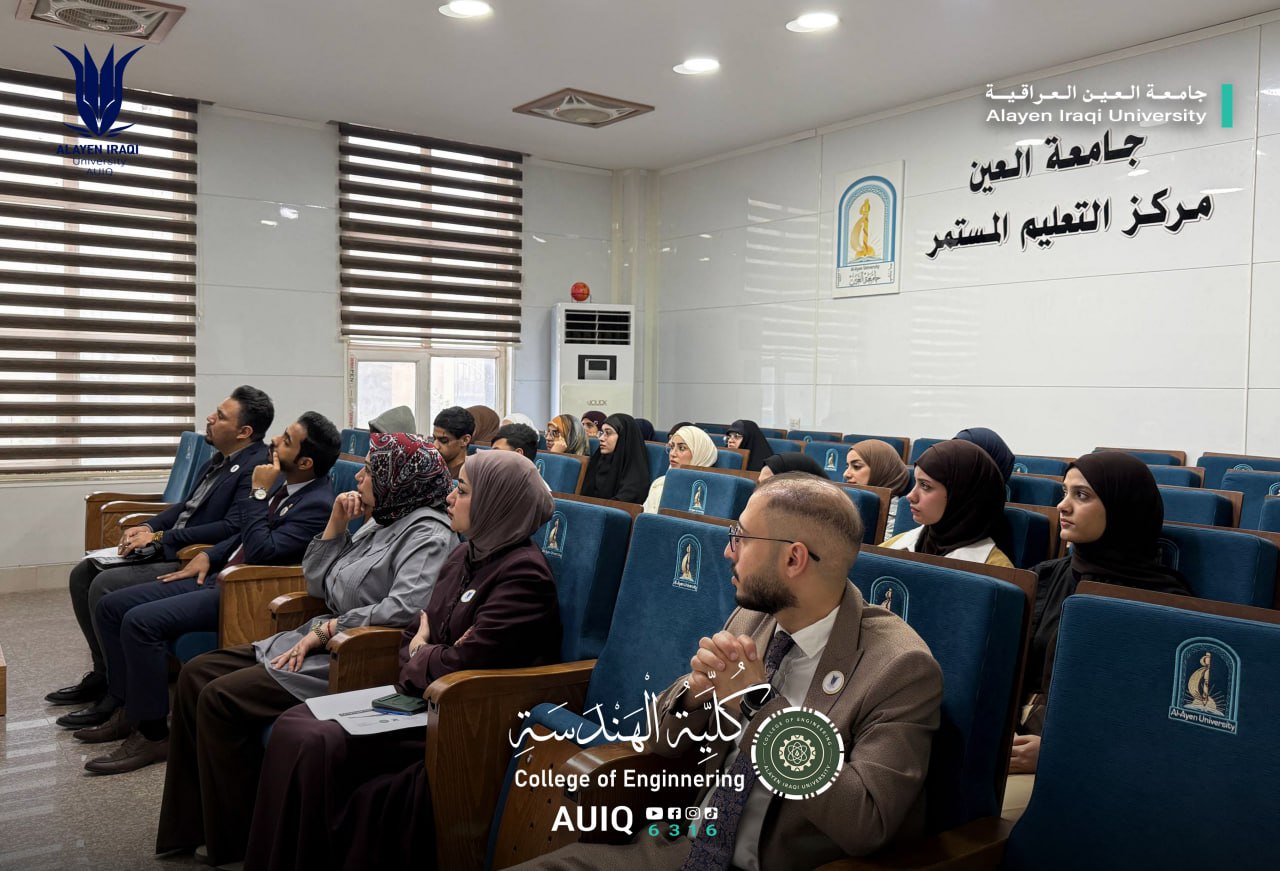 This workshop is part of a series of scientific activities that the College of Engineering at Al-Ayen Iraqi University is keen to organize continuously, with the aim of supporting the educational and research process, and enhancing students’ awareness of various health and scientific issues, in order to contribute to preparing staff capable of serving the community and keeping pace with the requirements of sustainable development.