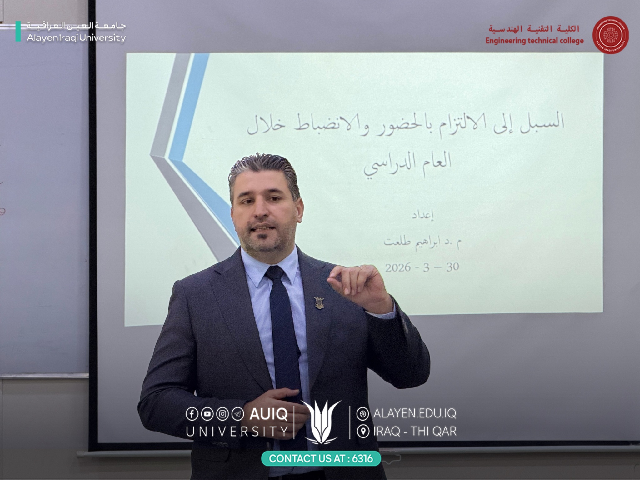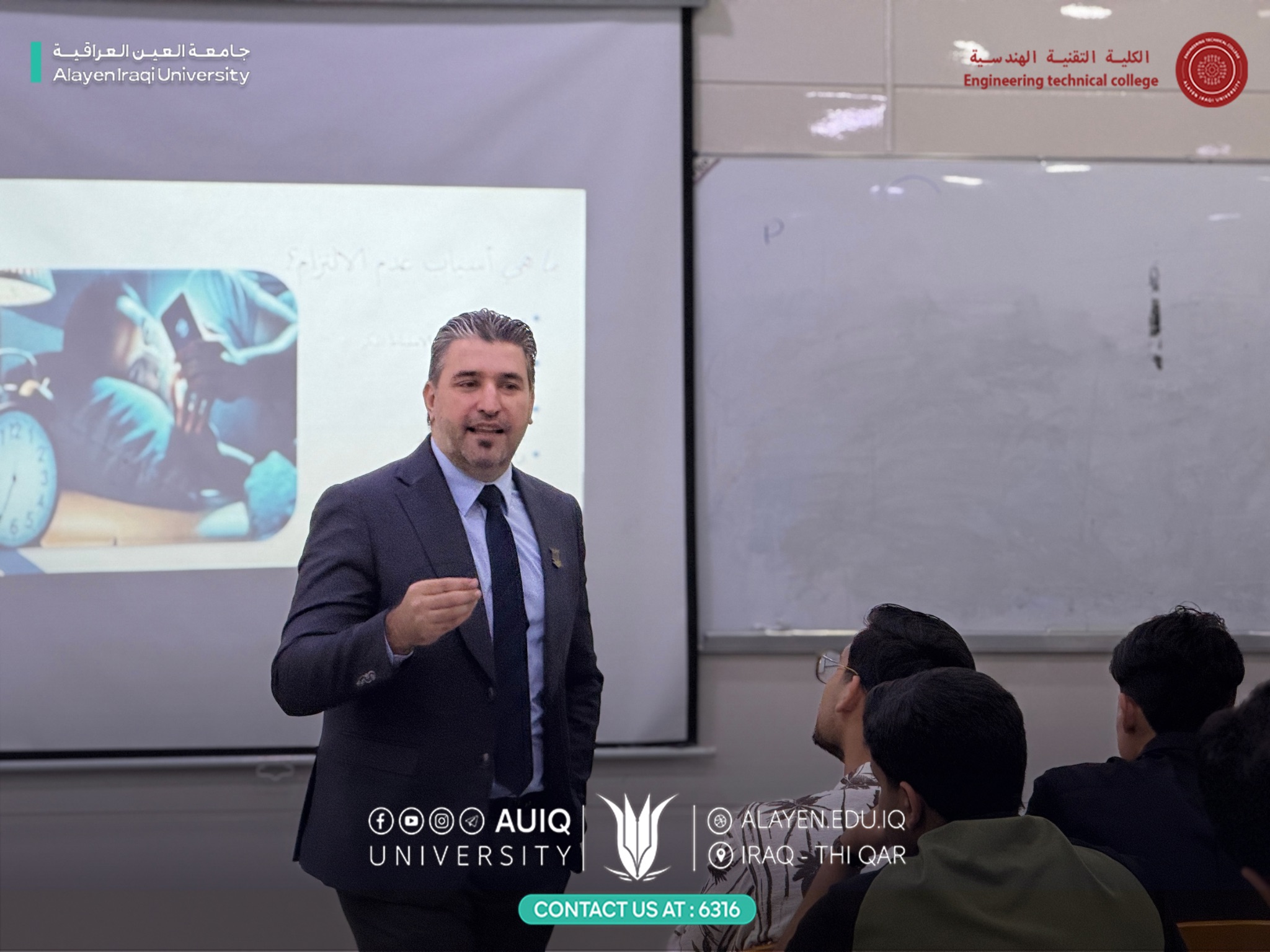 The College of Engineering Technology held a workshop titled “Ways to Achieve Attendance and Discipline During the Academic Year,” presented by Dr. Ibrahim Talaat, Head of the Cybersecurity Engineering Department.