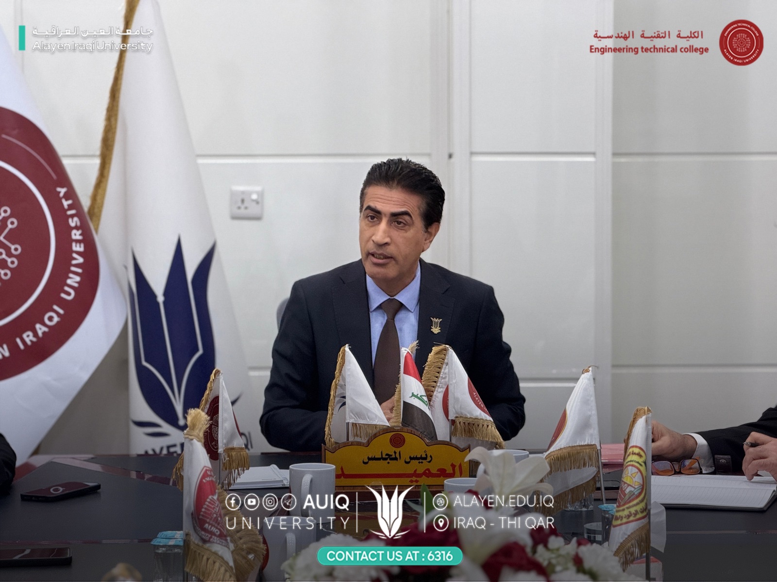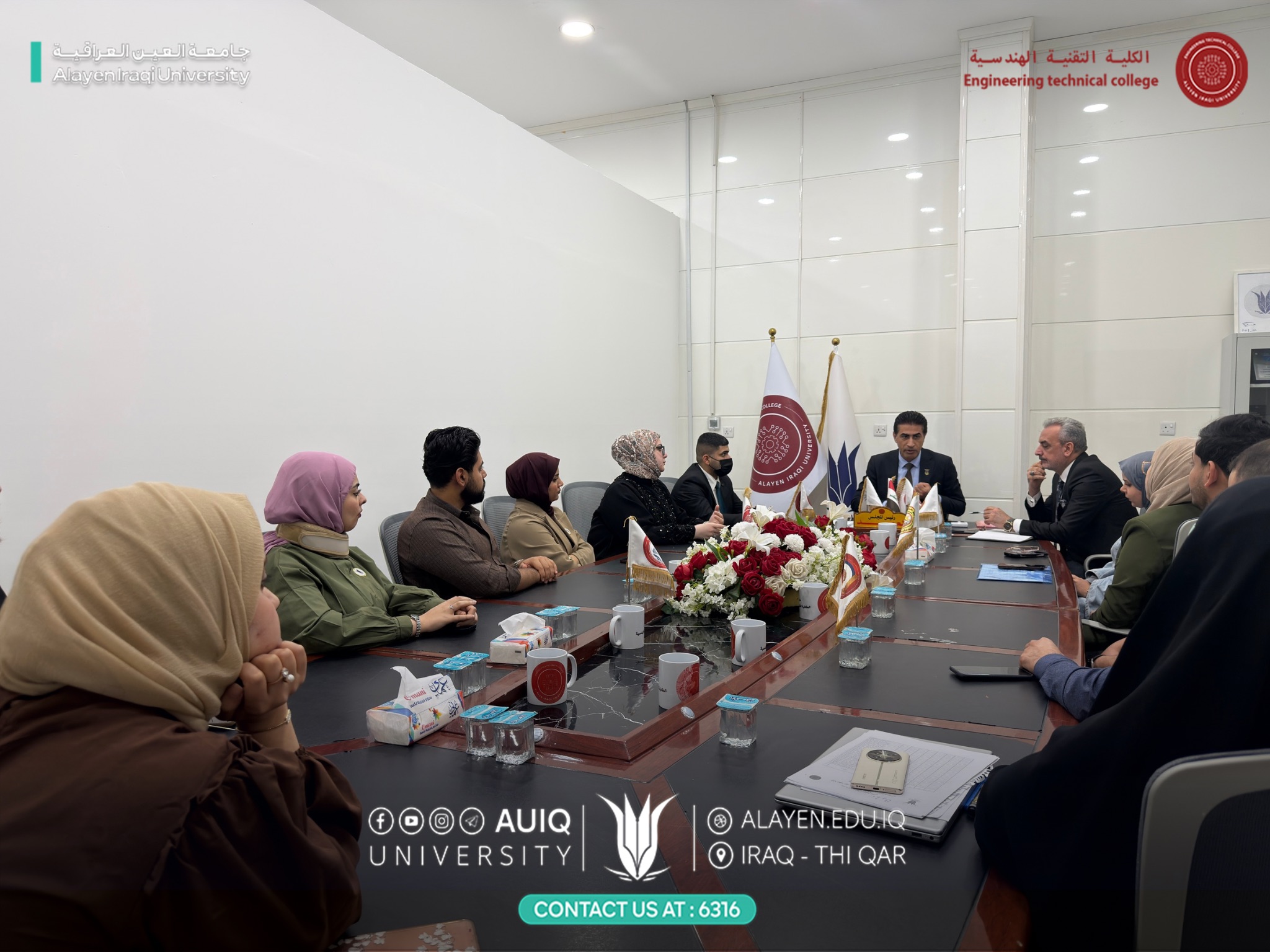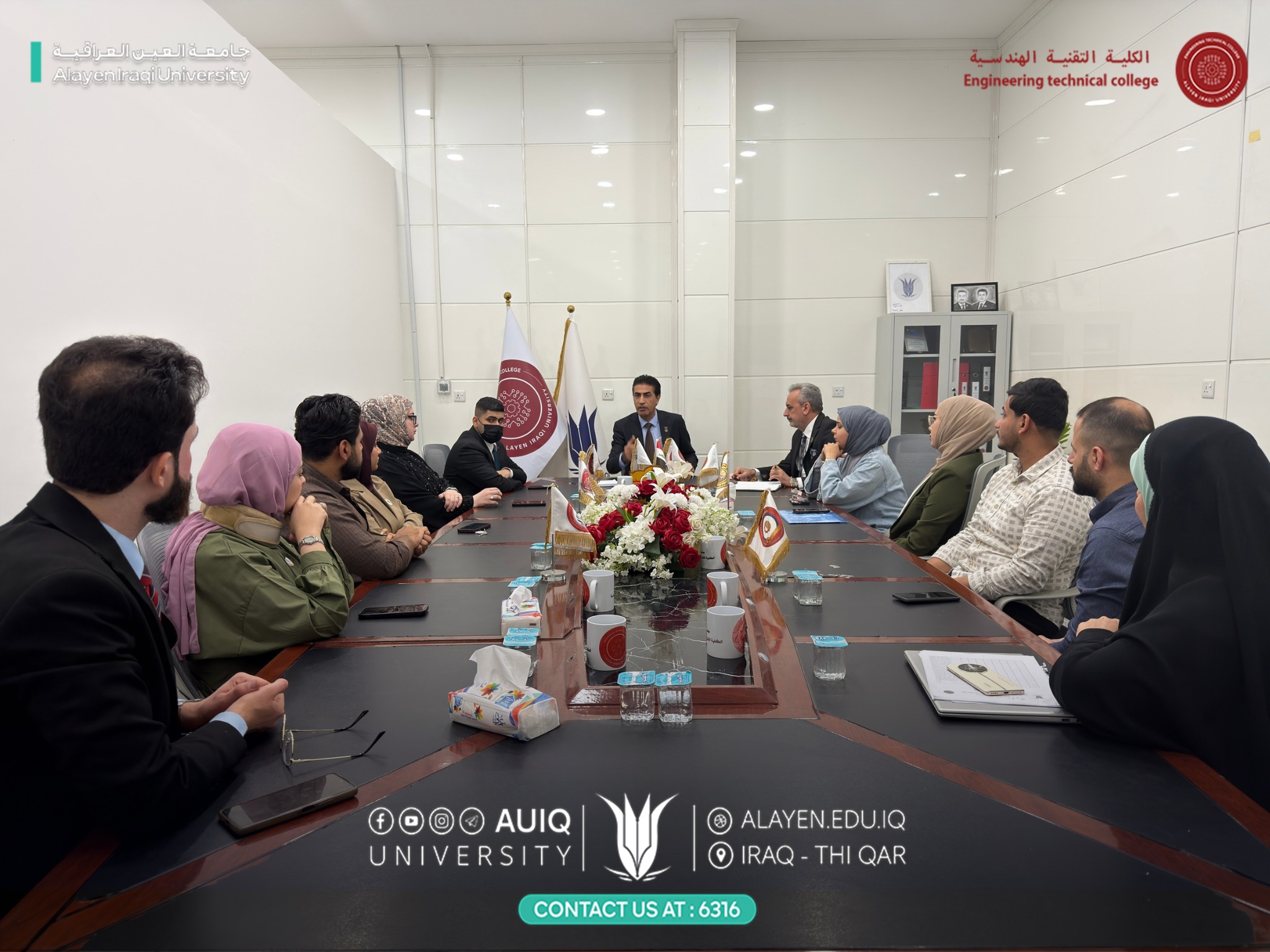 The Dean of the College of Engineering Technology at Al-Ayen Iraqi University, Dr. Rafid S. Aboud held a meeting with the program accreditation support committees to follow up on the latest developments in the program accreditation process for the Computer Engineering Technology and Medical Devices Engineering Technology departments.