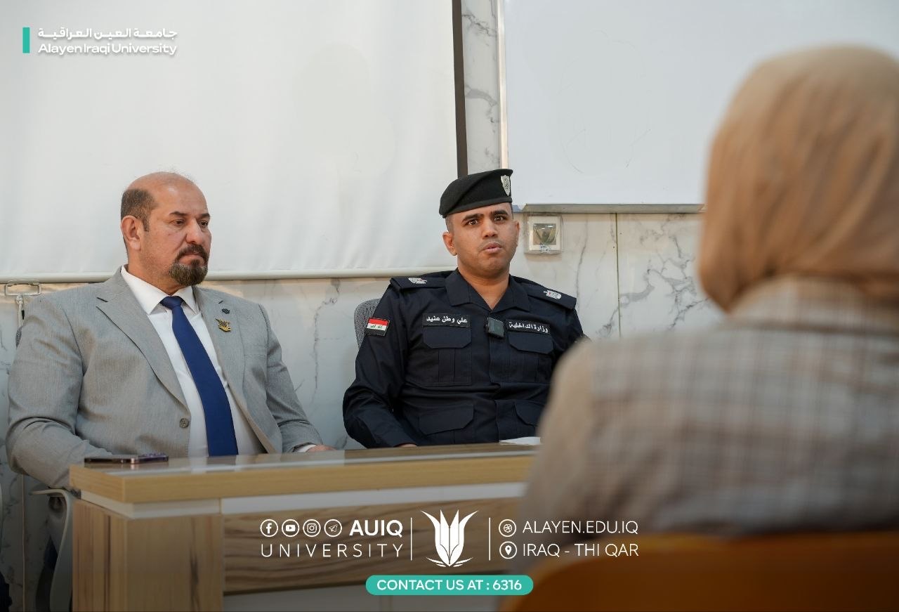 The workshop, presented by Major Ali Watan Aneid and Dr. Mohammed Kadhim Al-Mayahi was attended by an elite group of faculty members and students. Its topics addressed the legal, humanitarian, and security dimensions of the phenomenon of illegal immigration and its negative repercussions on individuals and society.