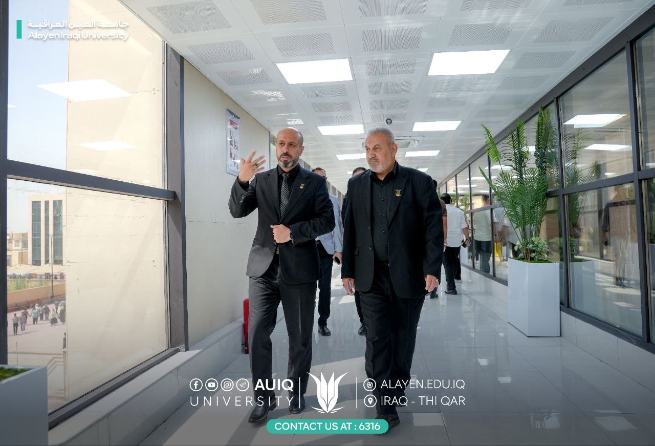 On Monday, April 6, 2026, Prof. Dr. Haider A. Marhoon, Chancellor of Al-Ayen Iraqi University, conducted a comprehensive field tour of the university campus. During the tour, he reviewed the student and service conditions, reflecting the senior administration's commitment to monitoring daily details.