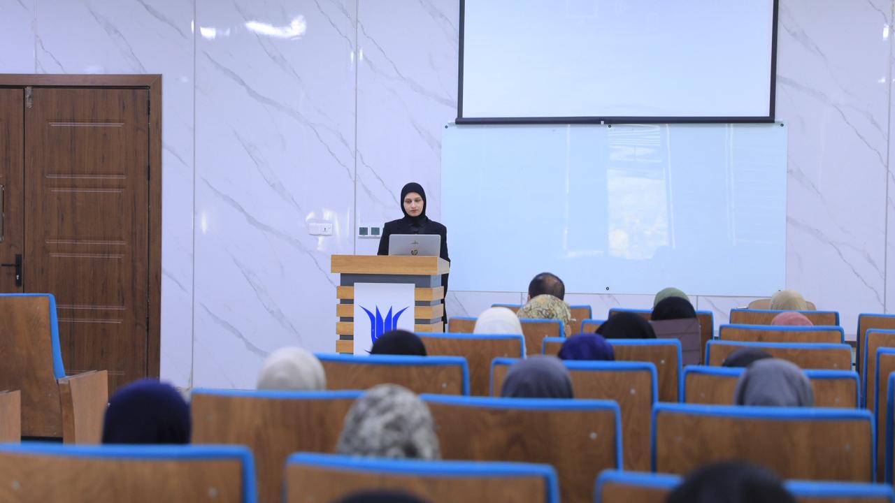 The University Psychological Counseling Unit at the College of Health and Medical Technologies held an awareness workshop entitled "Honoring Parents: Peace of Mind and Spiritual Contentment." The workshop was presented by Asst. Lecturer Rasha Talal from the Optometry Technology Department, as part of the unit's ongoing activities aimed at promoting noble human and spiritual values among students and staff alike. This initiative stems from the unit's belief in the necessity of simultaneously developing students' skills and moral character.