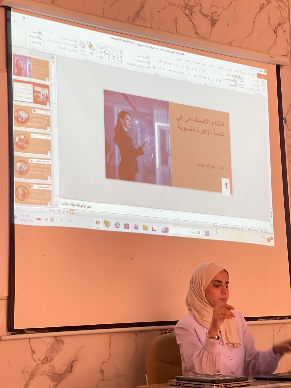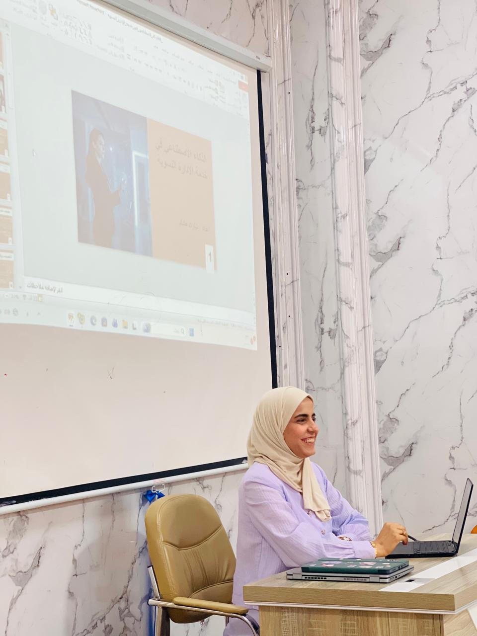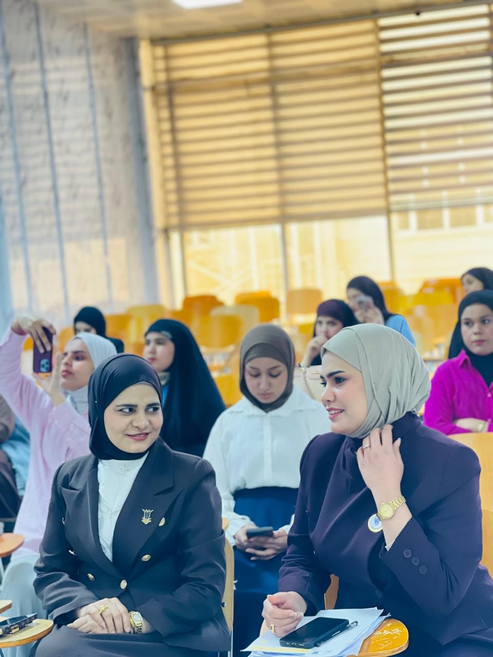 The Women's Affairs Unit at the College of Education, Al-Ayen Iraqi University, organized a scientific seminar on Sunday, April 12, 2026, entitled "Artificial Intelligence in the Service of Women's Management." The seminar was presented by Ms. Tabarak Hisham Awda and attended by a number of faculty members and female students.