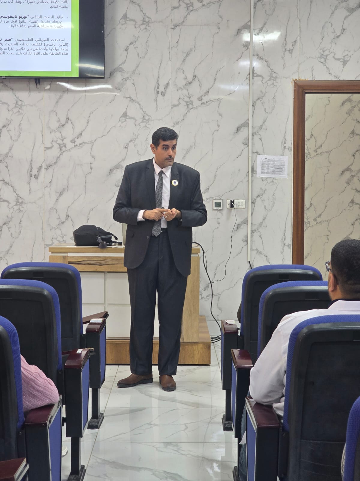 During the workshop, the lecturer addressed the scientific foundations of nanotechnology, explaining how materials are manipulated at the atomic and molecular levels. He also presented real-world examples of applications of this technology that have contributed to the development of numerous products and improved their efficiency. The workshop witnessed significant interaction from the students and faculty members in attendance, with numerous questions and discussions that enriched the topic.