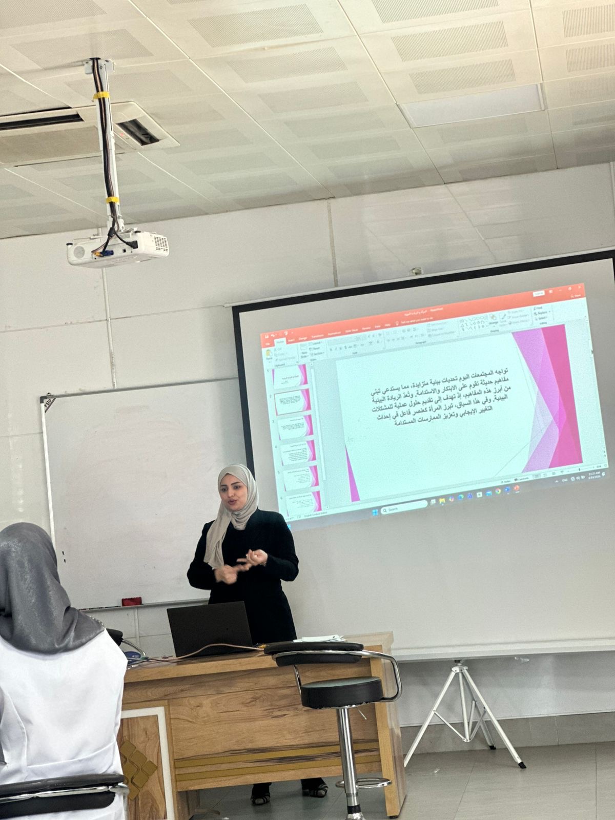 The workshop was presented by Ms. Maysam Waleed, who addressed key topics concerning the application of environmental quality standards and their impact on building a conscious and sustainable society.