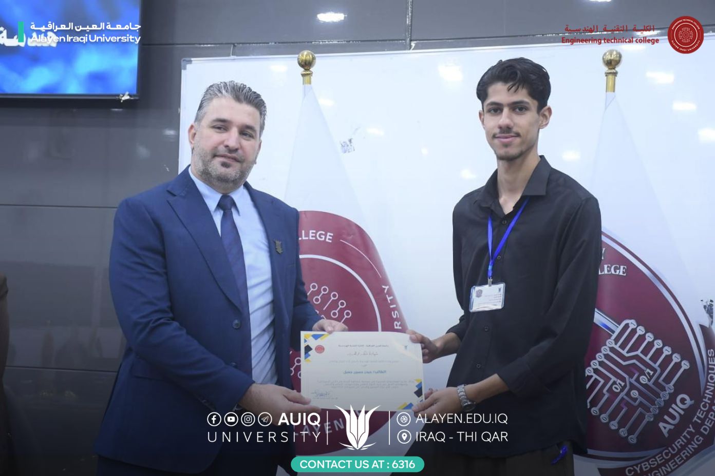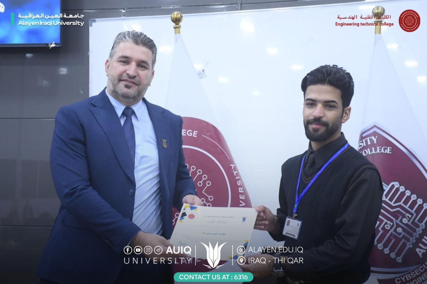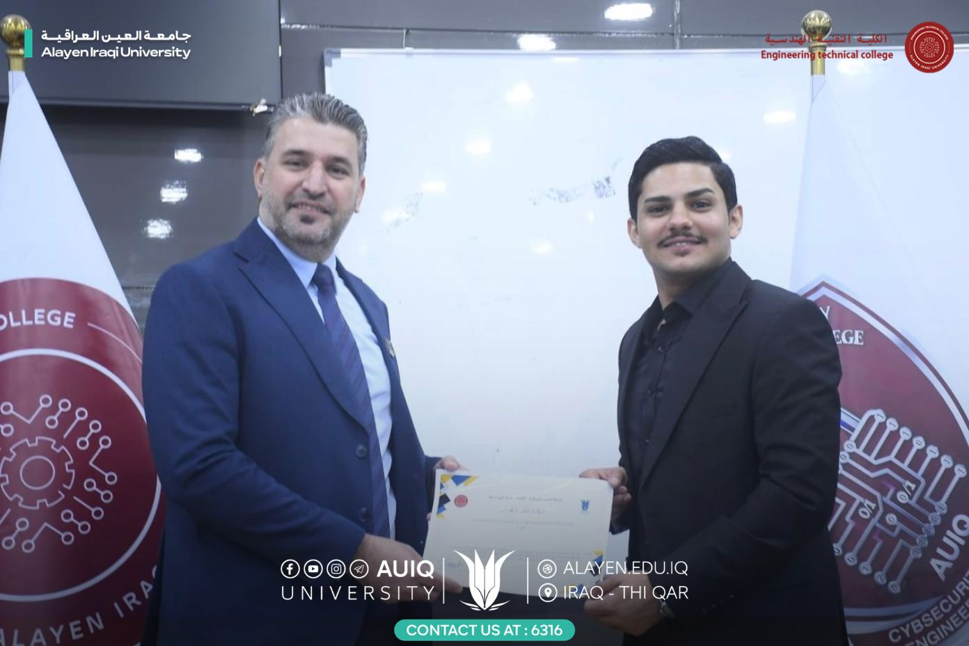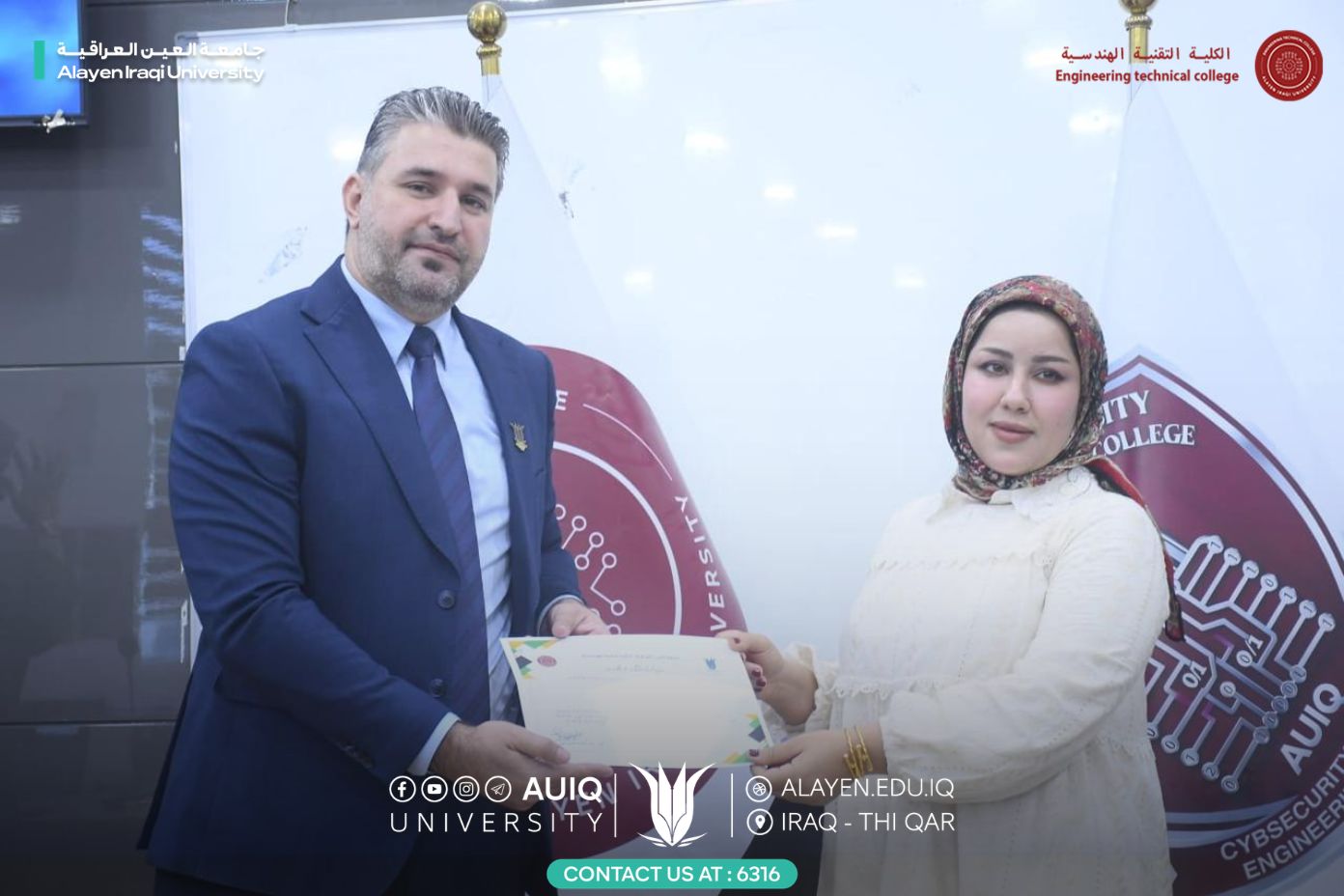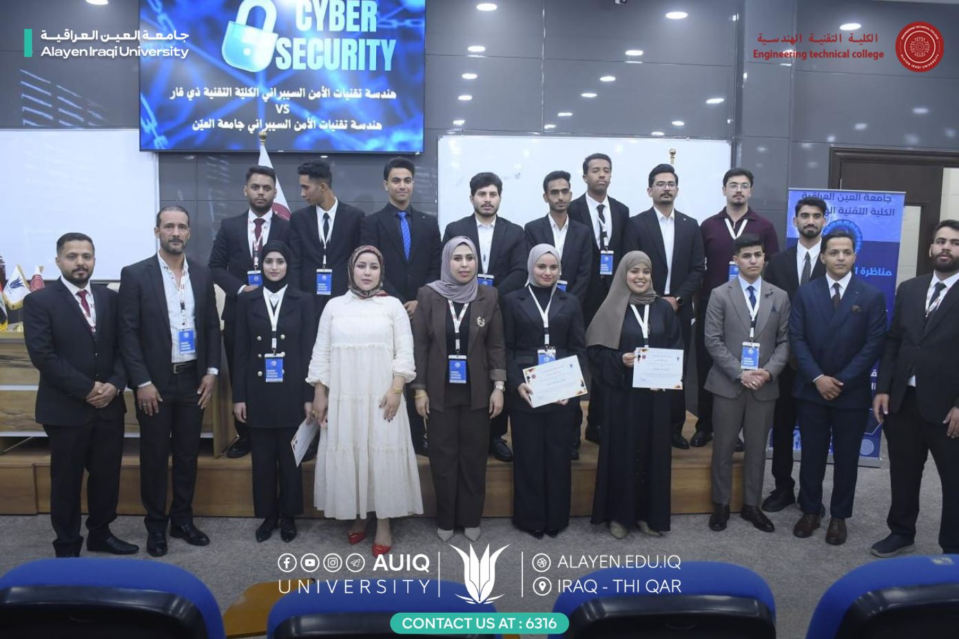 Under the sponsorship of the College of Engineering Technology Deanship at Al-Ayen Iraqi University, the Cybersecurity Engineering Department, in cooperation with the Dhi Qar Technical College/Cybersecurity Engineering Department, organized a scientific debate entitled “Elite Cybersecurity Debate,” with distinguished academic attendance and supervision.