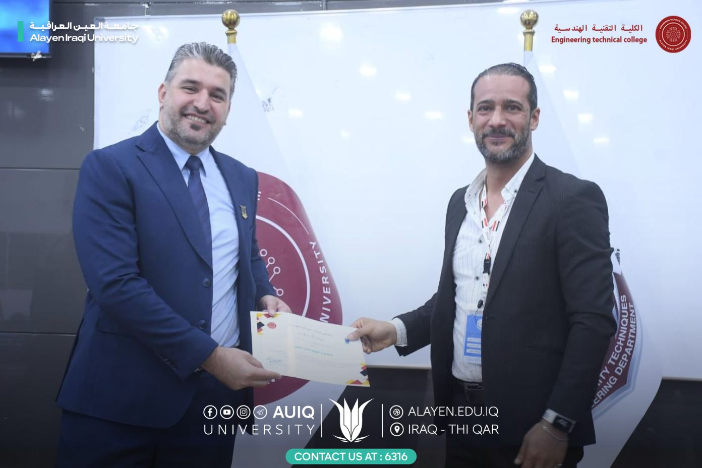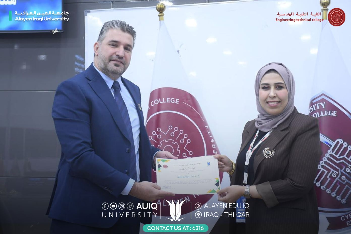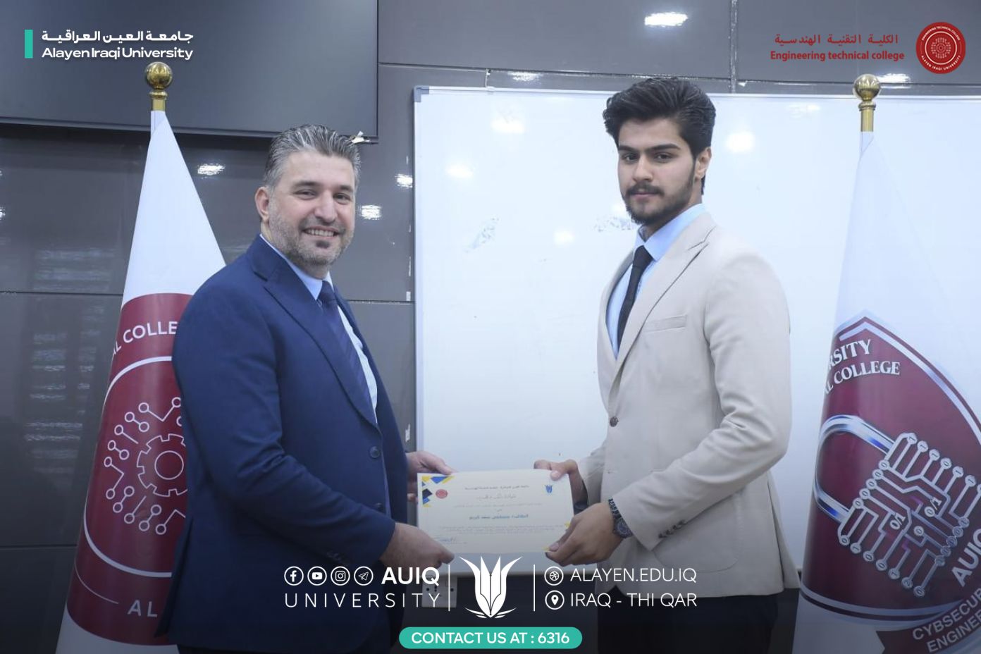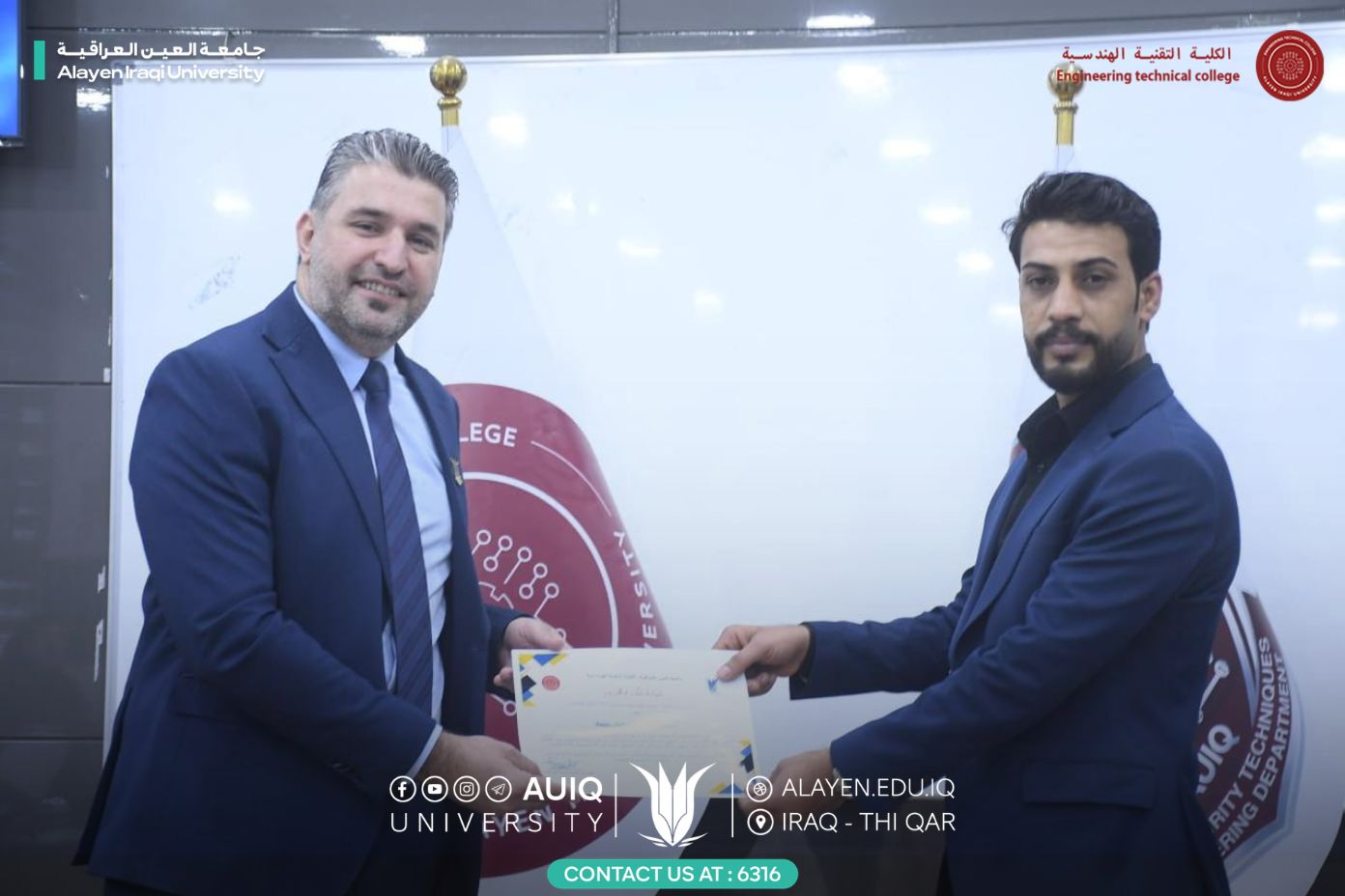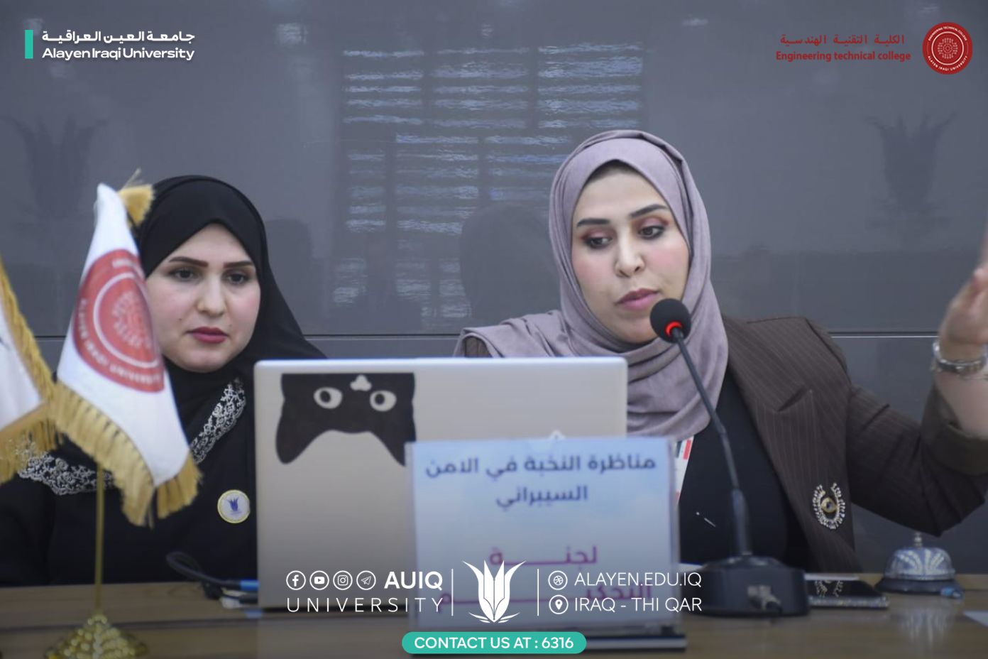 Under the sponsorship of the College of Engineering Technology Deanship at Al-Ayen Iraqi University, the Cybersecurity Engineering Department, in cooperation with the Dhi Qar Technical College/Cybersecurity Engineering Department, organized a scientific debate entitled “Elite Cybersecurity Debate,” with distinguished academic attendance and supervision.