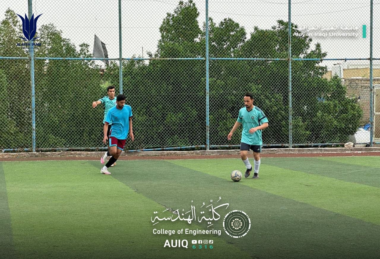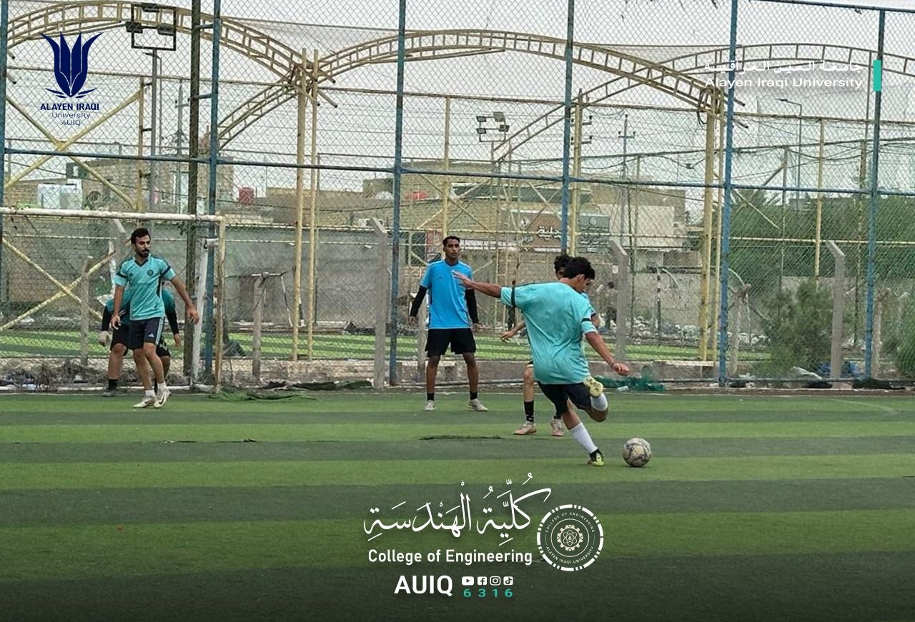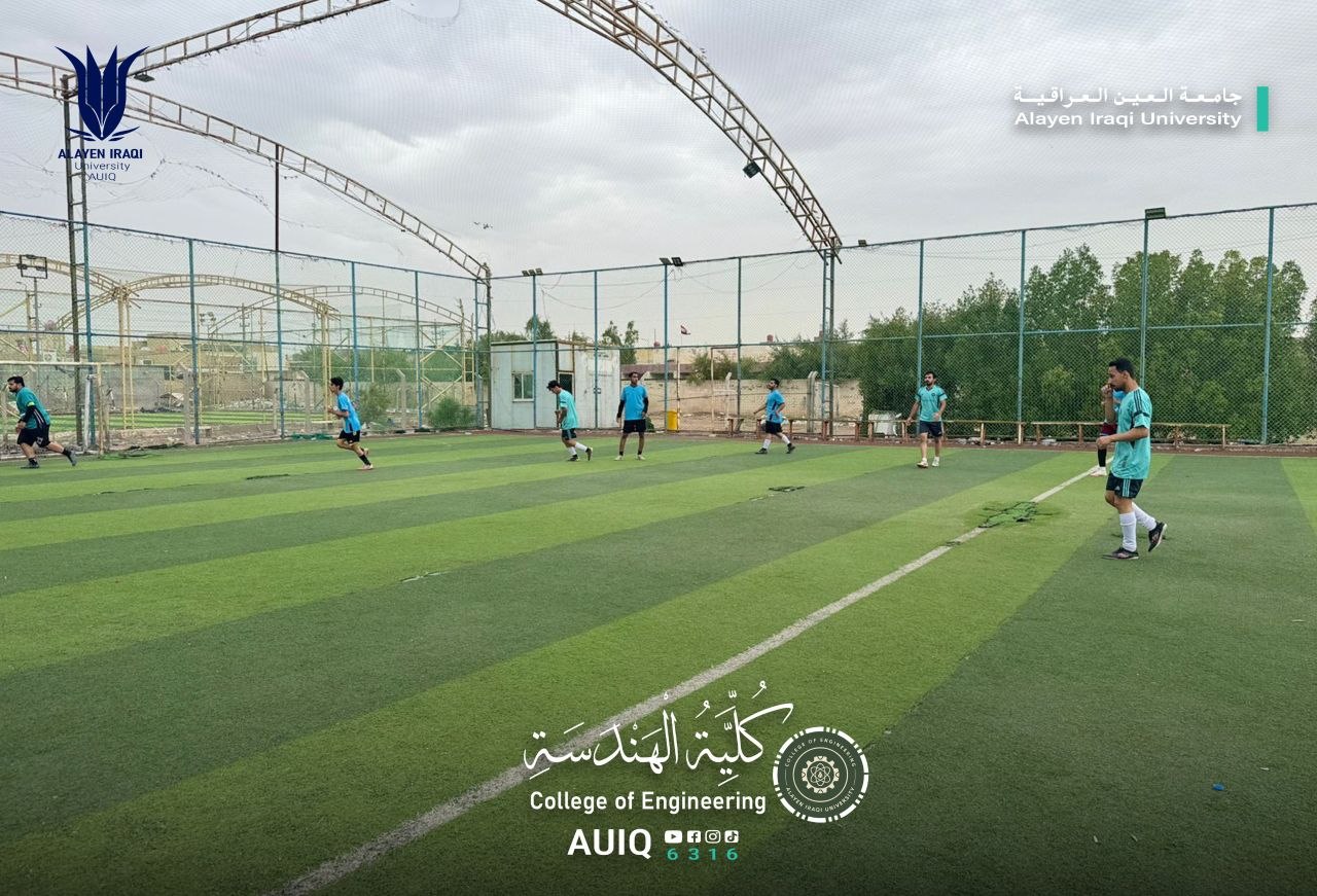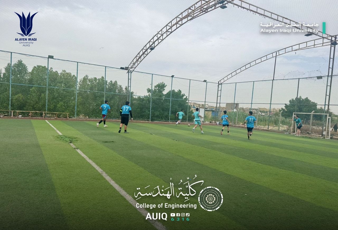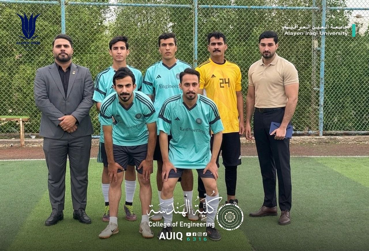 The College of Engineering team achieved a resounding victory in their opening match of the Al-Ayen Iraqi University First-Year Student Championship, defeating the College of Science team 8-0 in a highly competitive and well-organized match.