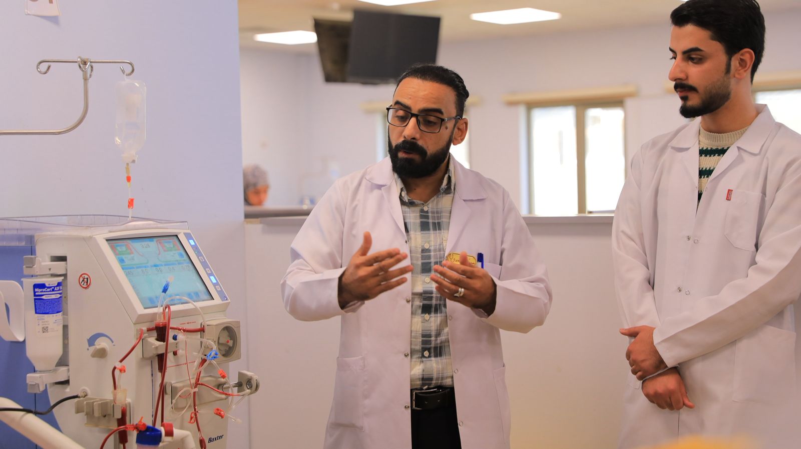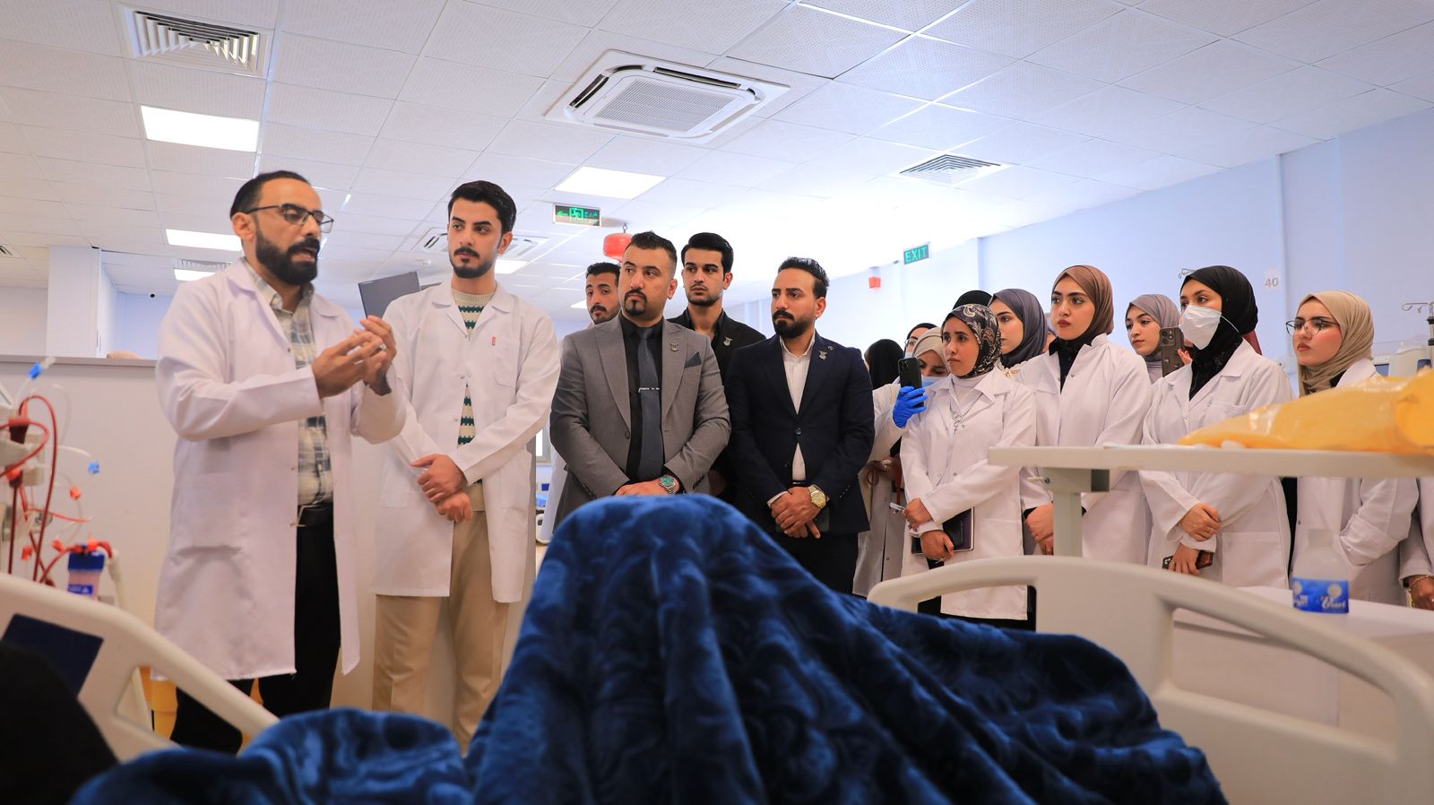 The College of Health and Medical Technologies organized a field visit for students of the Artificial Kidney Technology Department to Al-Hussein Teaching Hospital. The visit focused on the dialysis units, aiming to bridge the gap between theoretical studies and practical application, and to provide students with firsthand experience of the healthcare services offered to patients.