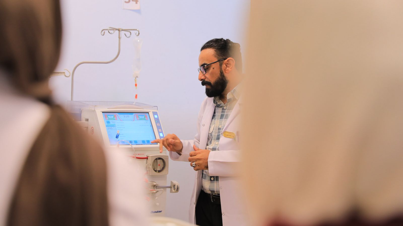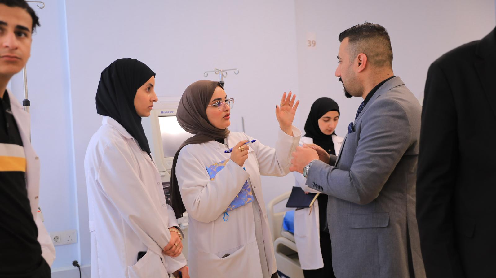 The students were accompanied by a group of specialized professors on a scientific tour that included observing modern dialysis machines, the operation of filters, and blood flow monitoring. A detailed explanation was provided on how to prepare the patient, connect the equipment, and monitor vital signs throughout the dialysis process to ensure the well-being of kidney failure patients. The students also learned about the central water treatment unit and its crucial role in ensuring the quality of the dialysis fluids used in the purification process.