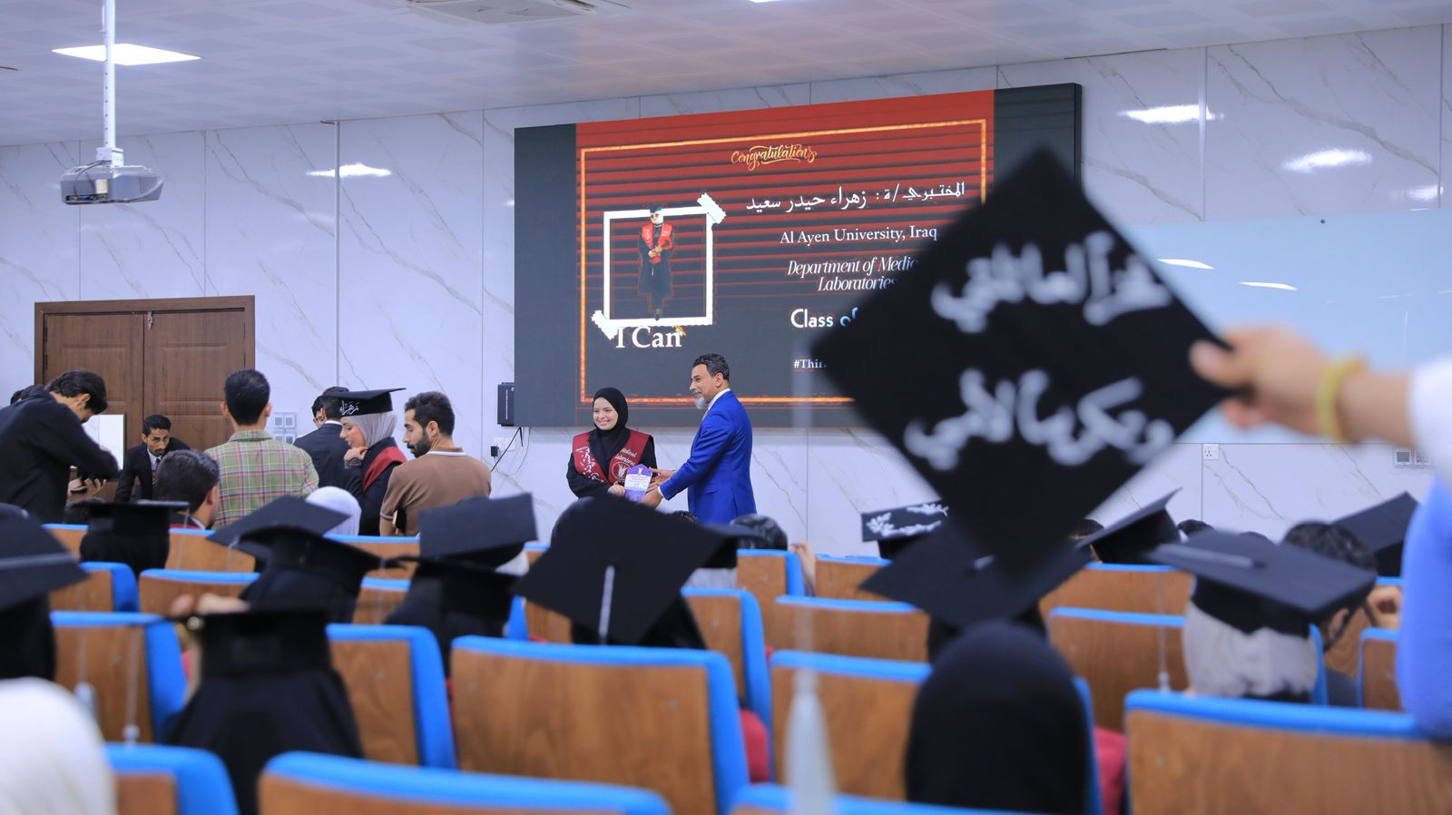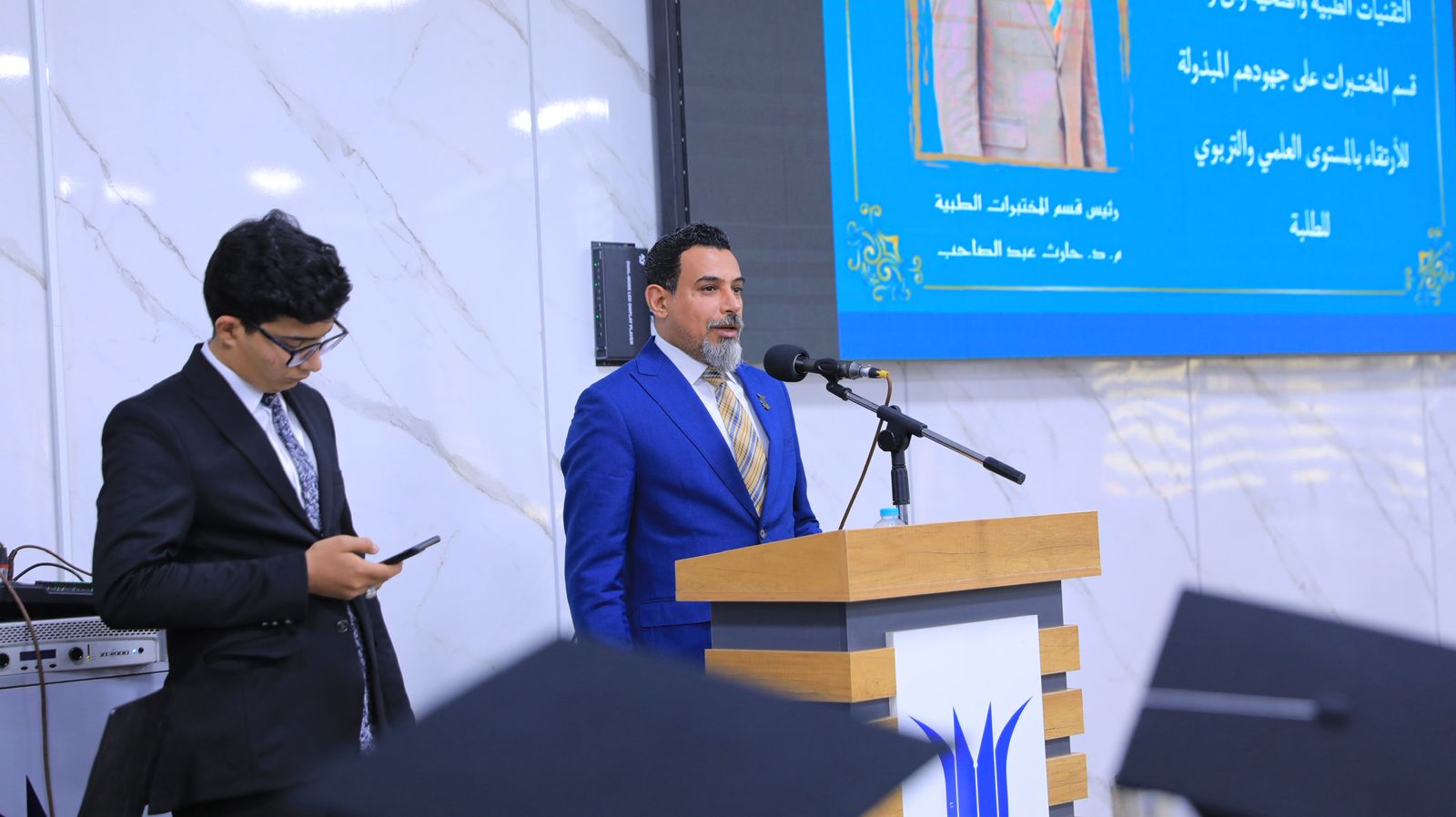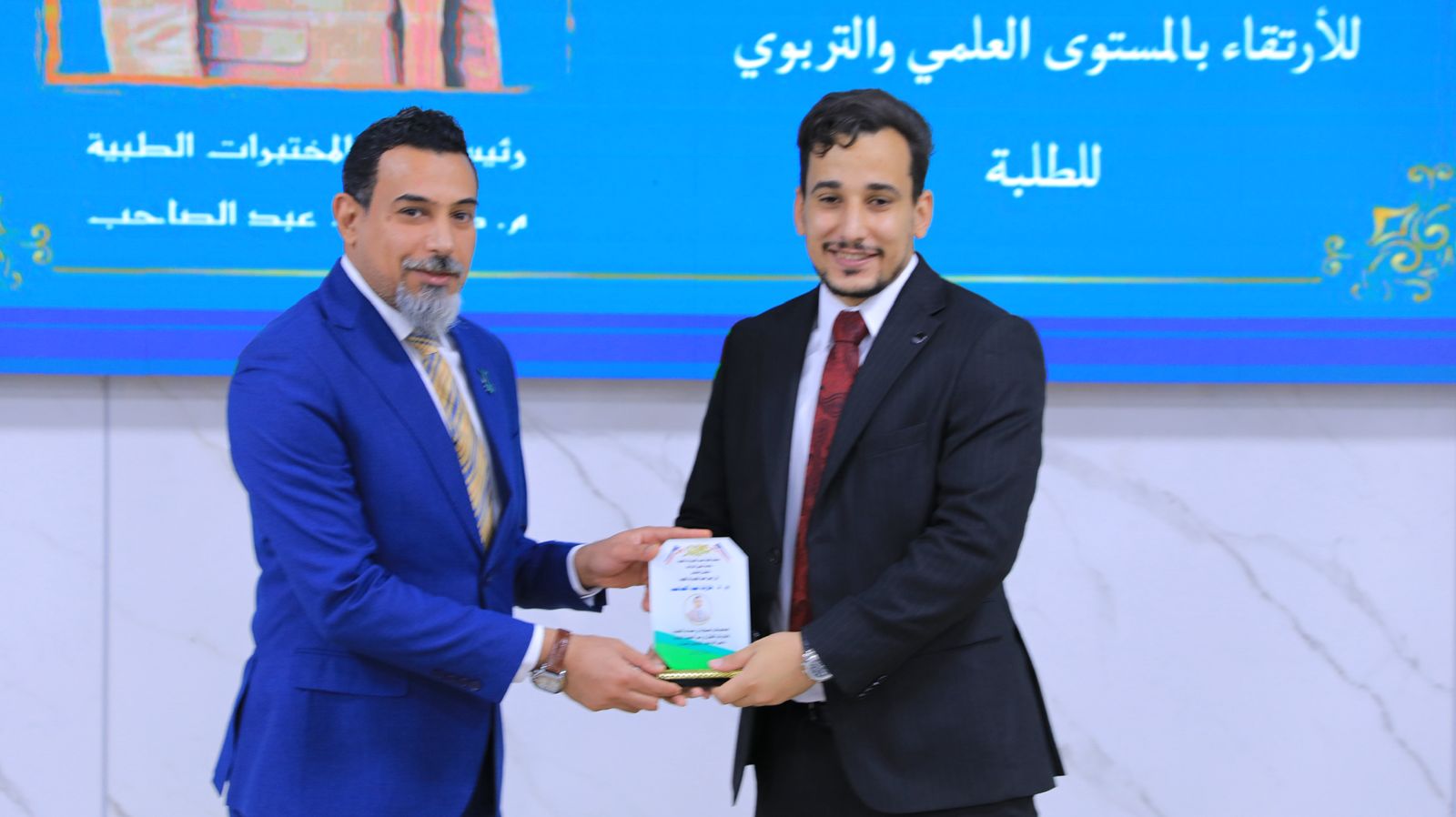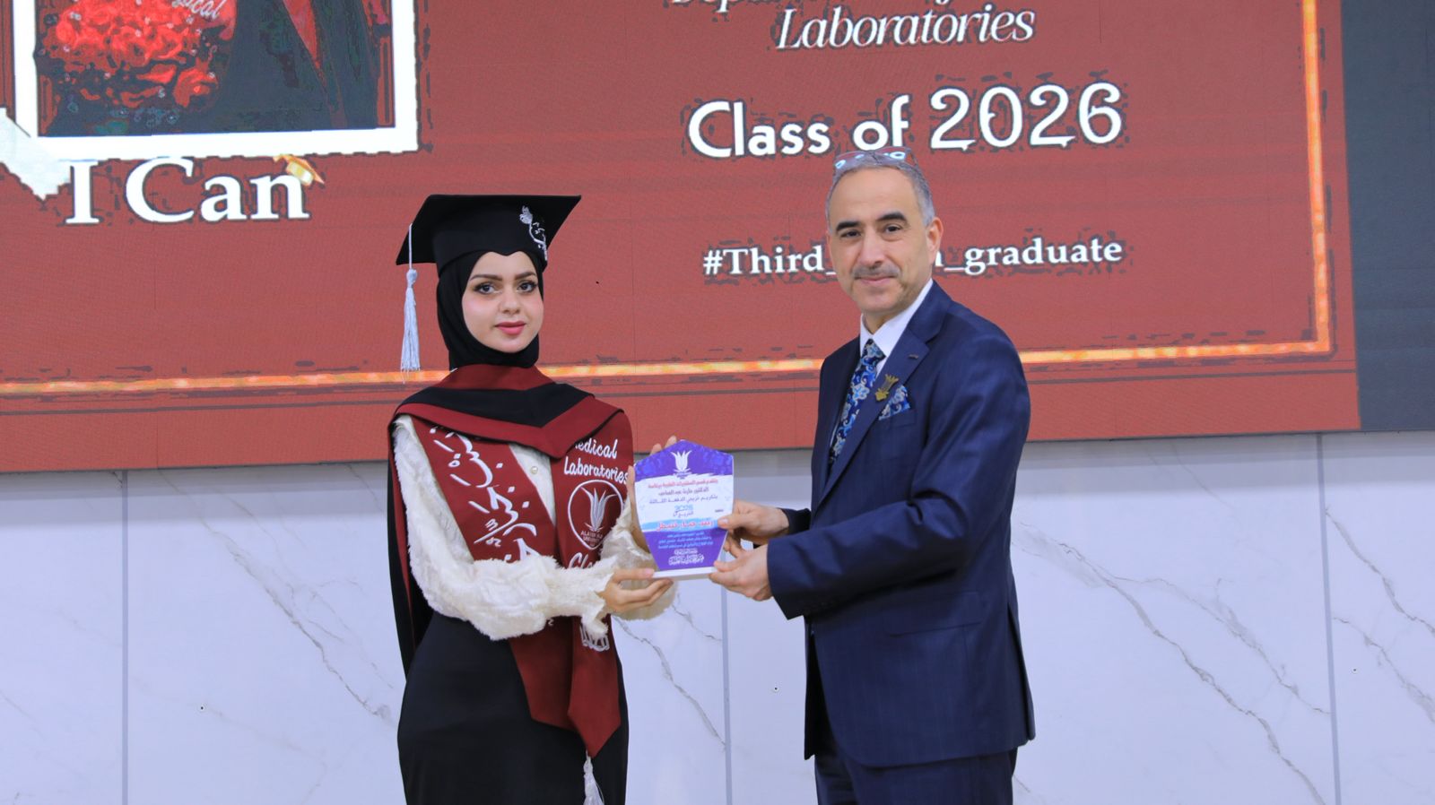 The ceremony was attended by the Dean of the College, Prof. Dr. Mohammed Abdul-Redha Atouf, along with the Deputy Deans and Department Heads. Certificates of appreciation and awards were distributed to the distinguished students amidst an atmosphere of pride and admiration for their academic and research achievements, which qualify them to be highly competent laboratory professionals capable of providing hospitals and specialized centers with the highest levels of accuracy and professionalism.
