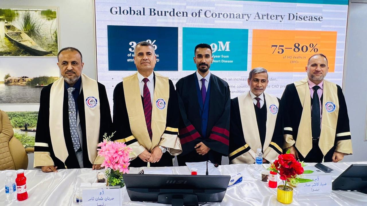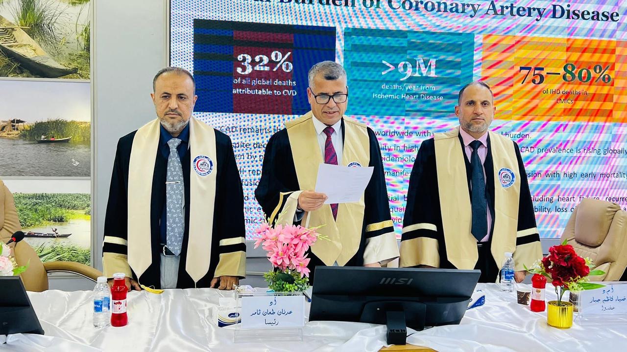 The discussion session was held in the conference hall at the College of Medicine, University of Dhi Qar, with the participation of committee members, including professors and consultants, as well as a number of specialists. This session was part of a scientific program aimed at promoting rigorous research and raising the professional standards of physicians.