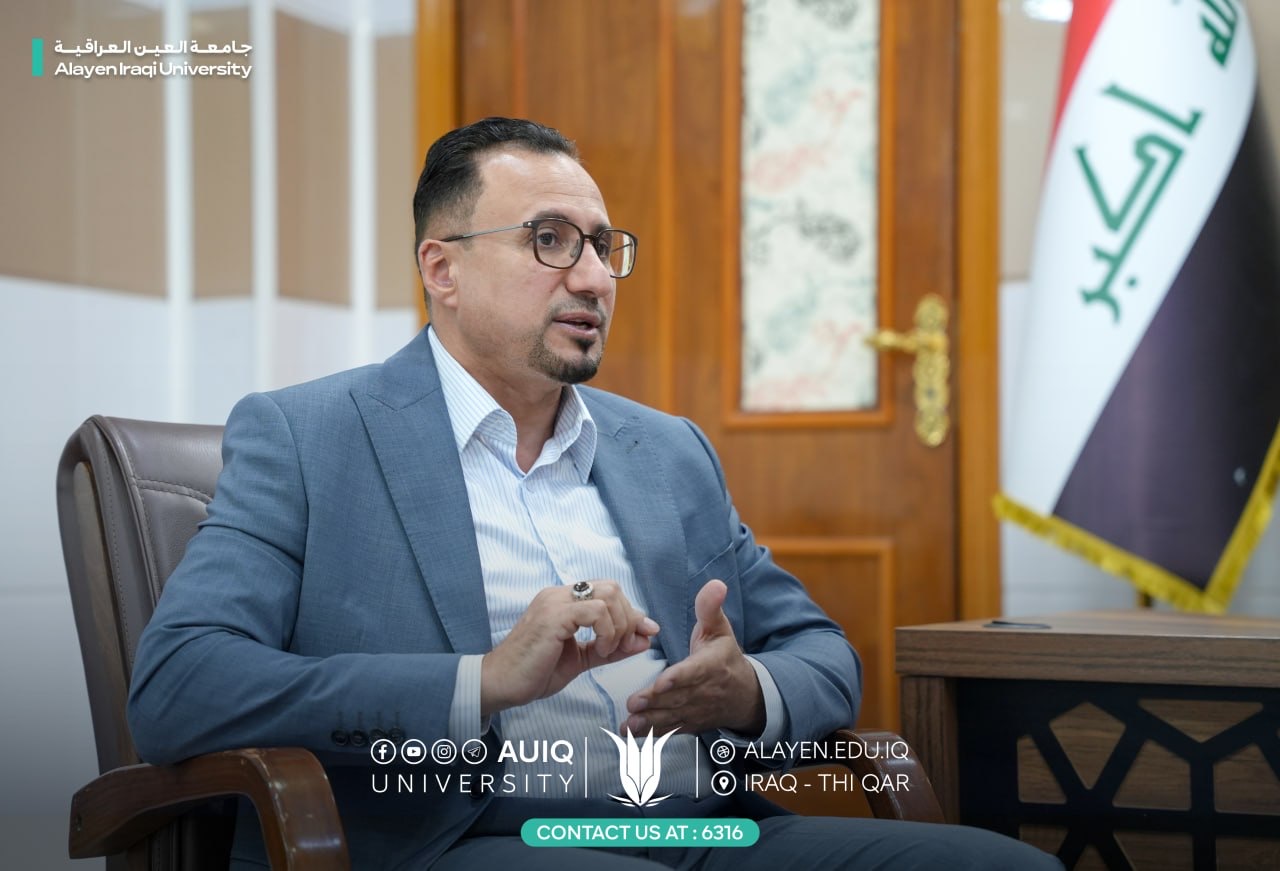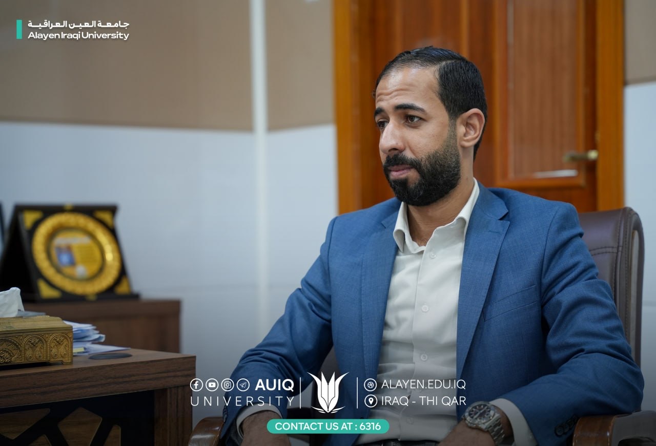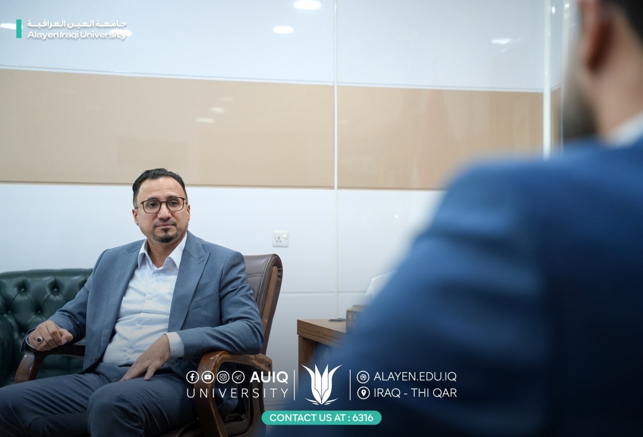 On Sunday, April 26, 2026, Asst. Prof. Dr. Atheer Y. Awda, Deputy Chancellor of Al-Ayen University for Administrative Affairs, received Member of Parliament Qastal Al-Ajil Al-Hajami to discuss the current state of the educational institution and its role in serving the people of Dhi Qar Province.
