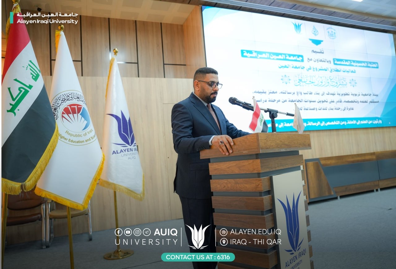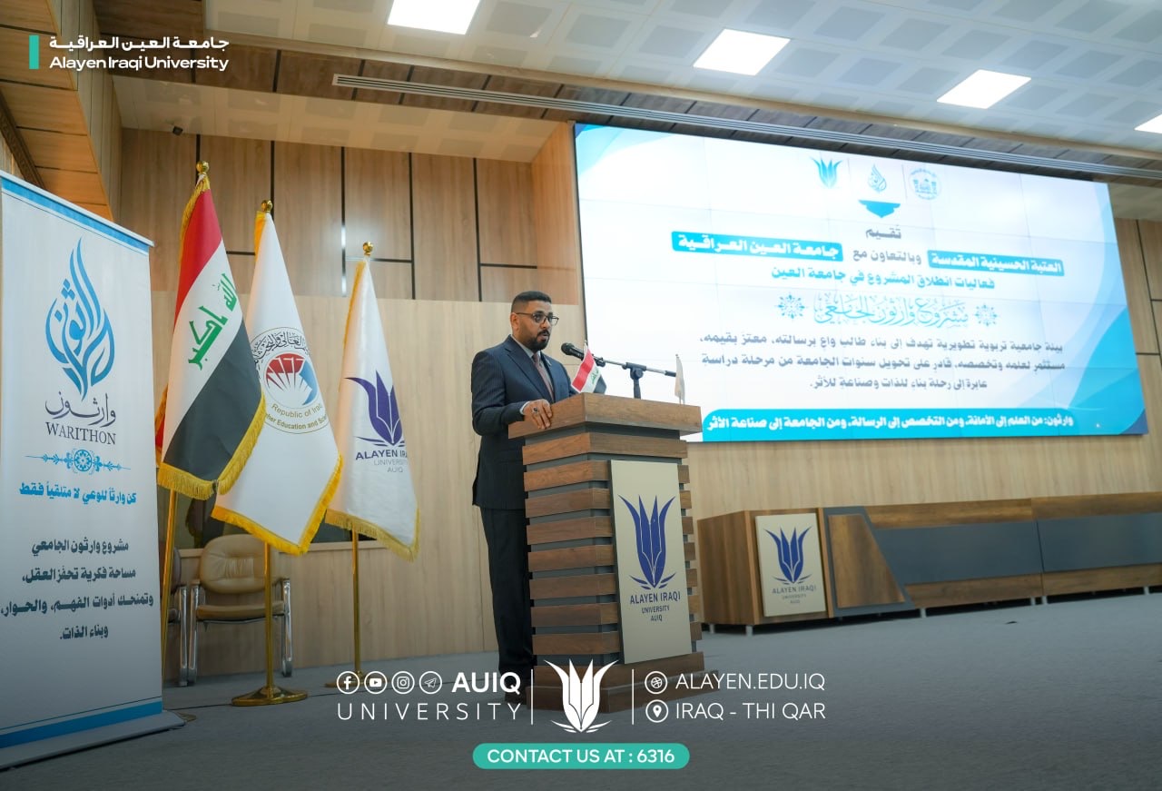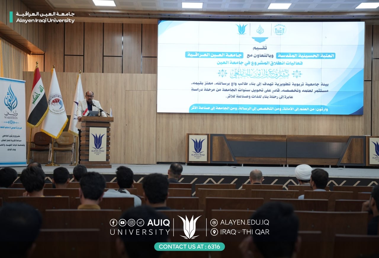On Sunday, April 26, 2026, Al-Ayen Iraqi University, in cooperation with Imam Hussein Holy Shrine, launched the “University Heirs” project. The launch was attended by the University Chancellor Prof. Dr. Haider A. Marhoon, project officials, several deans, faculty members, and students.