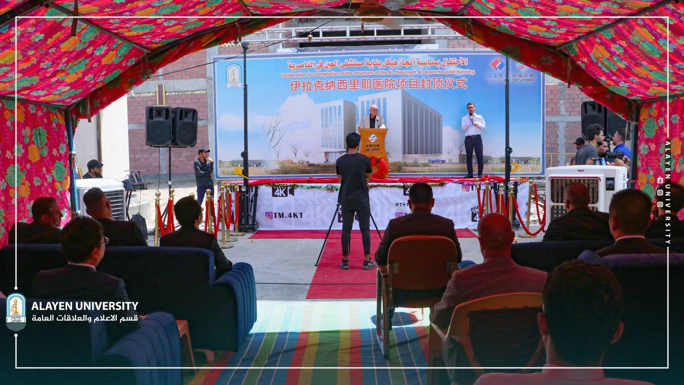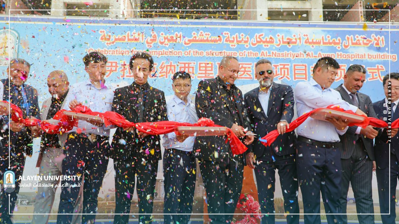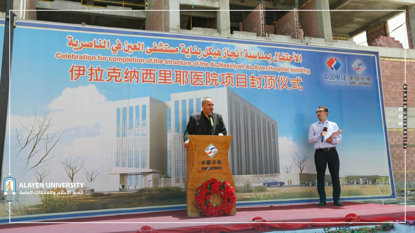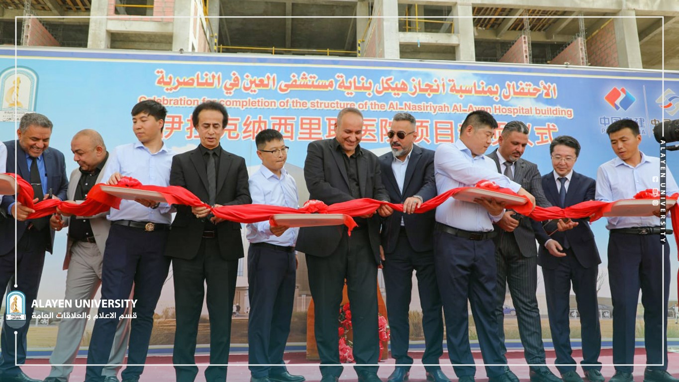On Sunday, July 31,2022m, Al-Ayen University inaugurated the structure of the teaching hospital for the Medicine College in presence of the Deputy Director of Chines Co. Power China Mr. Joe, Director General of Dhi-Qar Health Directorate Dr. Jafer N. Hussein, Director General of Dhi-Qar Investment Commission Mr. Abdulhameed Al-Hassona, Member of the Commission Ali Al-Dujaily, Director of Heart Center in Nasyria Dr. Aqeel S. A-Khafagi